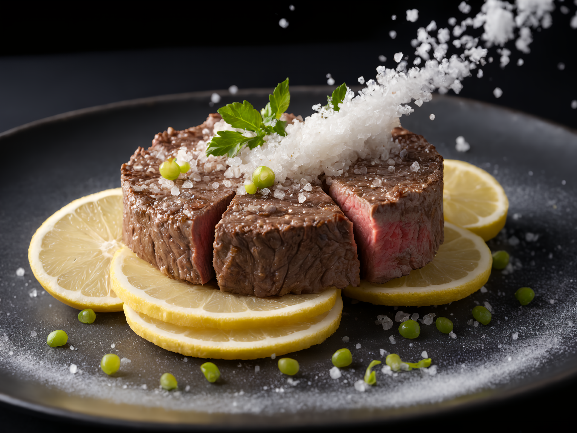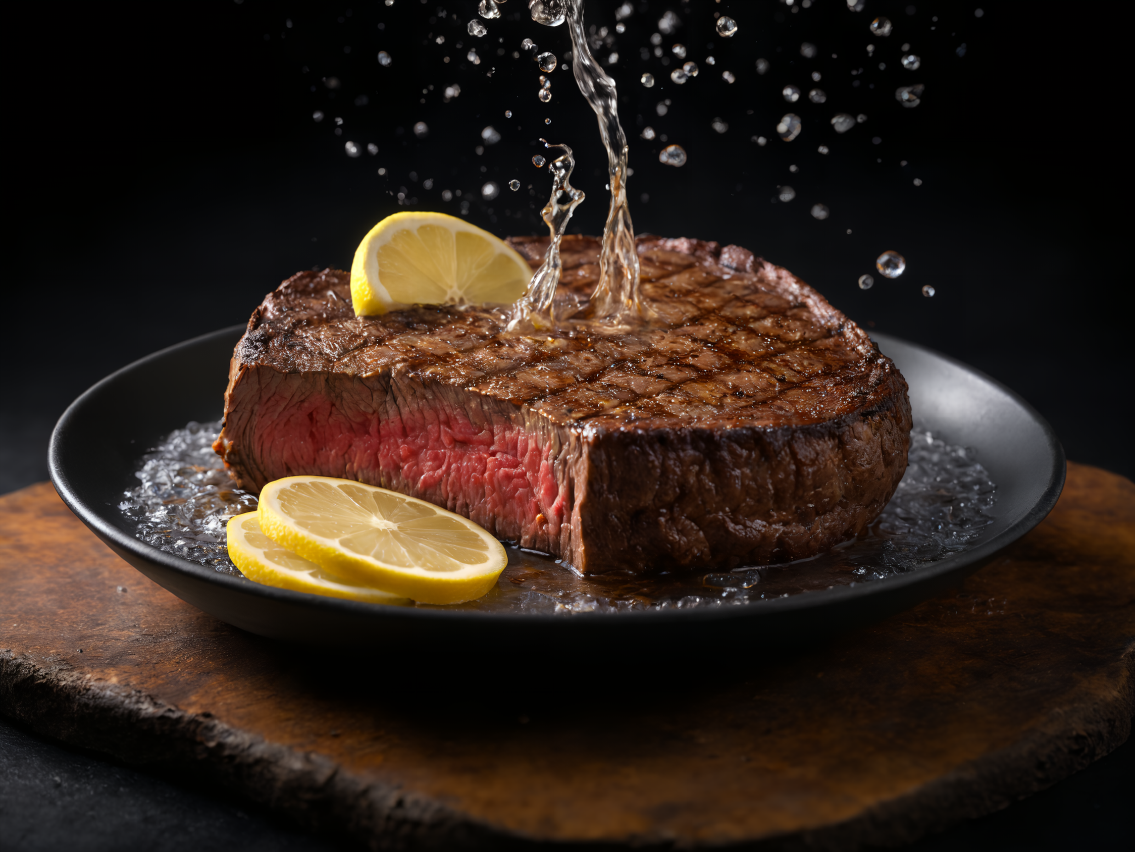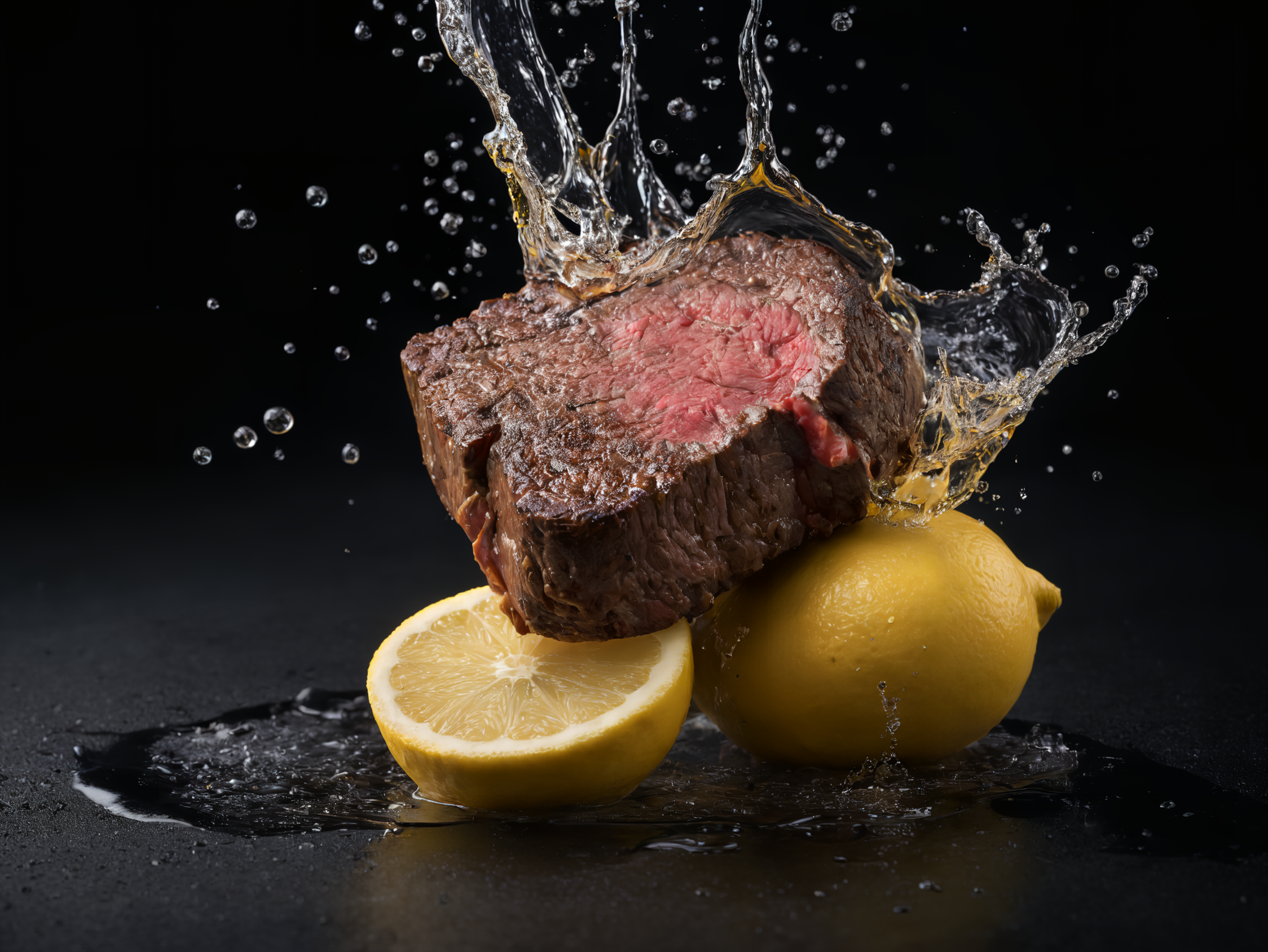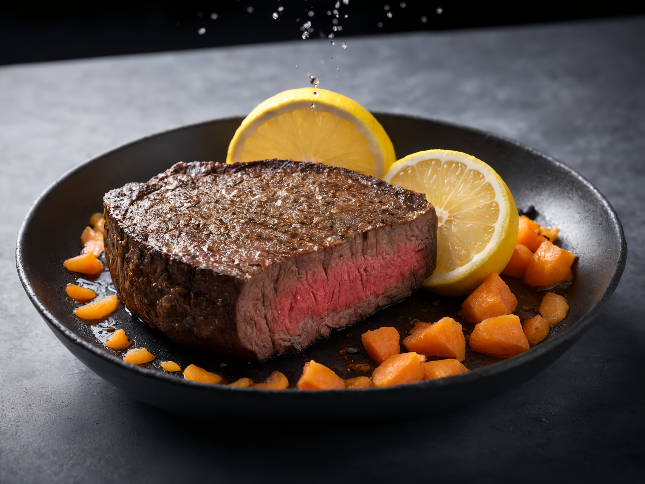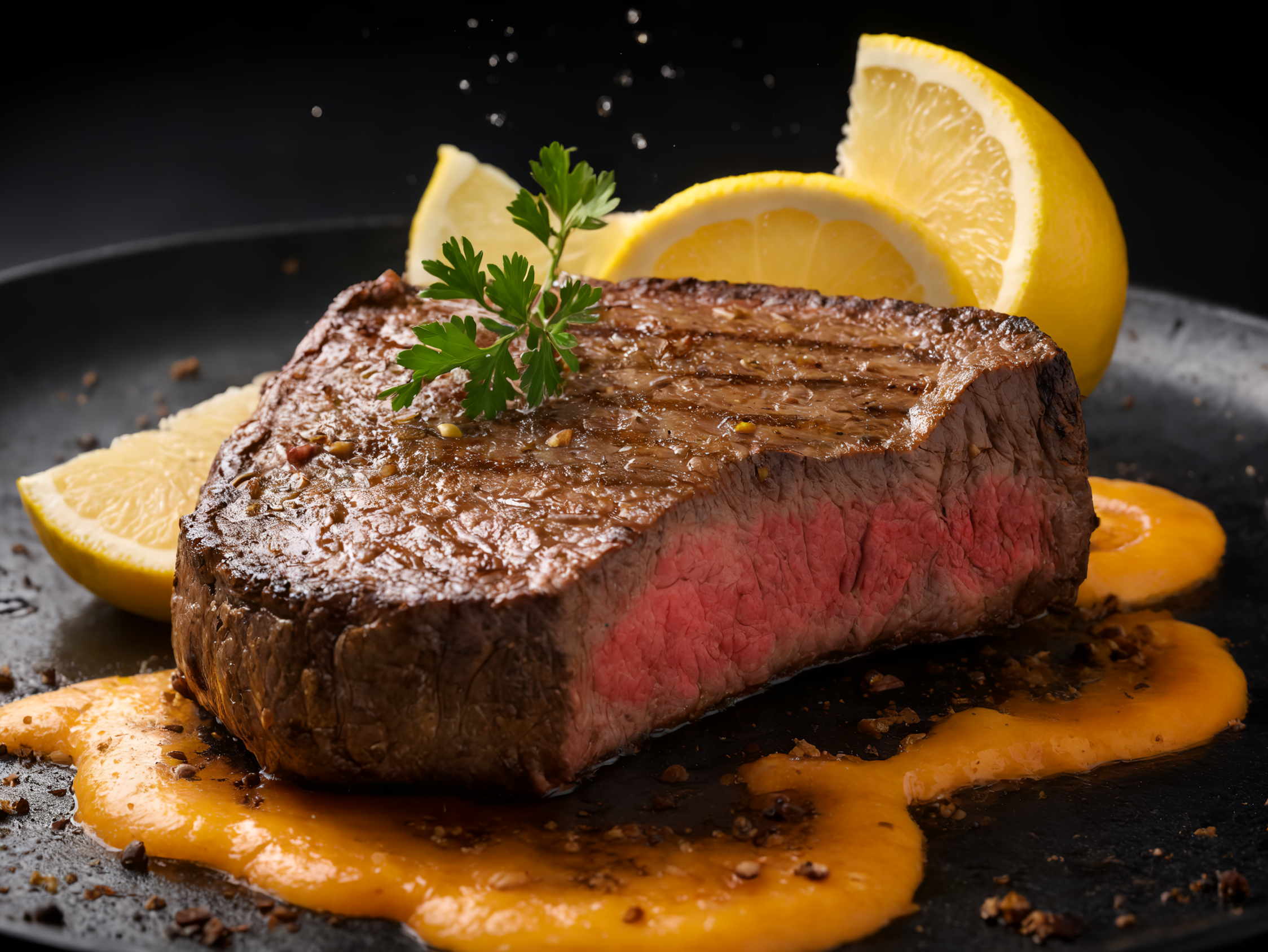 ステーキにレモンかけちゃいますねー!