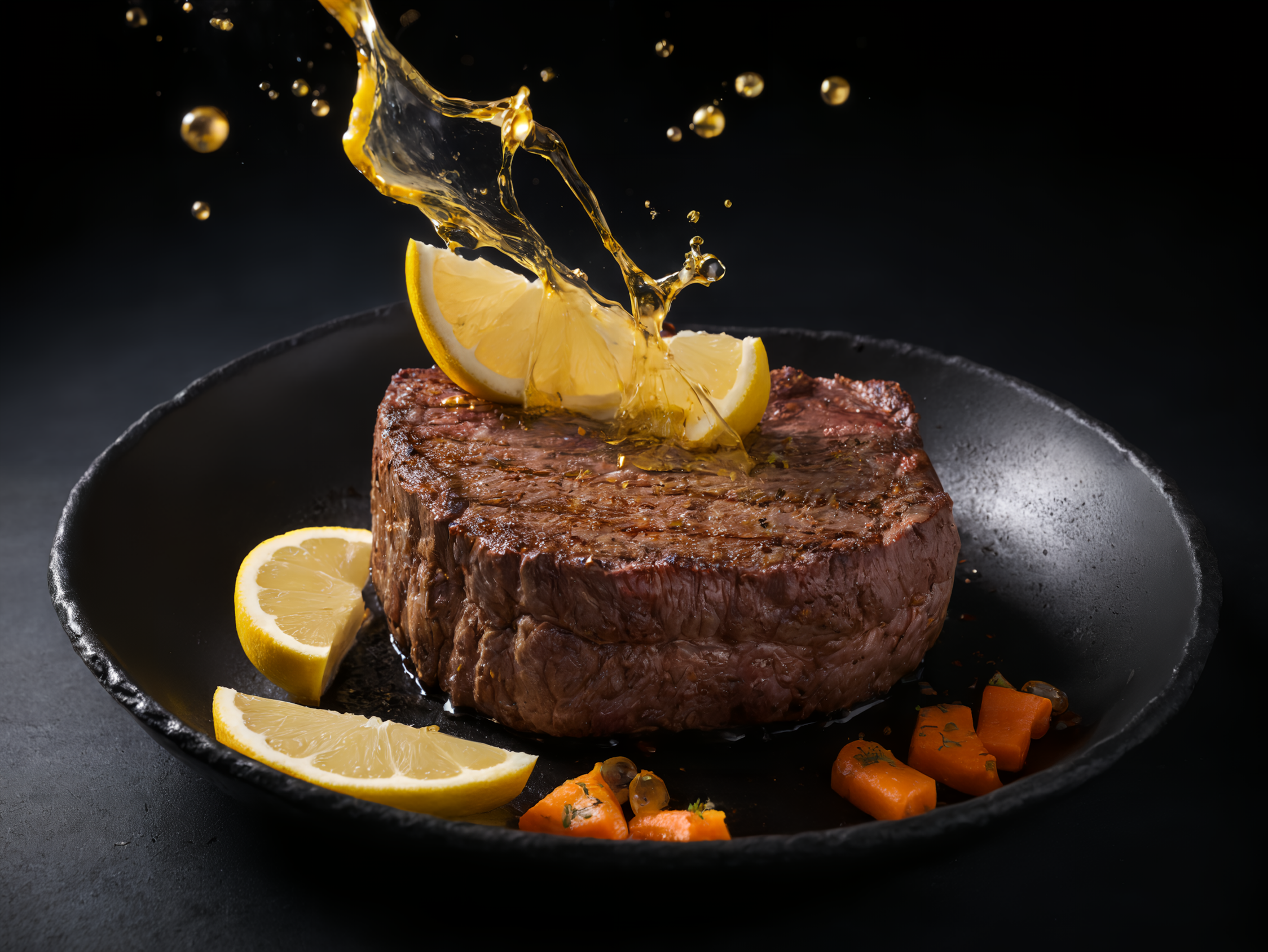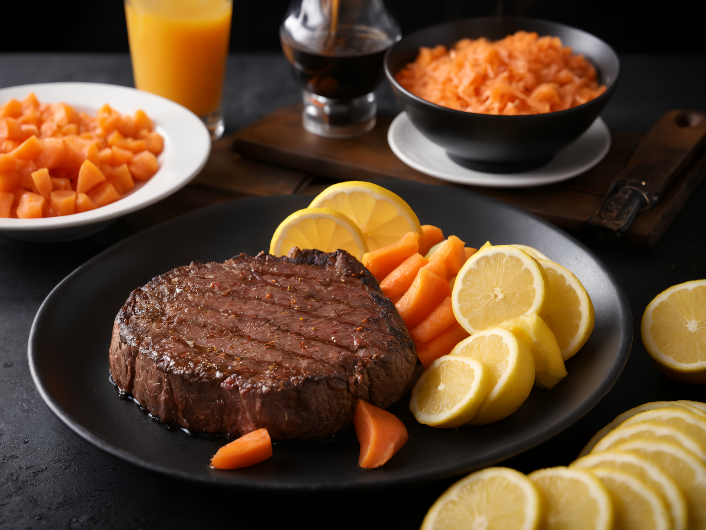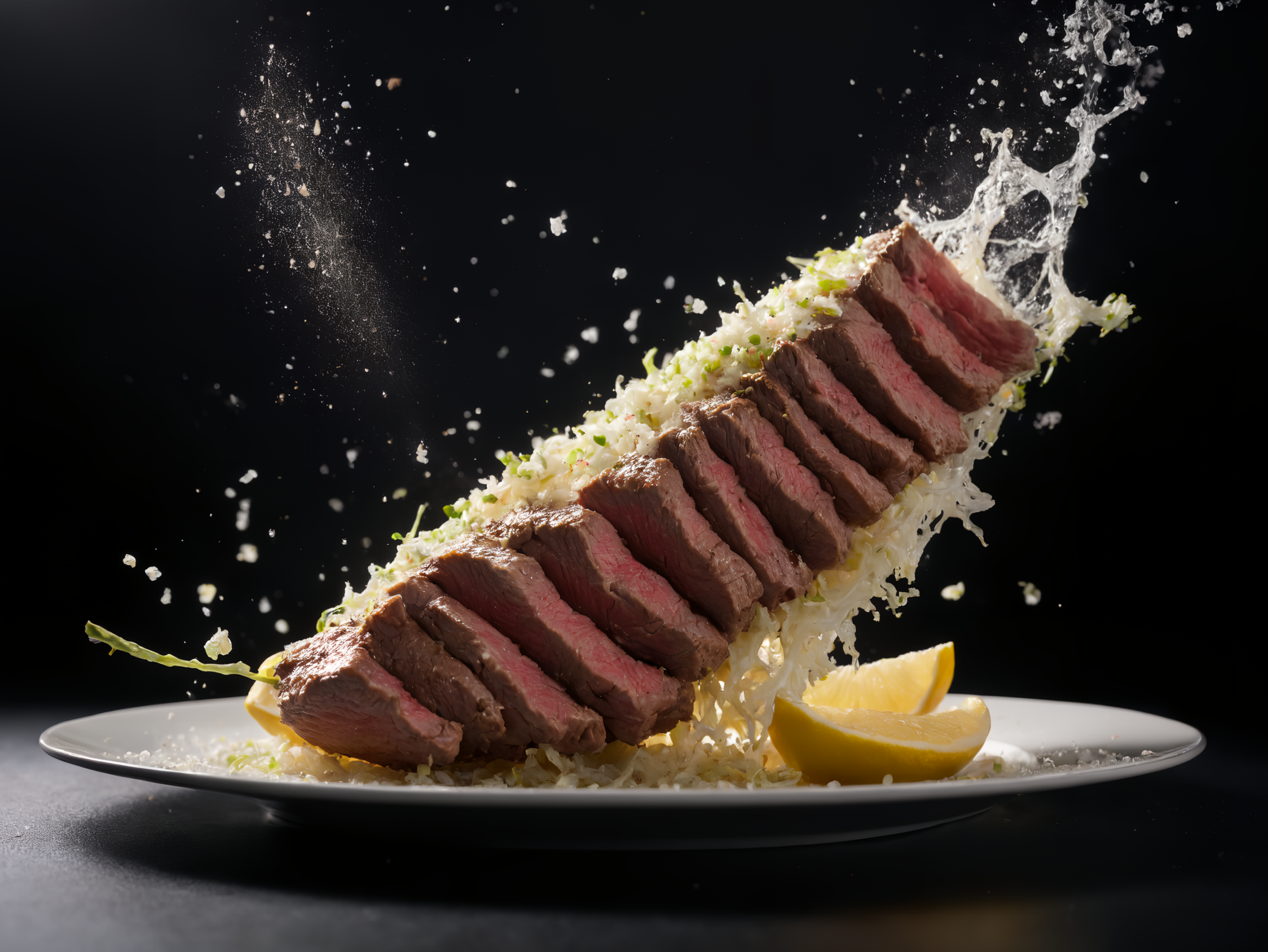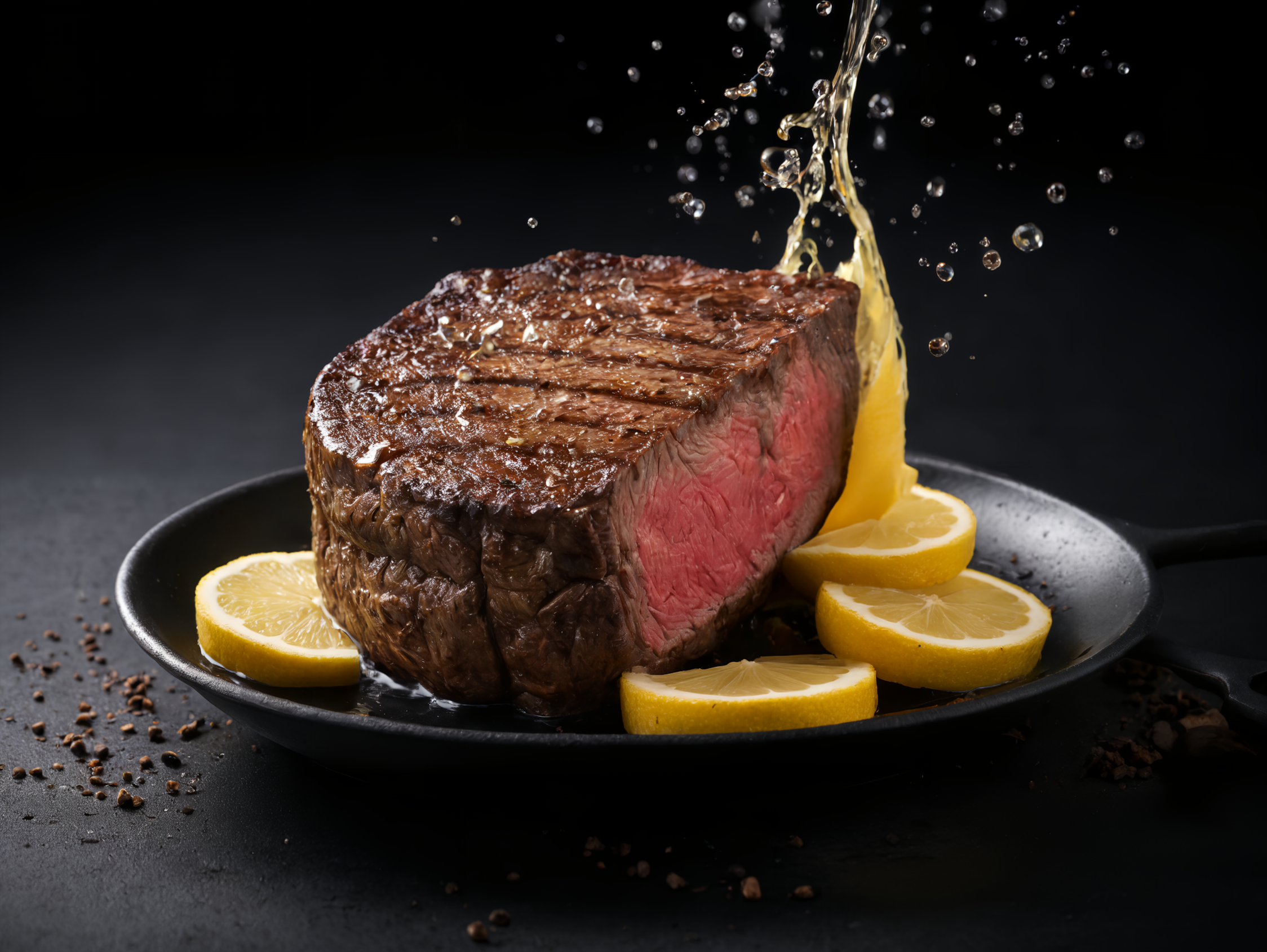 ステーキにレモンかけちゃいますねー!