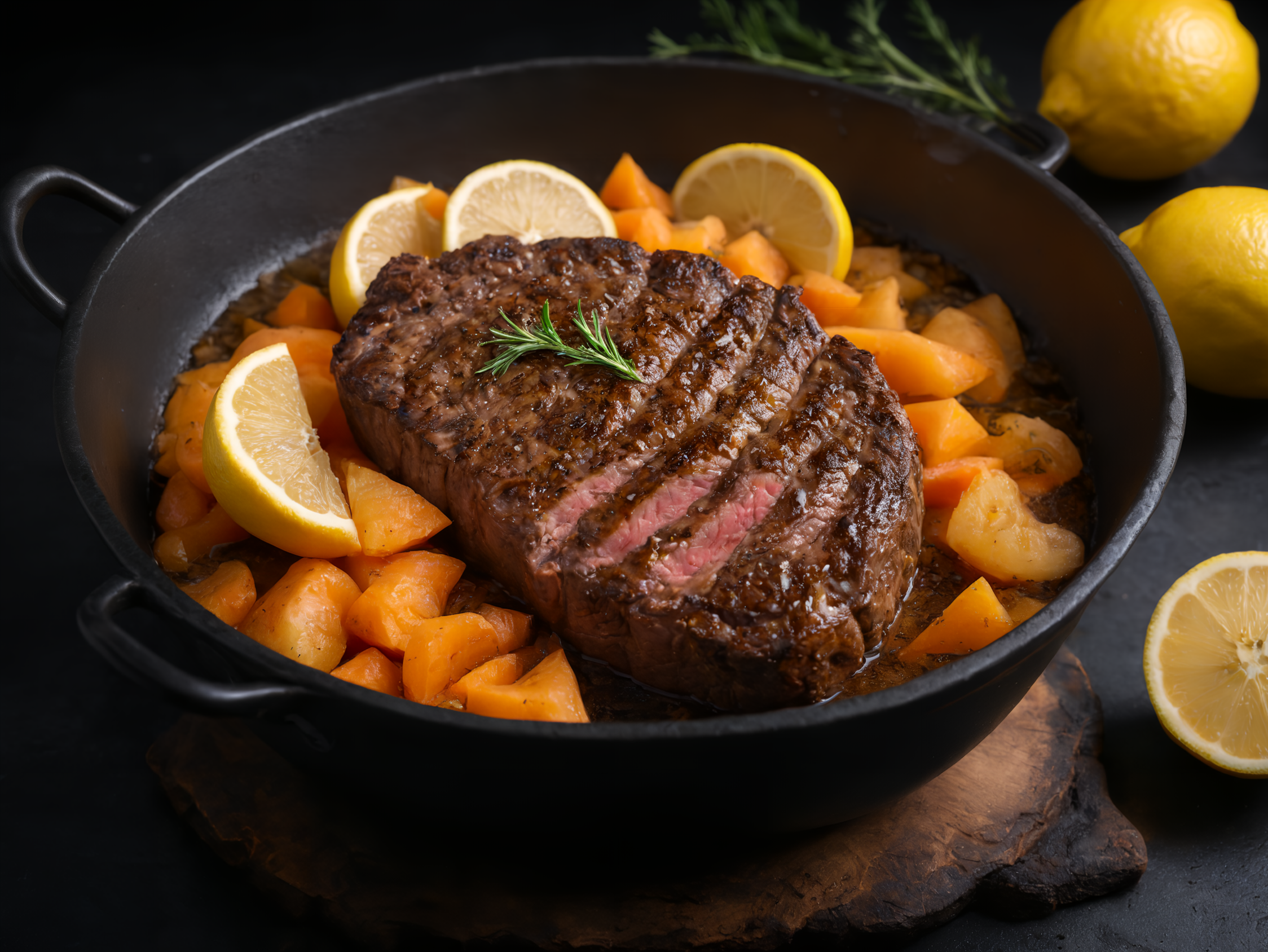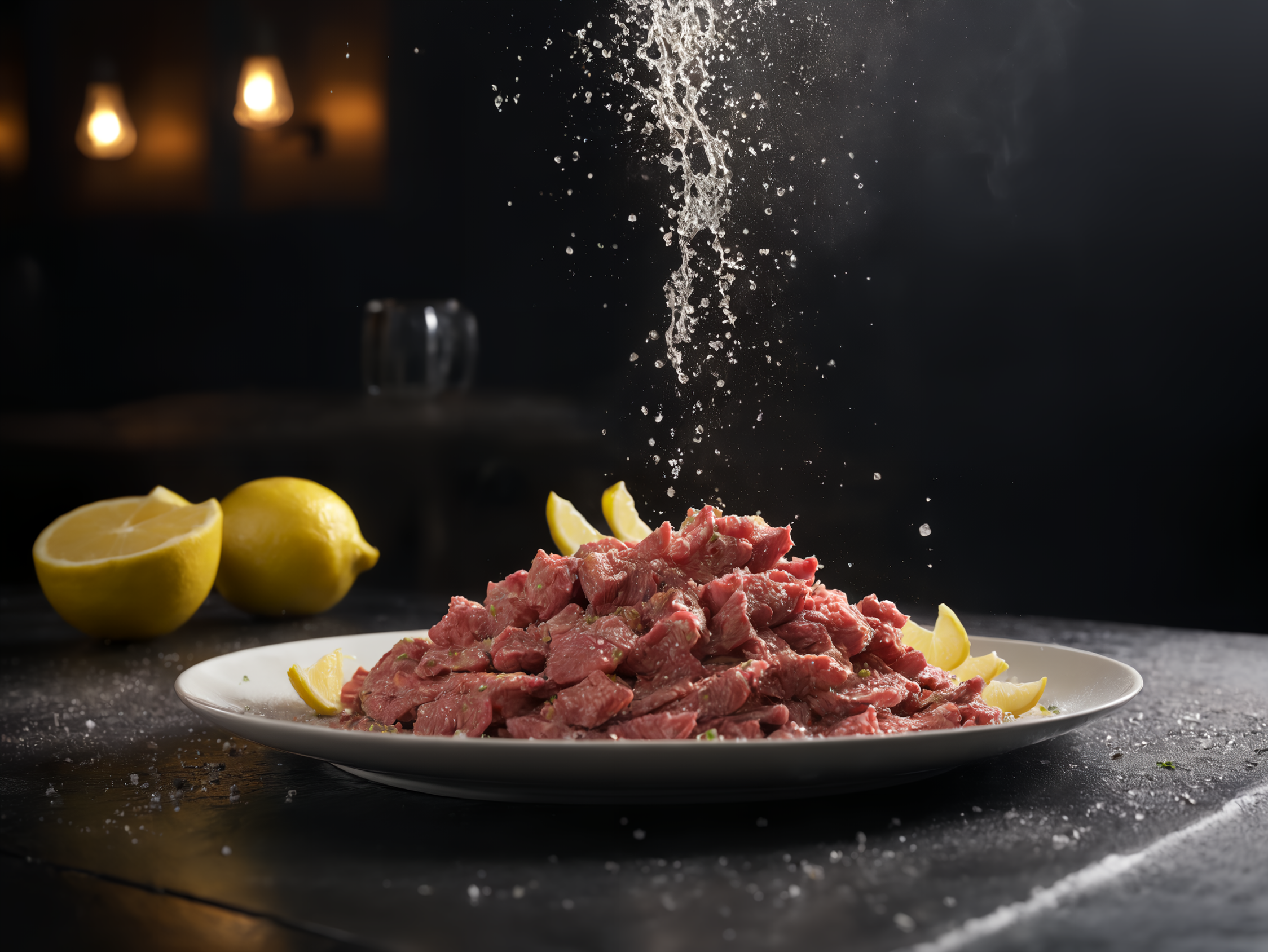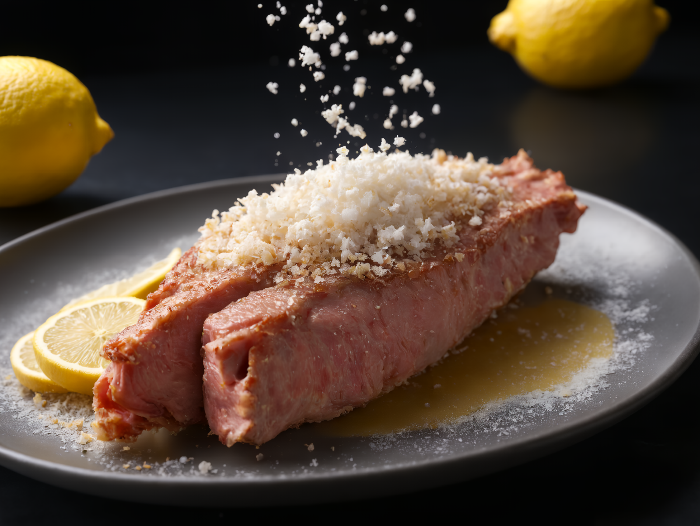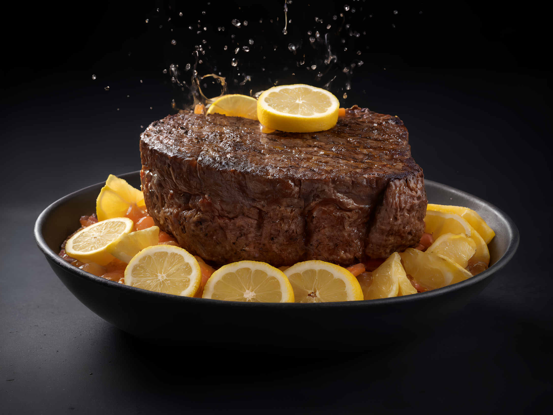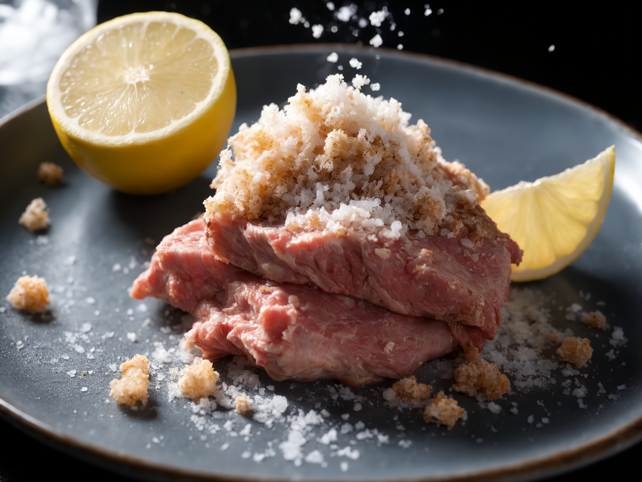 ステーキにレモンかけちゃいますねー!