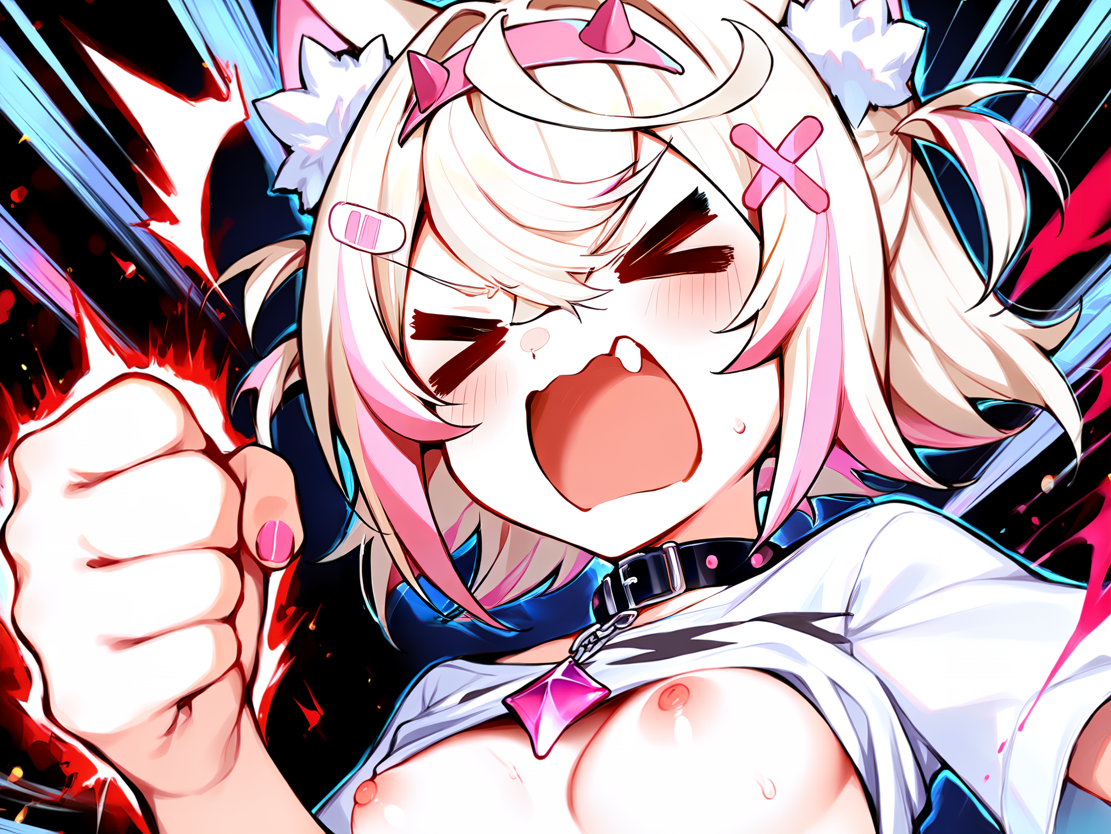 Breasts, nipples, staring eyes