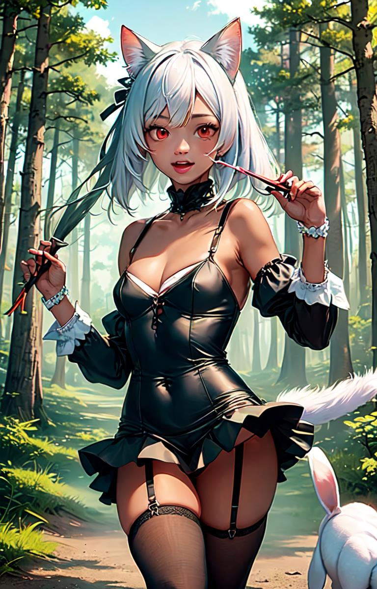 ウサギっぽい何かと褐色猫娘