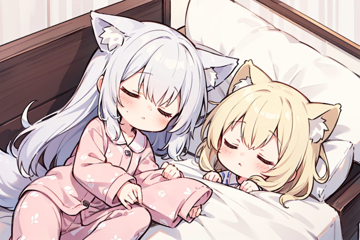 きつね娘たちの寝相は悪いですね