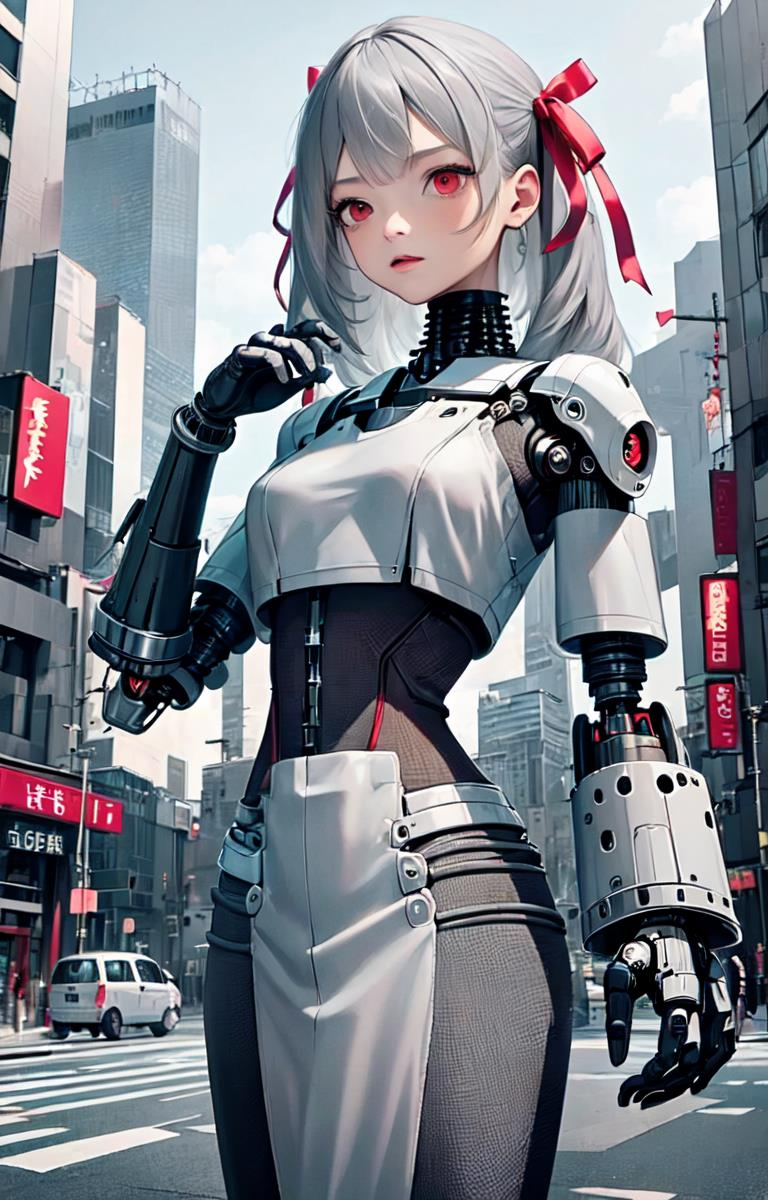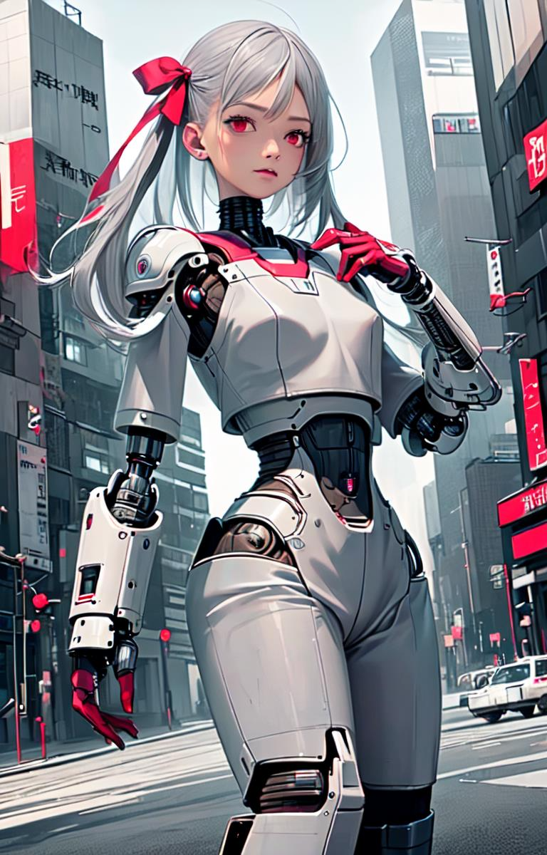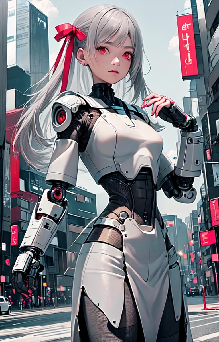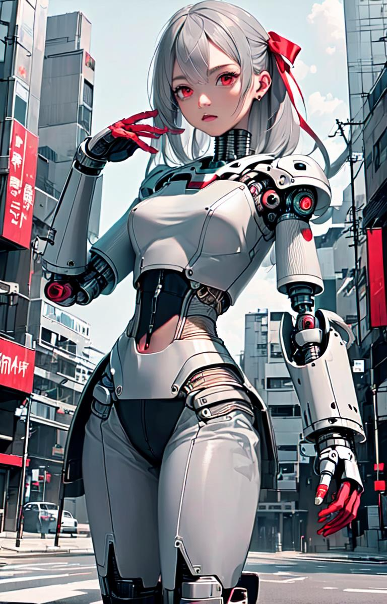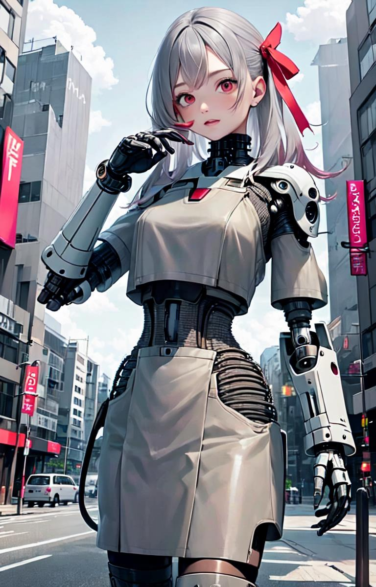 赤リボンをつけたメカ娘