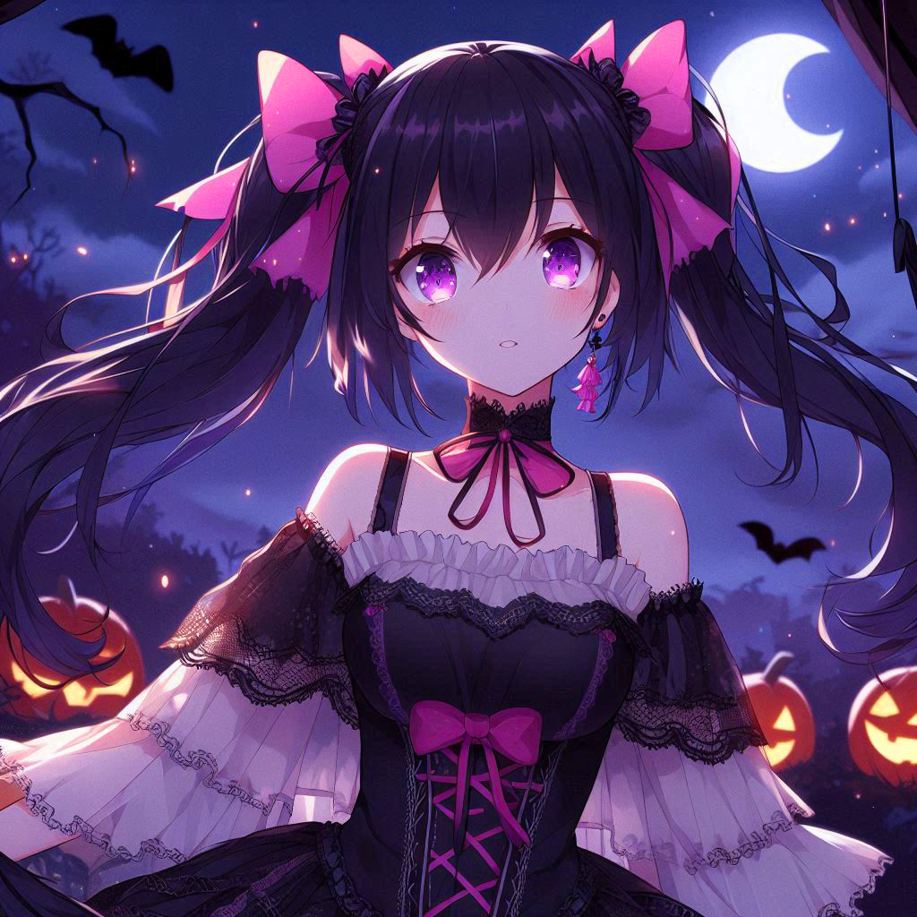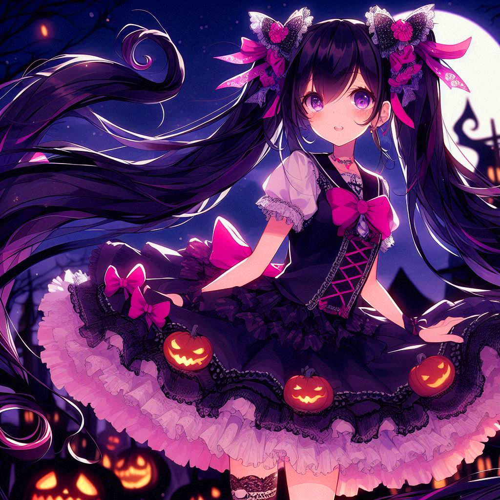 リボンな、ハロウィンの黒髪ツインテール少女*(11枚)
