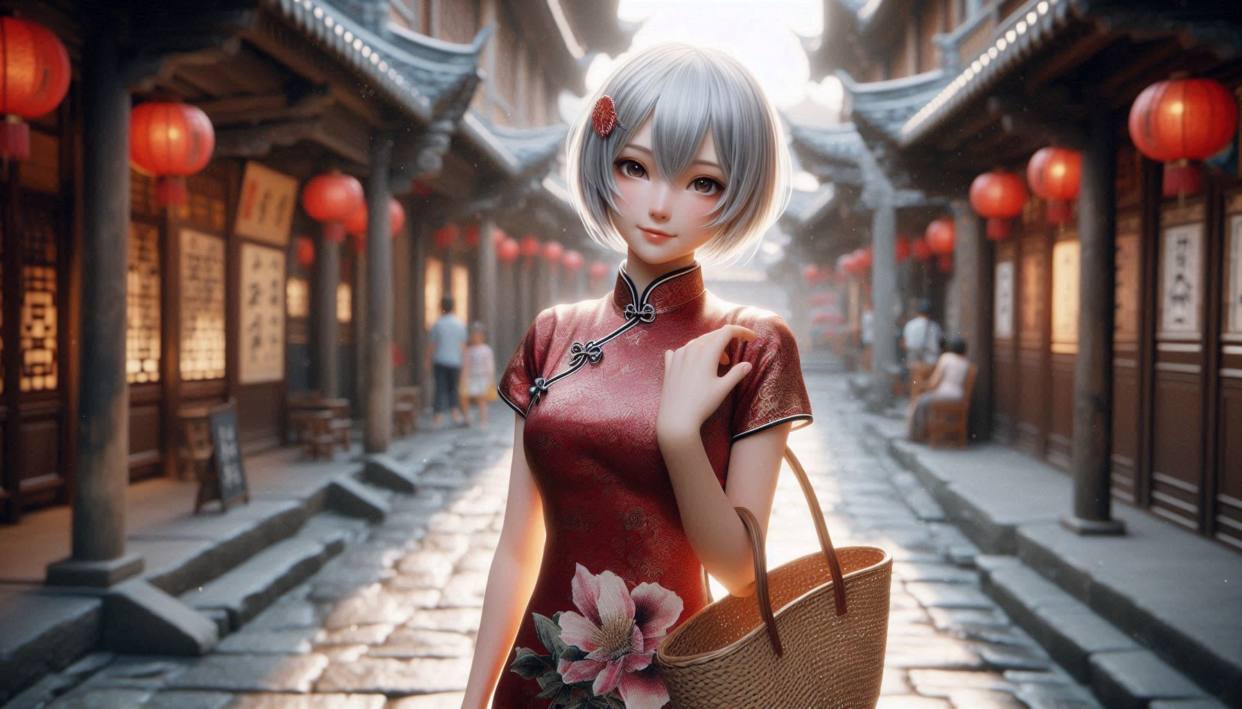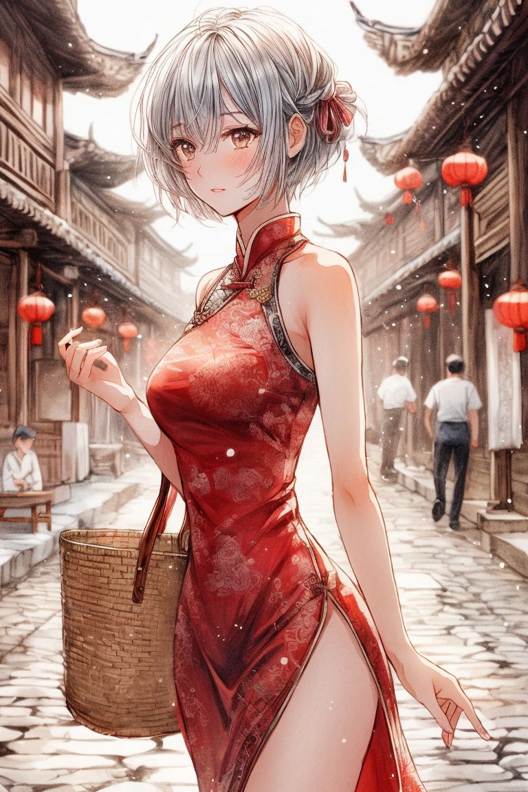 街の人がチャイナドレスを着て買い物するとは思えないw