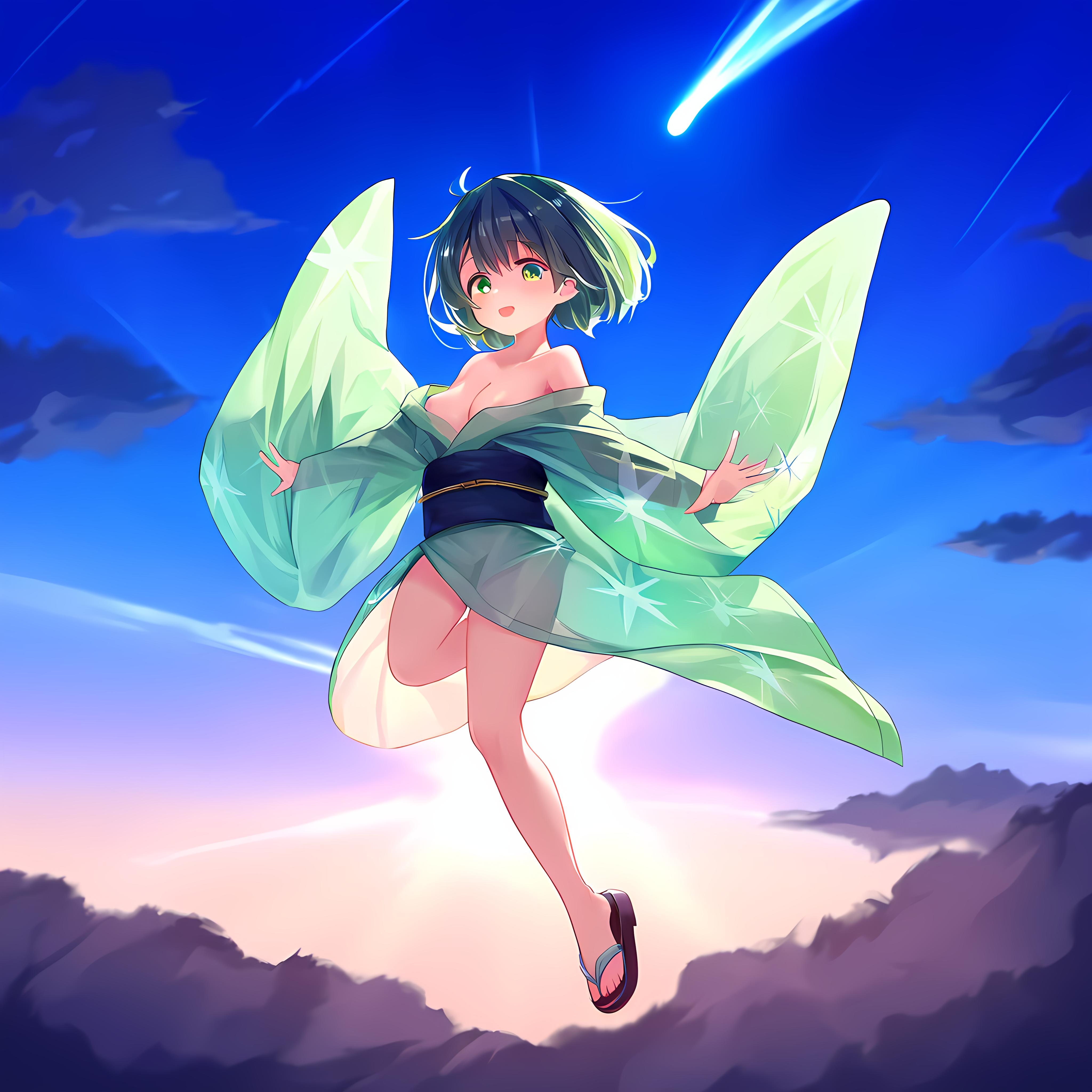 (masterpiece, best quality:1.3), illustration, (extream detailed), one girl, angel Descending