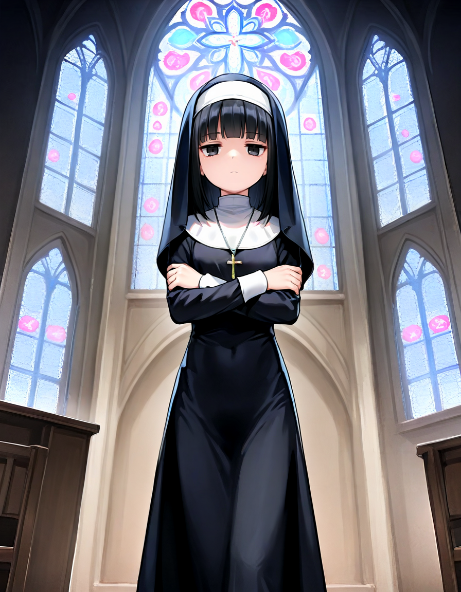 見下ろしジト目シスターさん