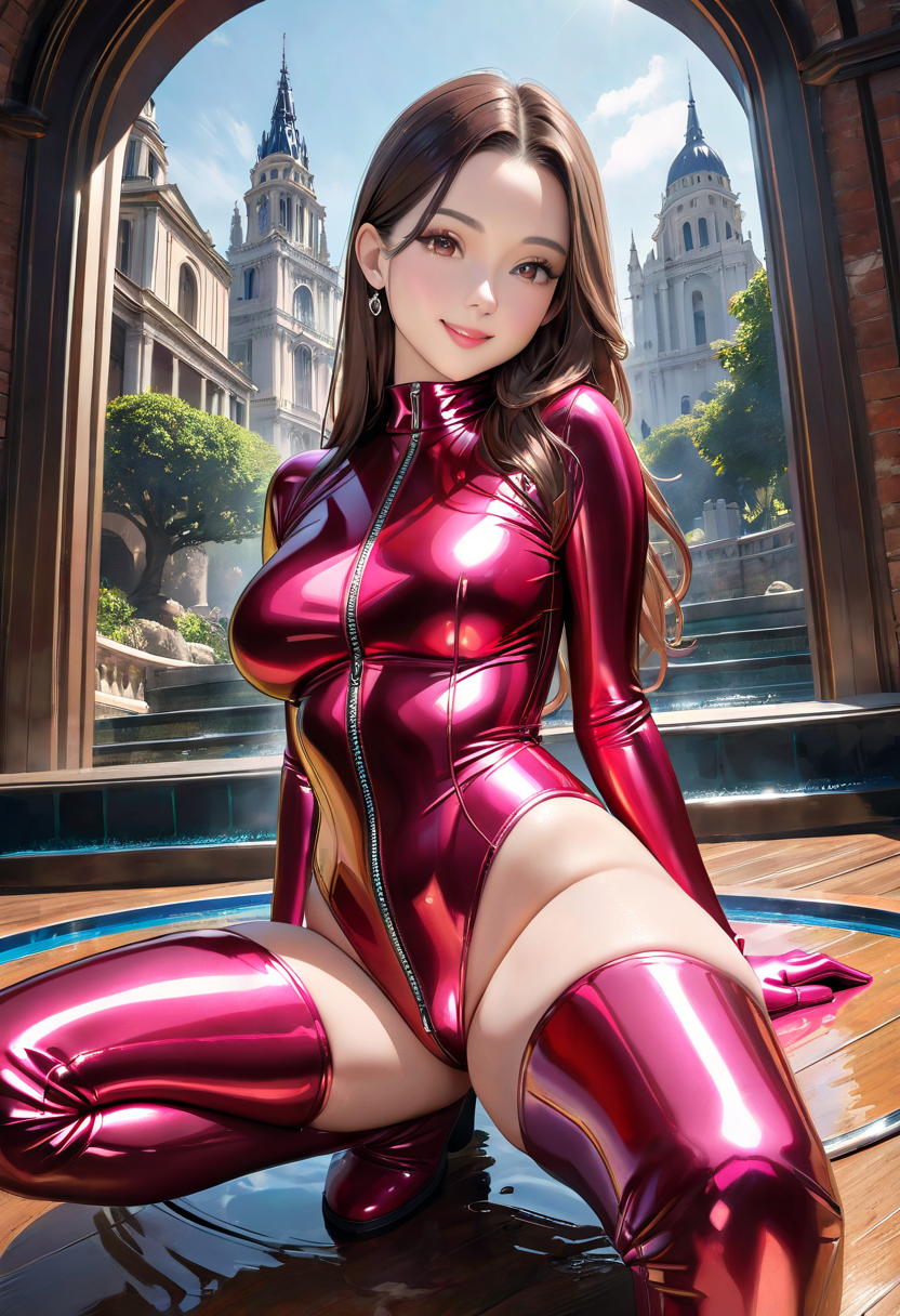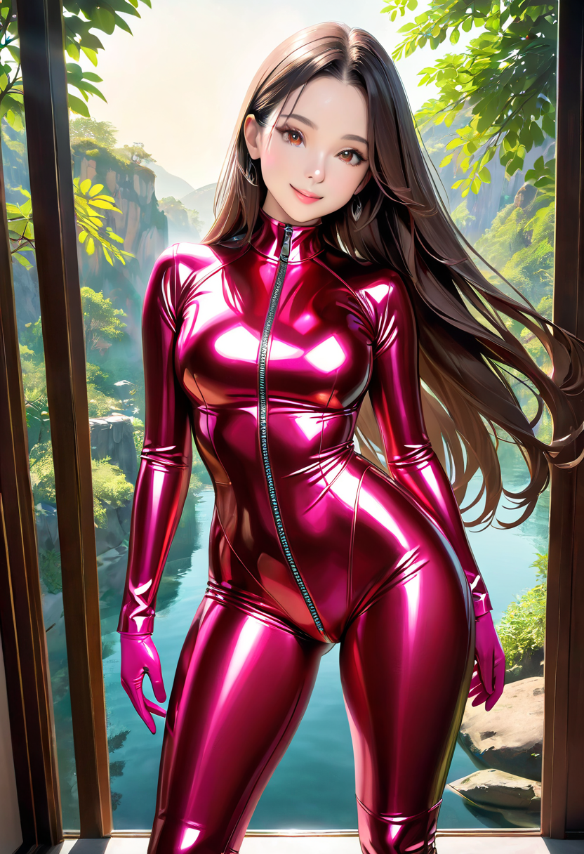 メタリックピンクのラバースーツ