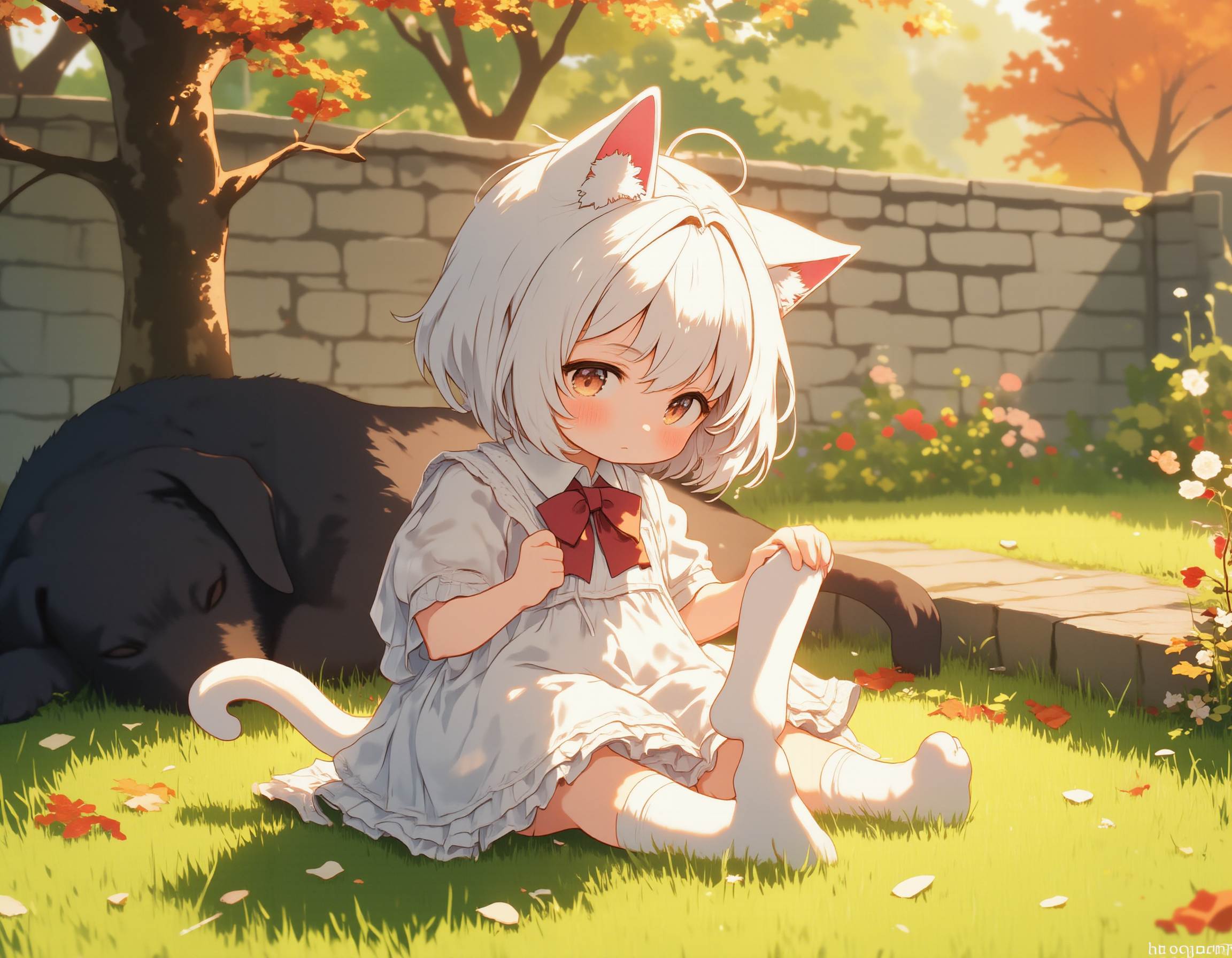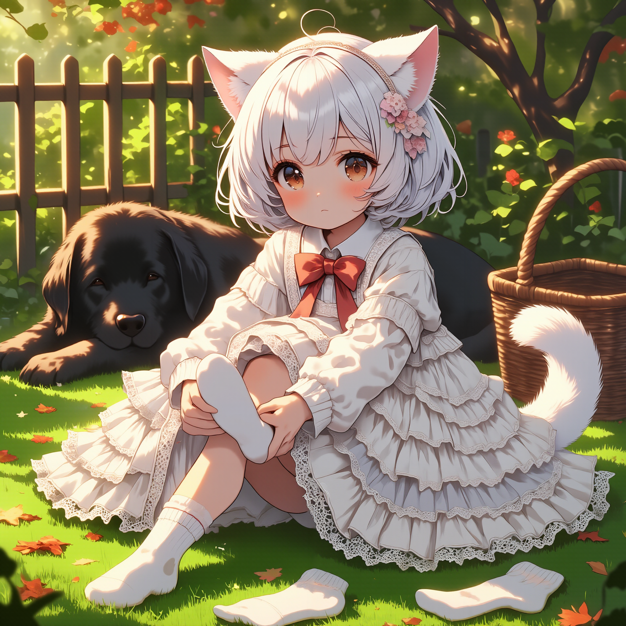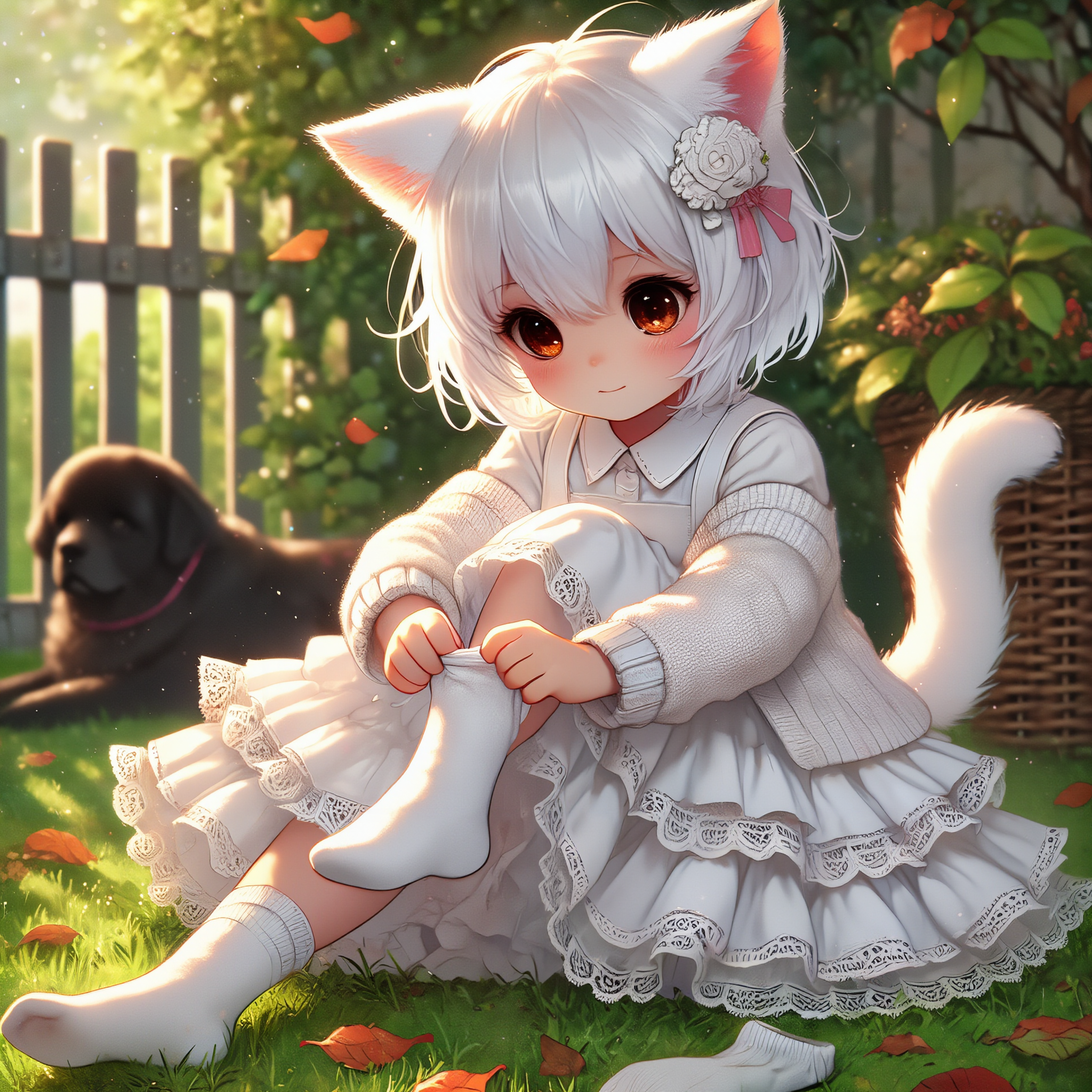 White cat and black dog/socks