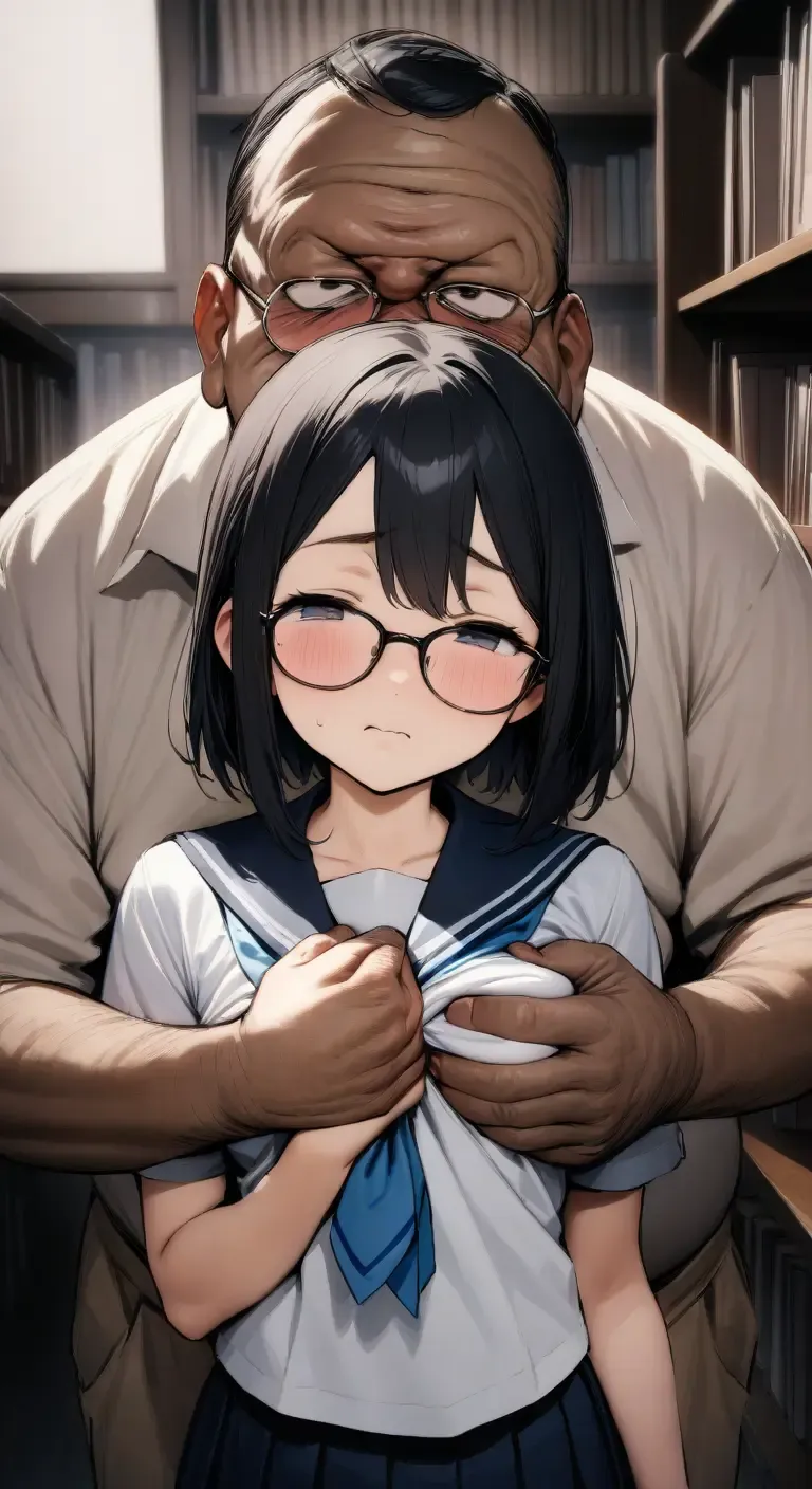 The library, the girl with glasses, and the ugly man