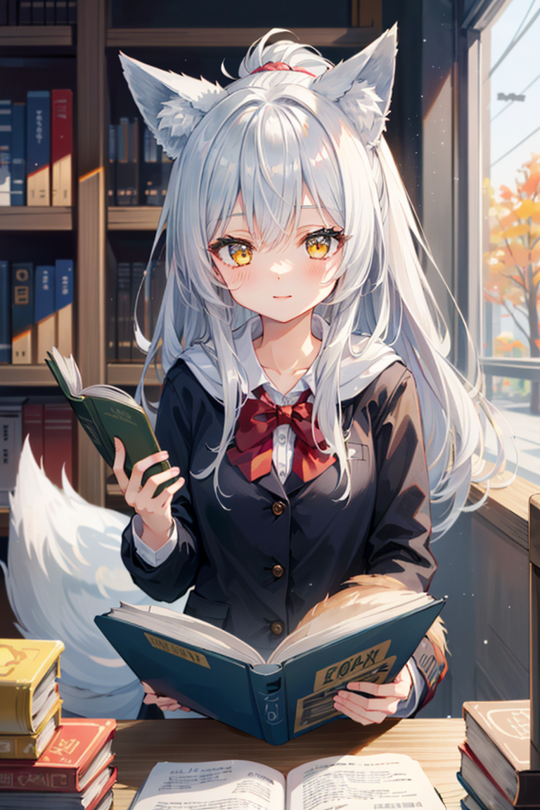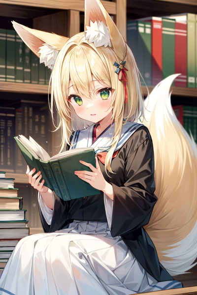 読書をする妖狐の少女