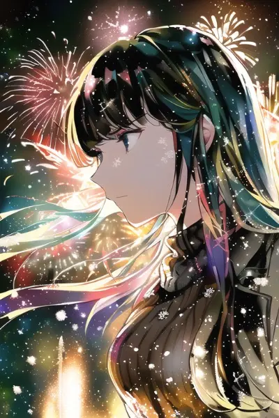 prompt: masterpiece, best quality, {{high-resolution image}}, {{{{{fusion of girl & fireworks & aurora, fusion of hair & background}}}}}, POV, perspective, {from below , close-up photography, upper body}, {{ultra-detailed}}, {beautiful detailed eyes}, {{{realistic, detailed, from front}}}, {{photo shop, law dater, photography, watercolor, inking}}, realistic fireworks texture, lens50mm f1.2, solo, 1 {{translucent}} detailed girl, solo focus, chibi face, cool, sitting, beautiful body, {{{{{{oversized large jacket, }}}}}, {ribbed sweater}, slim tight, {{{flat chest}}}, [[[[muscular]]]], black hair, long flowing locks, blunt bangs, sharp black eyes, {squinting eyes}, refined facial features, captivating beauty, flawless complexion, subtle makeup, slender figure, confident posture, elegant stance, {{attention to clothing details}}, delicate fabric folds, {{realistic shading, natural lighting}}, impeccable anatomy, lifelike expression, ethereal atmosphere, tranquil silence, enchanting beauty, {{{{sparkling snow-covered ground}}}}, shimmering moonlight, crisp winter air, frozen landscape, glistening icicles, intricate details, delicate snowflakes, vibrant bursts of color, brilliant,