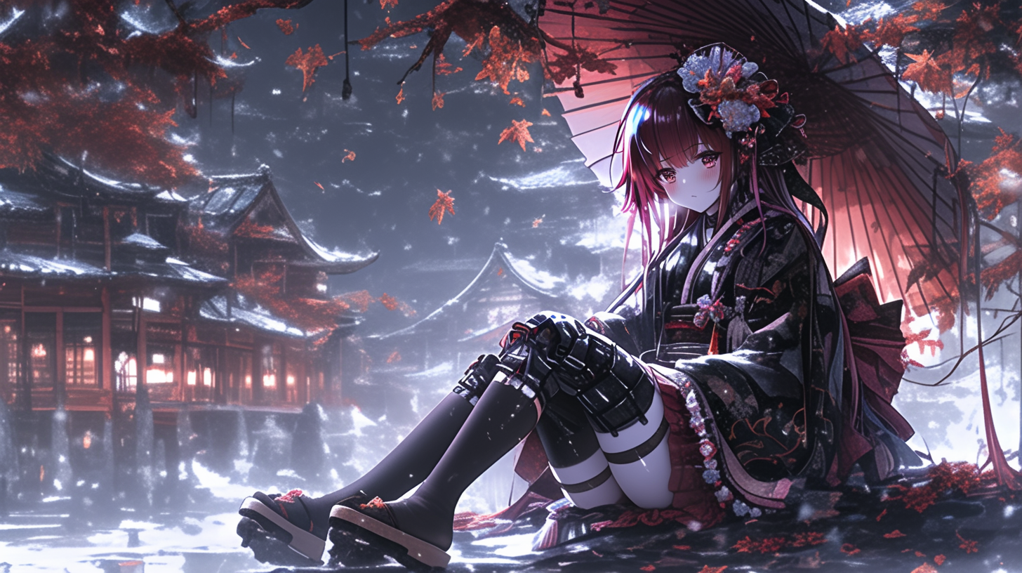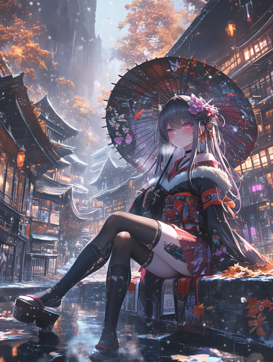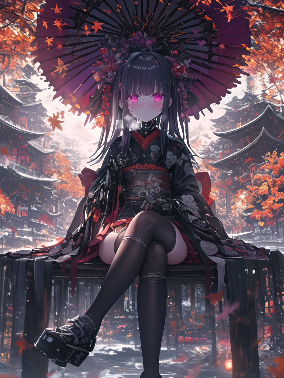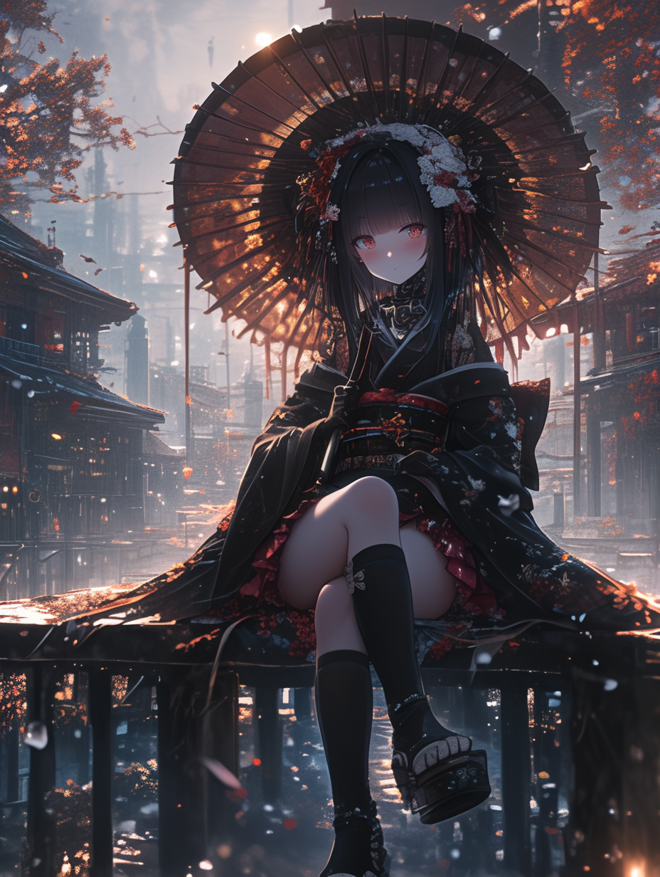 Cyborg grim reaper girl in Japanese-style gothic loliita,
