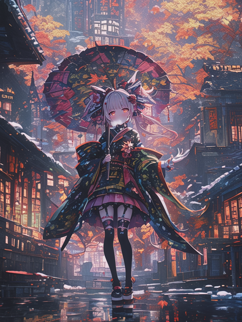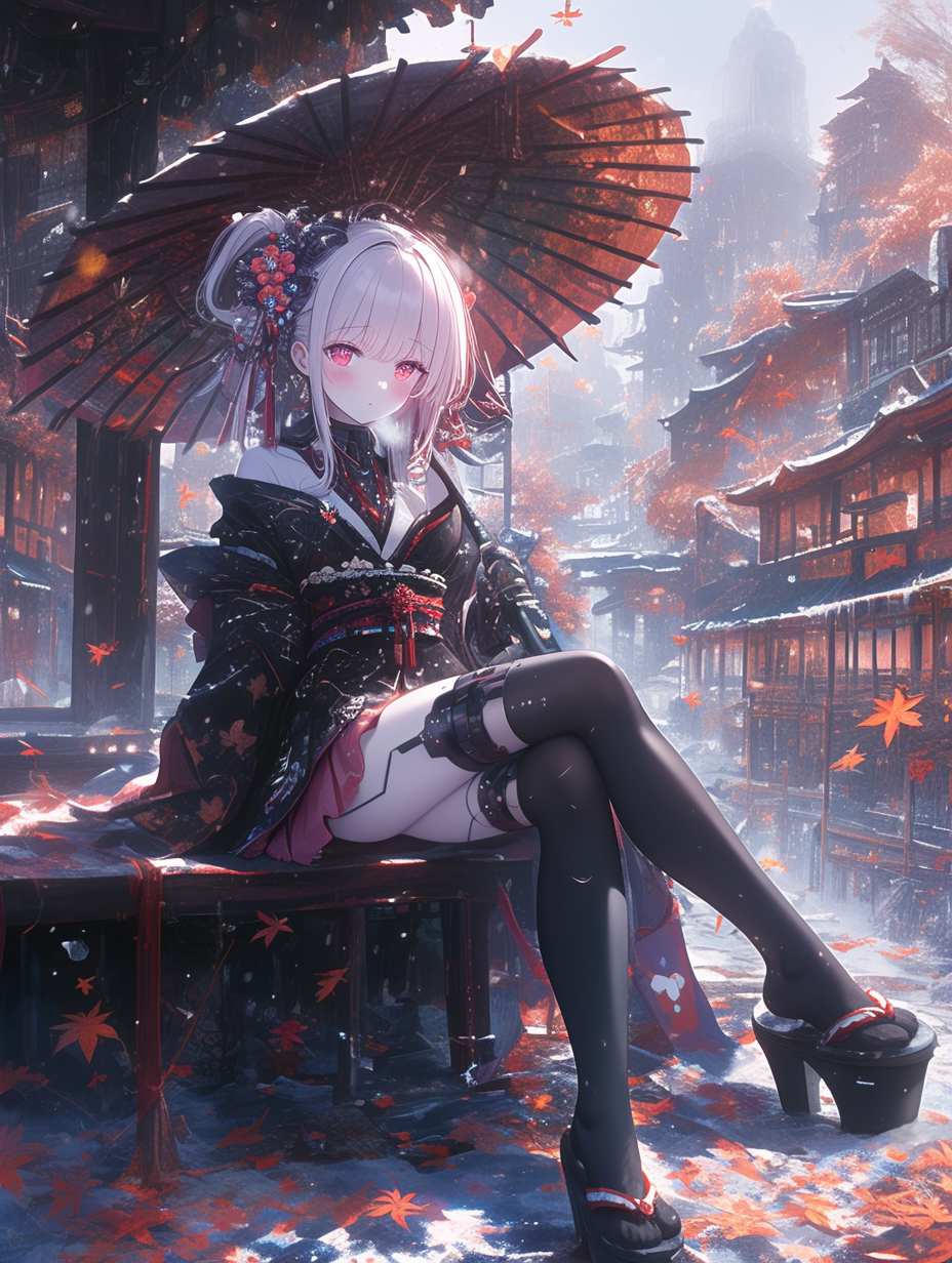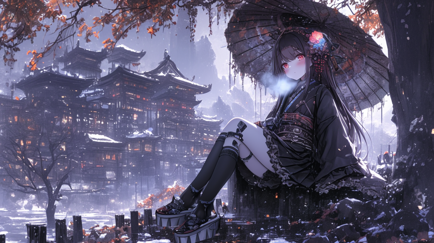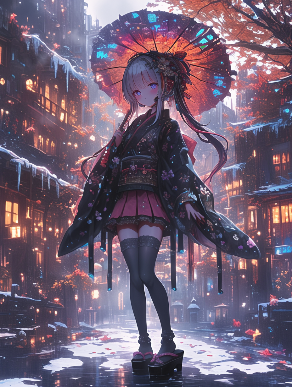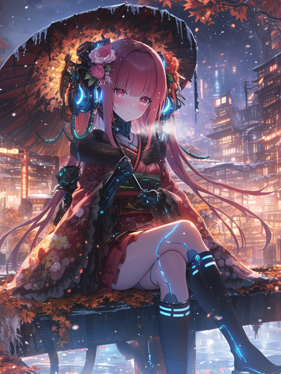 Cyborg grim reaper girl in Japanese-style gothic loliita,