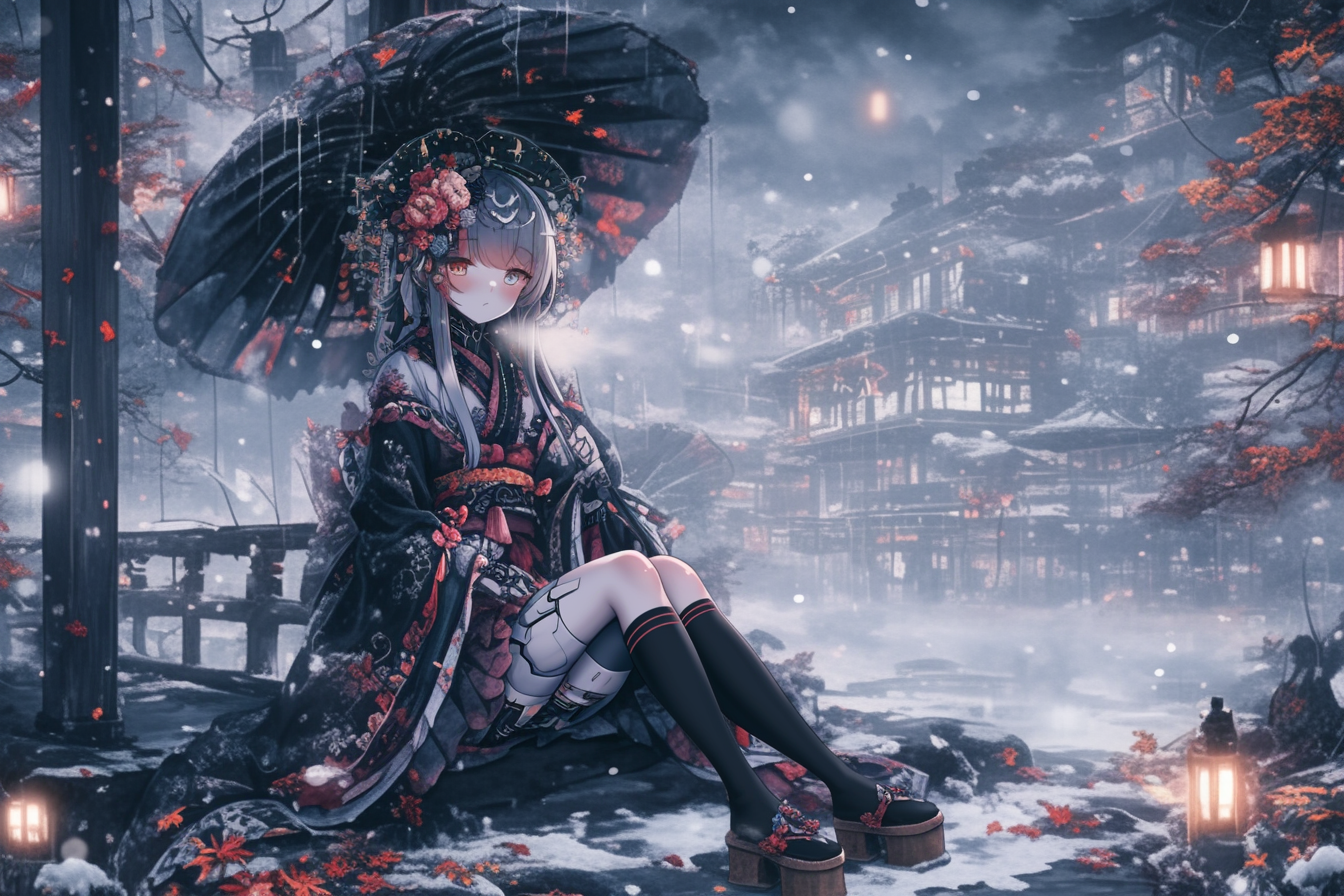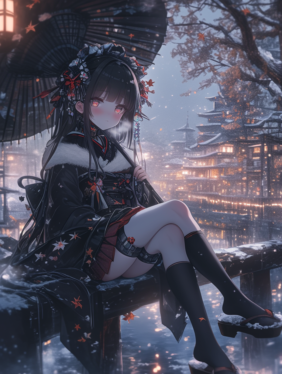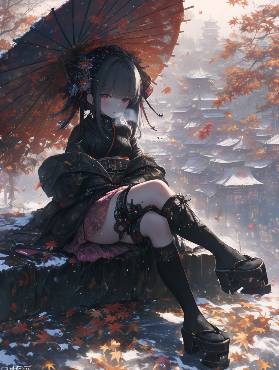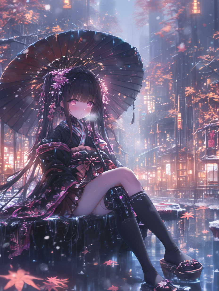 Cyborg grim reaper girl in Japanese-style gothic loliita,