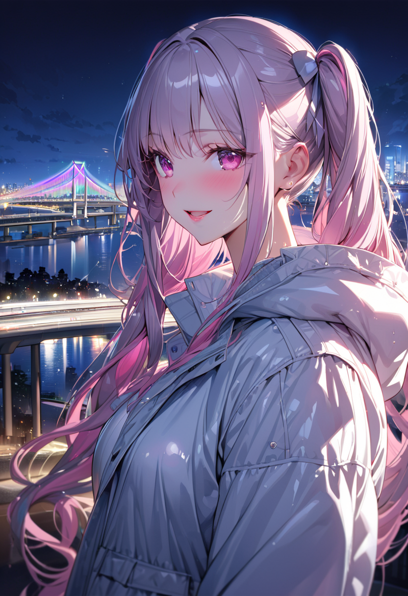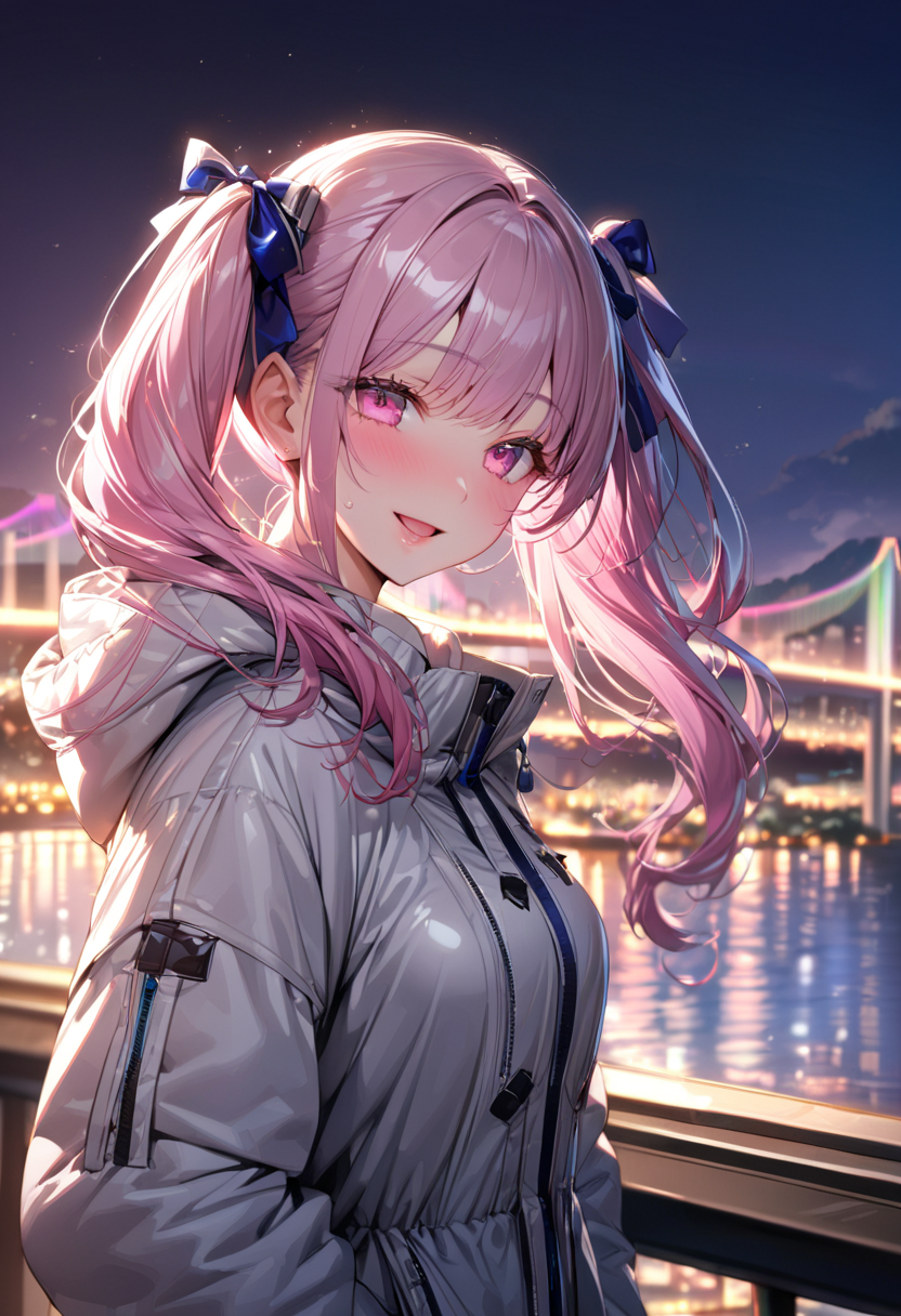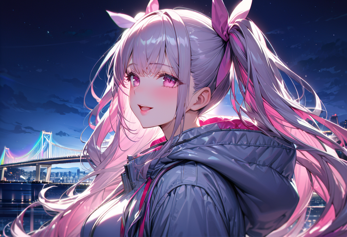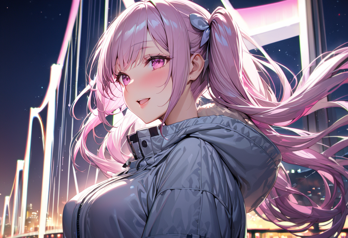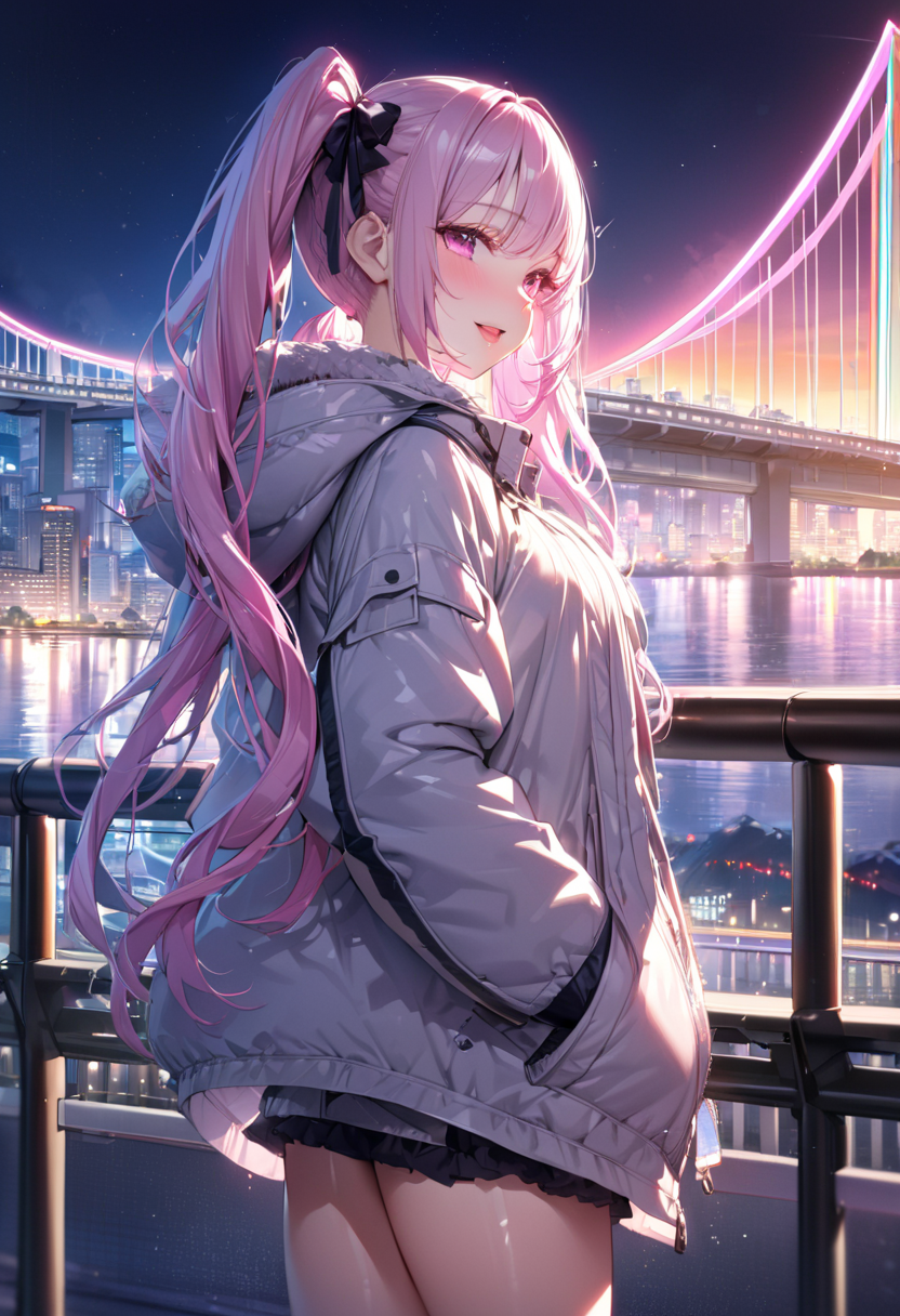 レインボーブリッジはたぶん初生成かと思いますね。虹は前に生成したような記憶はありますね、夏の海の時に。上着はマウンテンパーカーで生成いたしました。イメージに近い感じではありましたね。