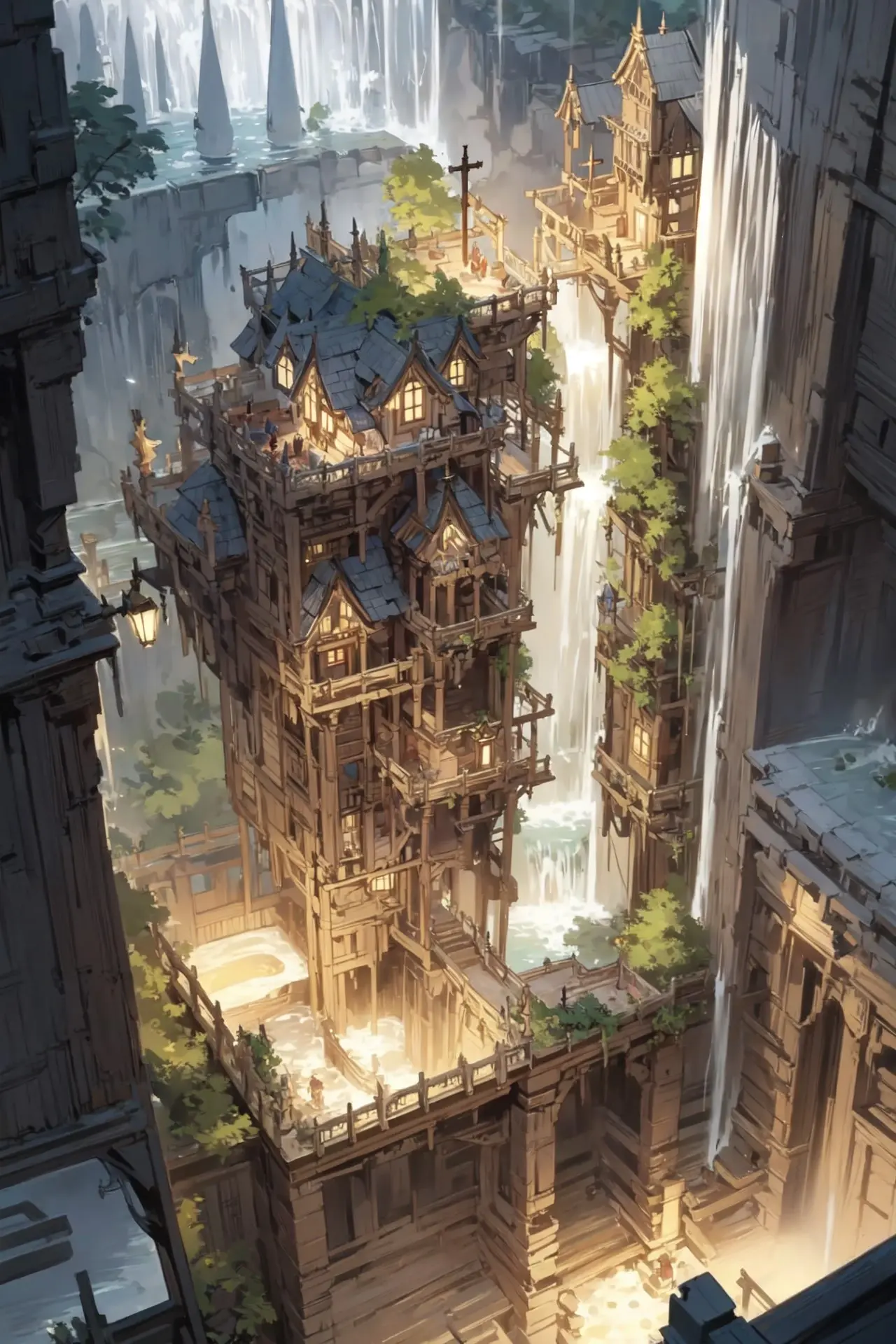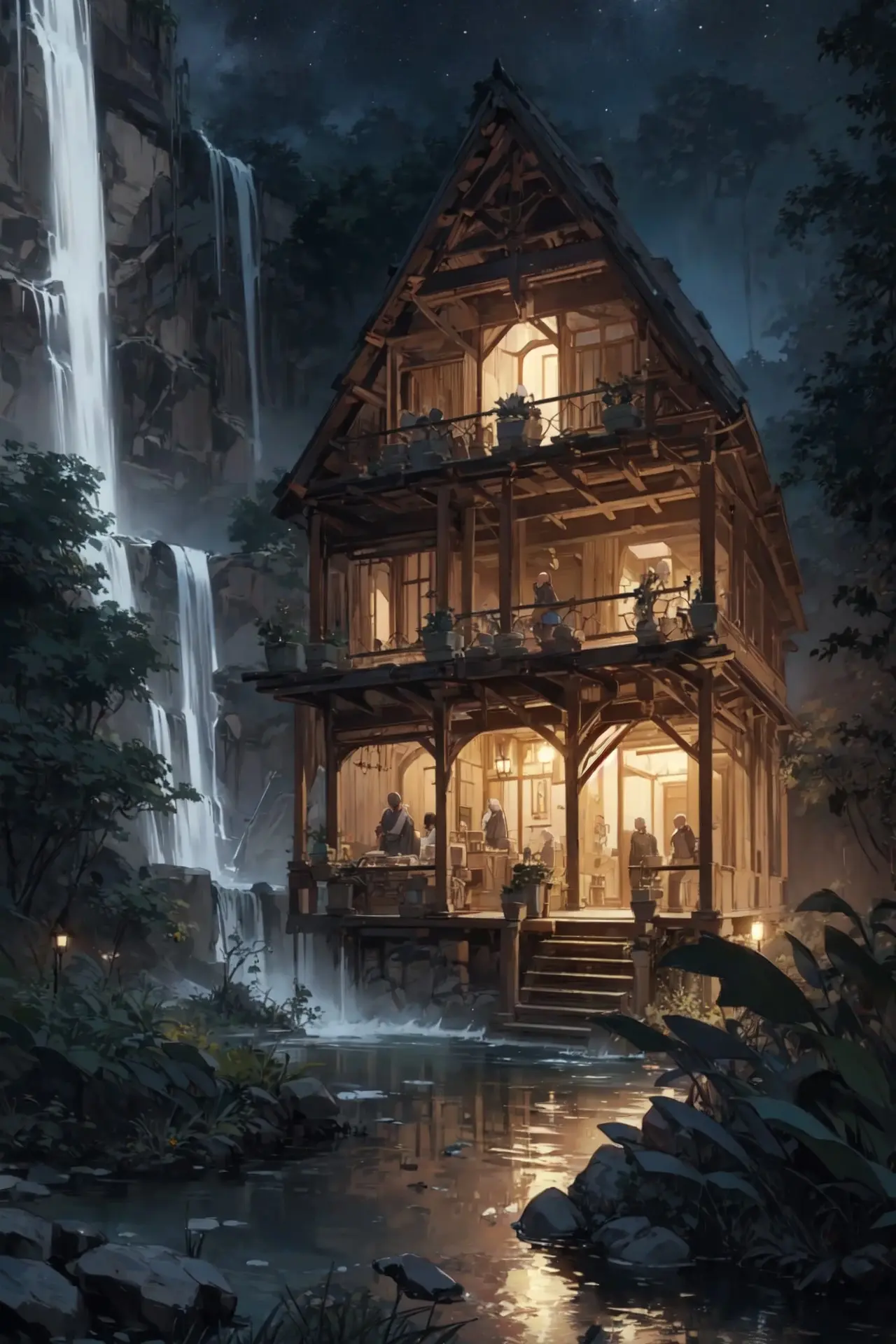 滝のある家