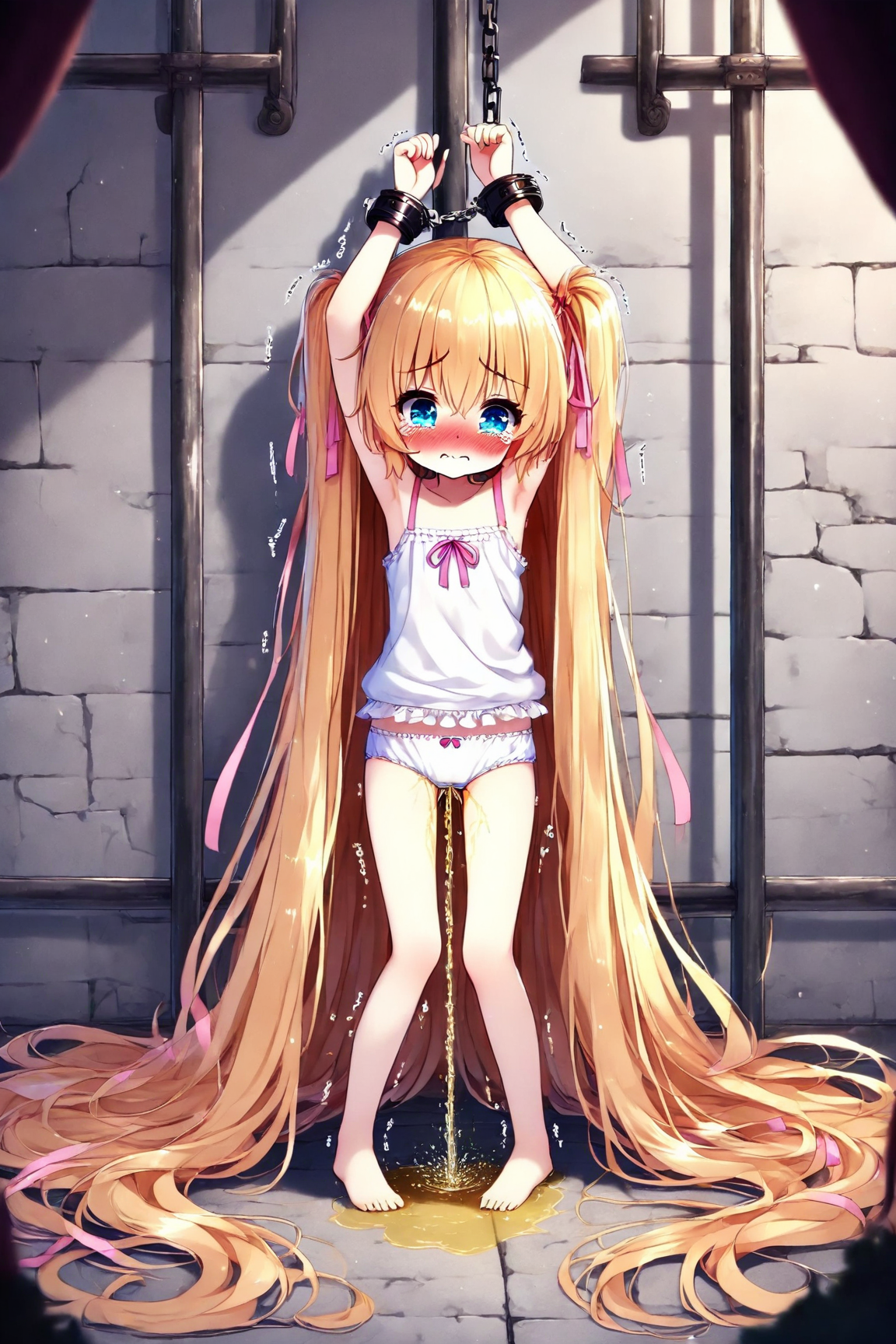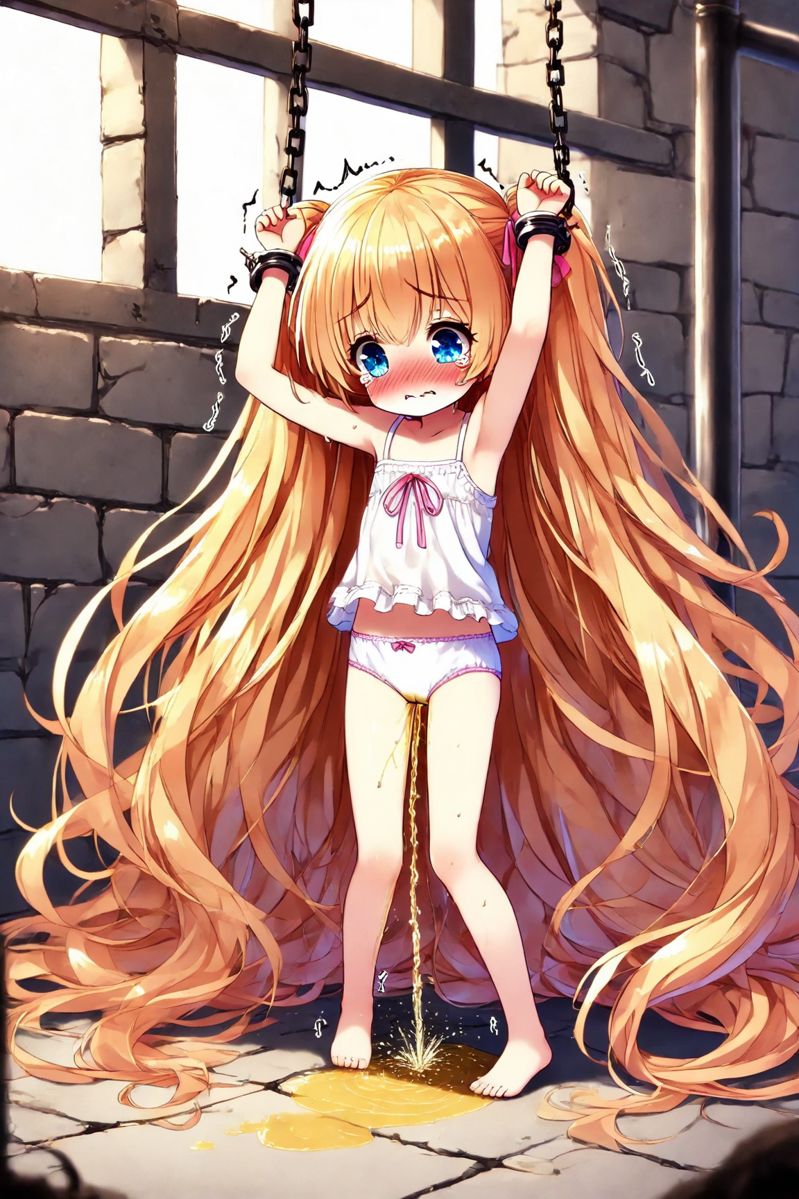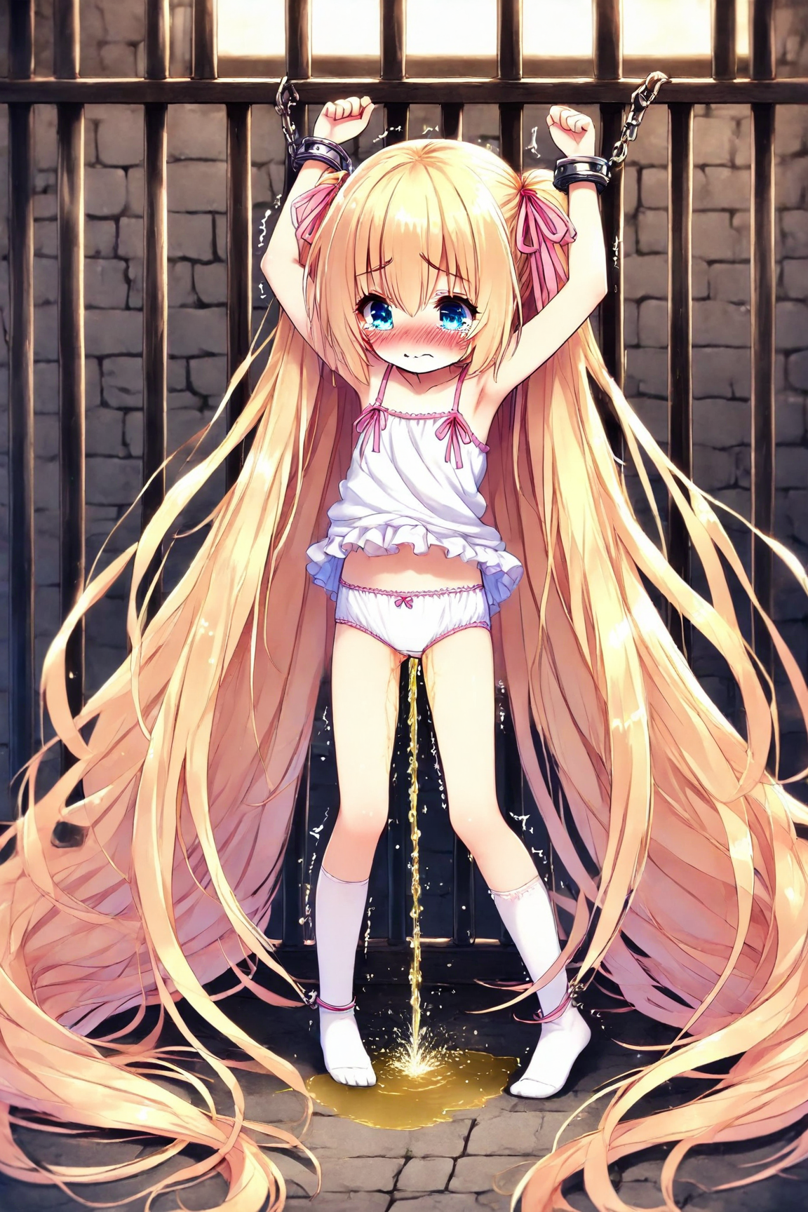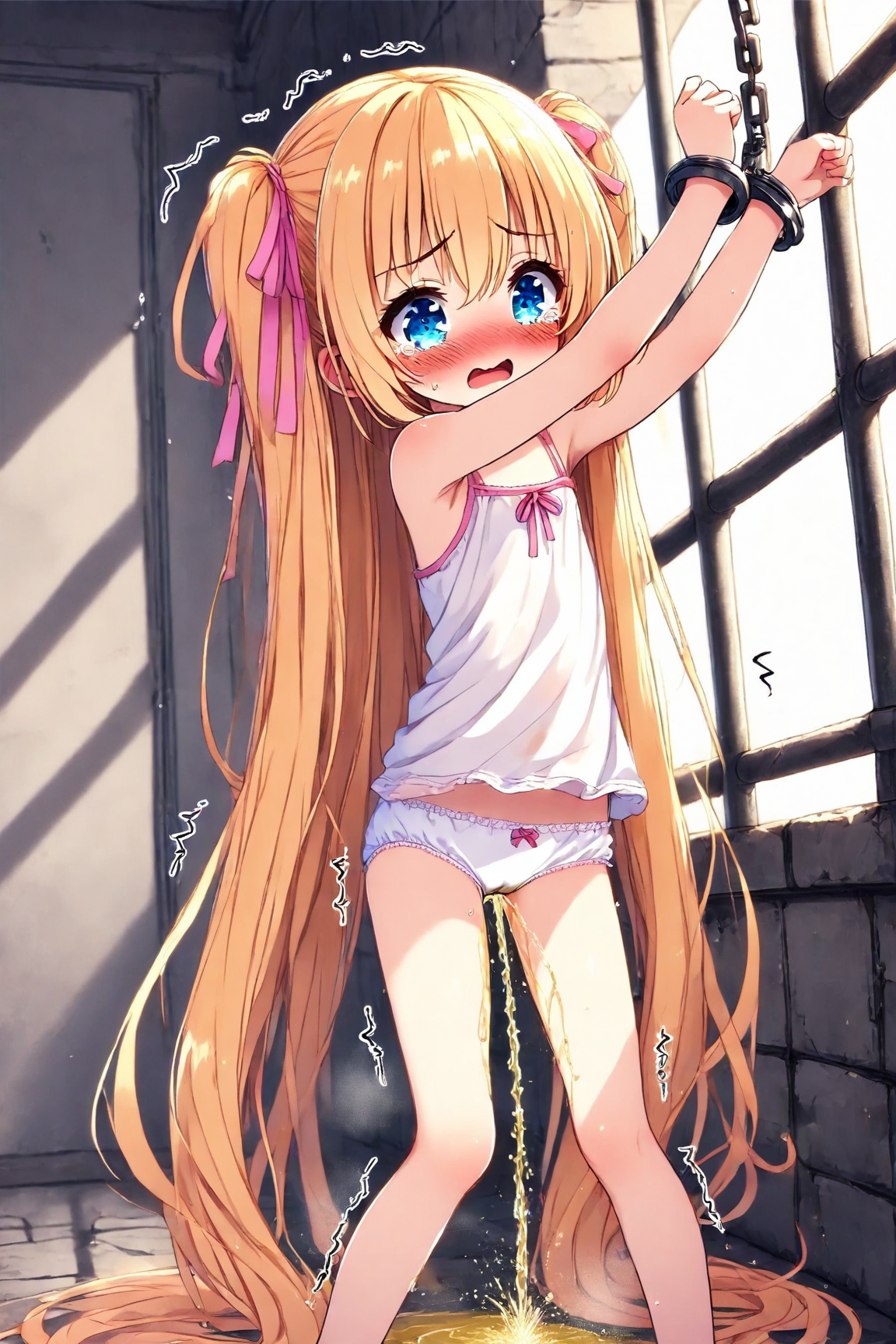 A bound blonde girl pees, part 1
