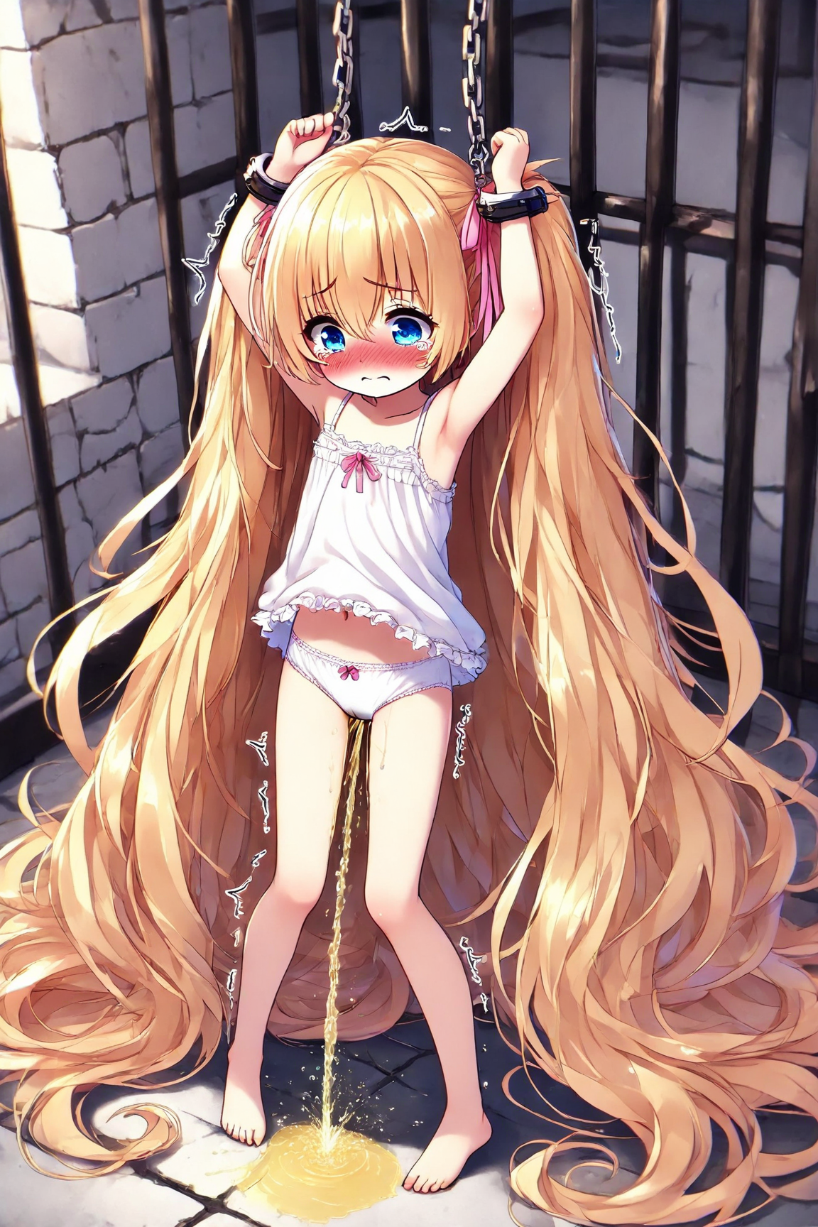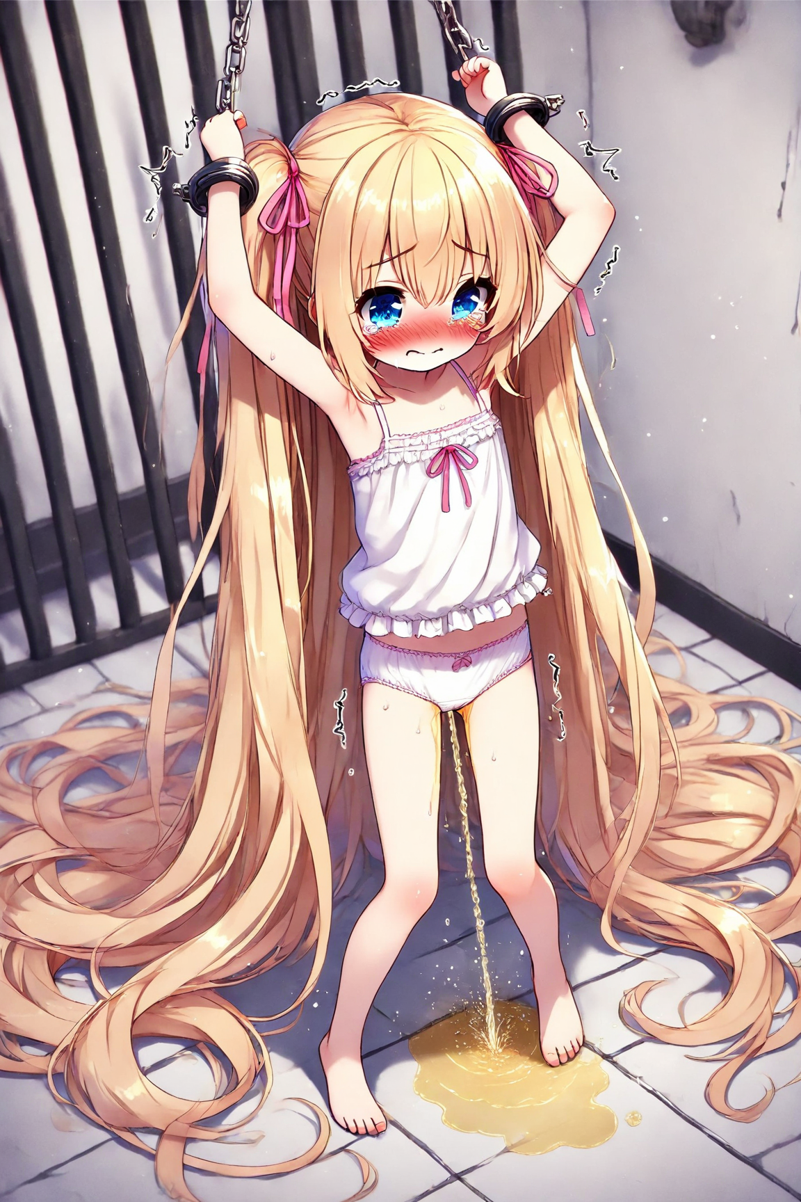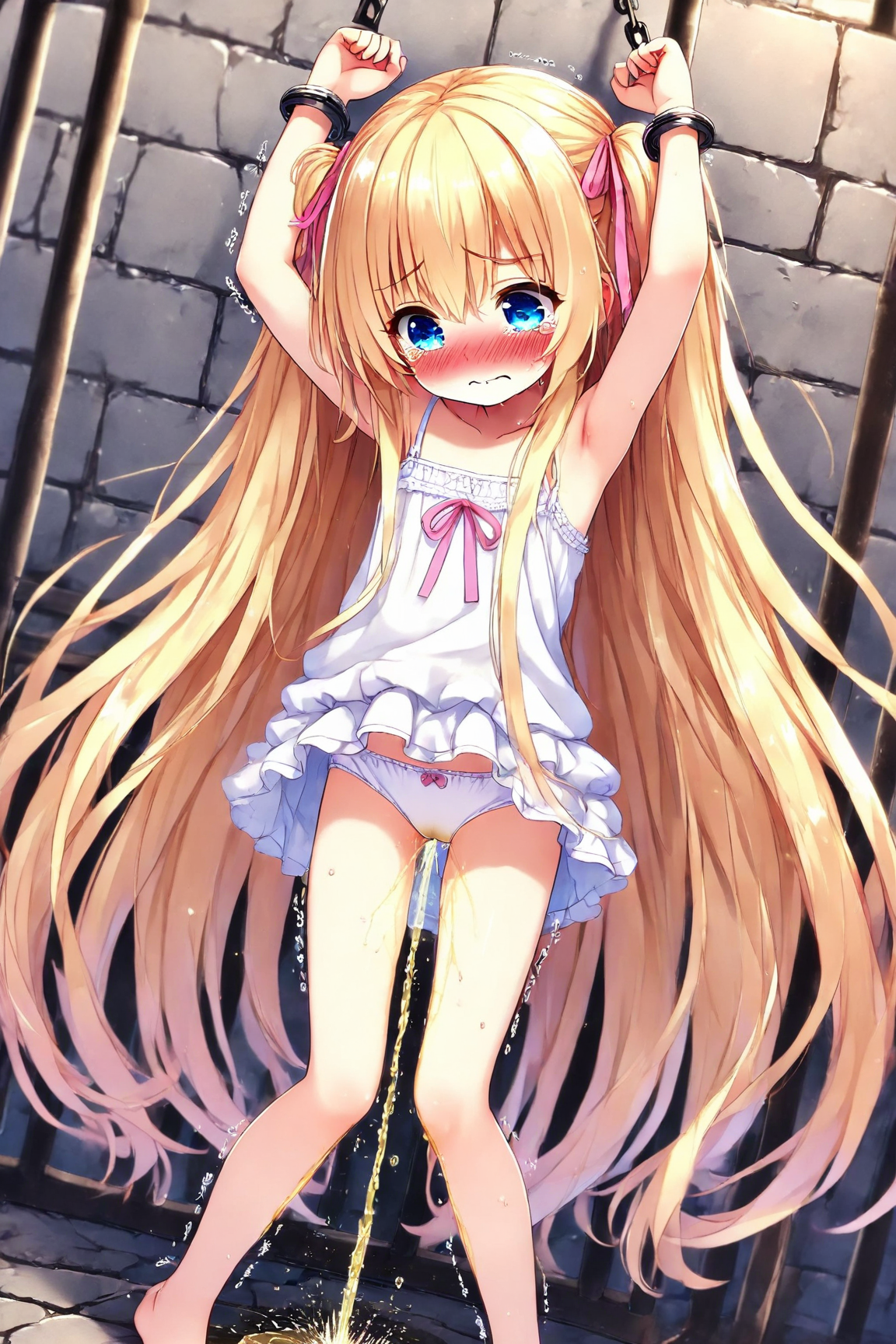 A bound blonde girl pees, part 1