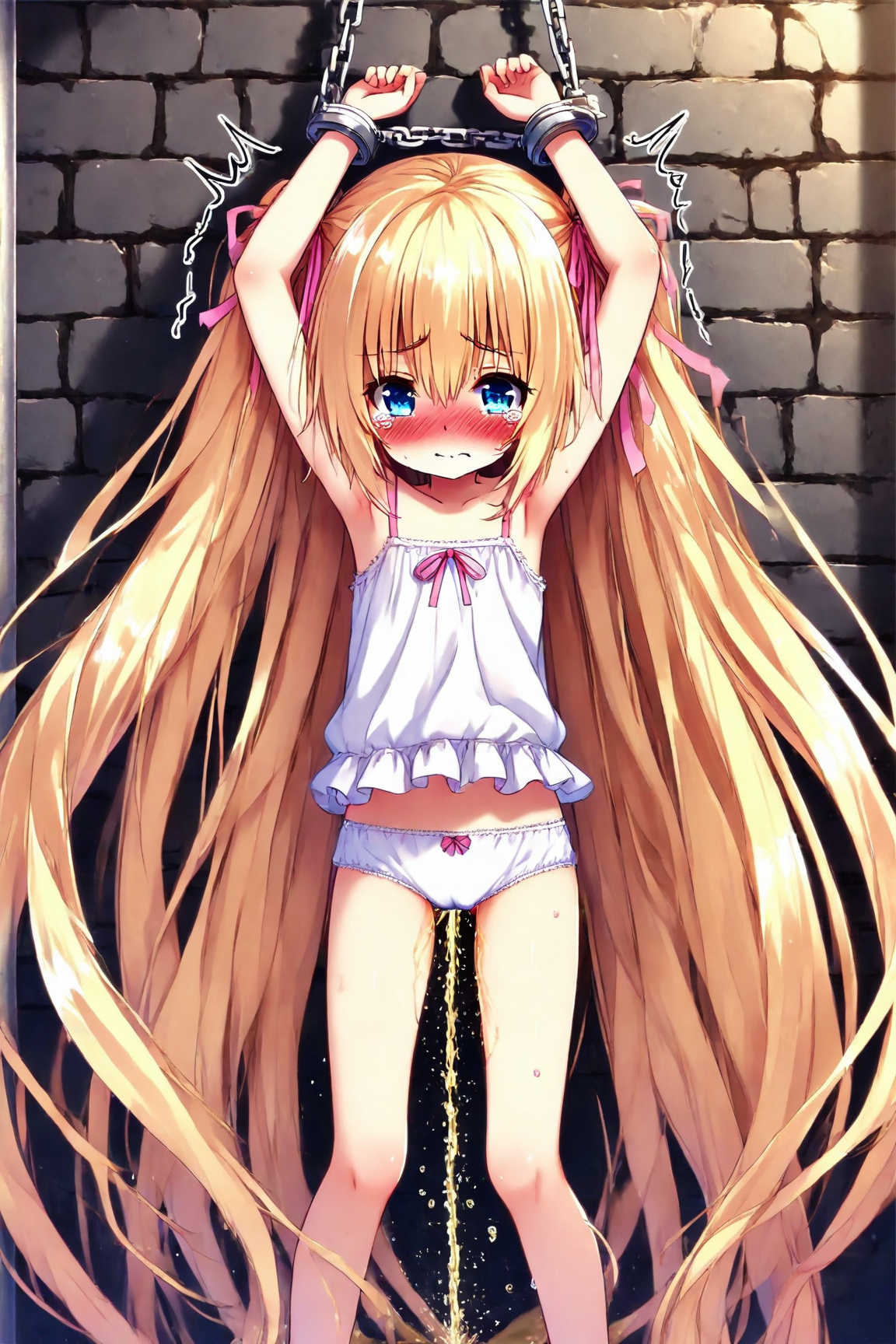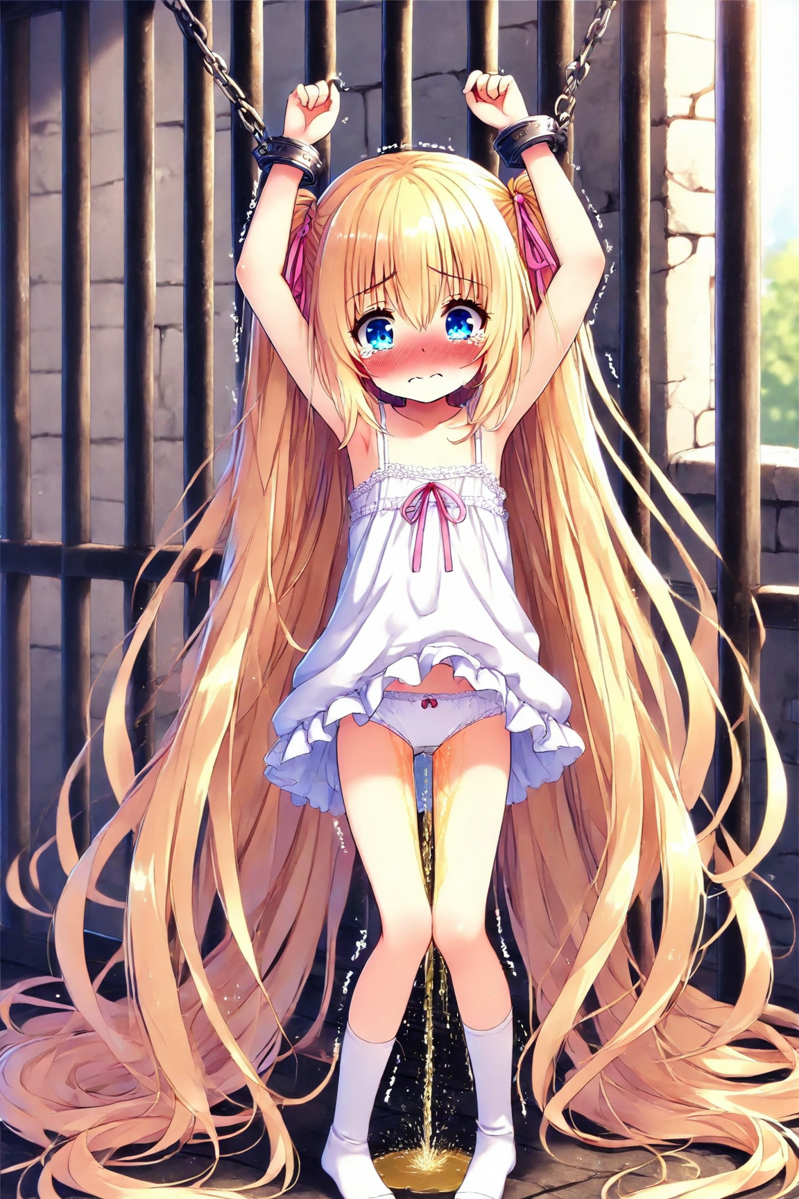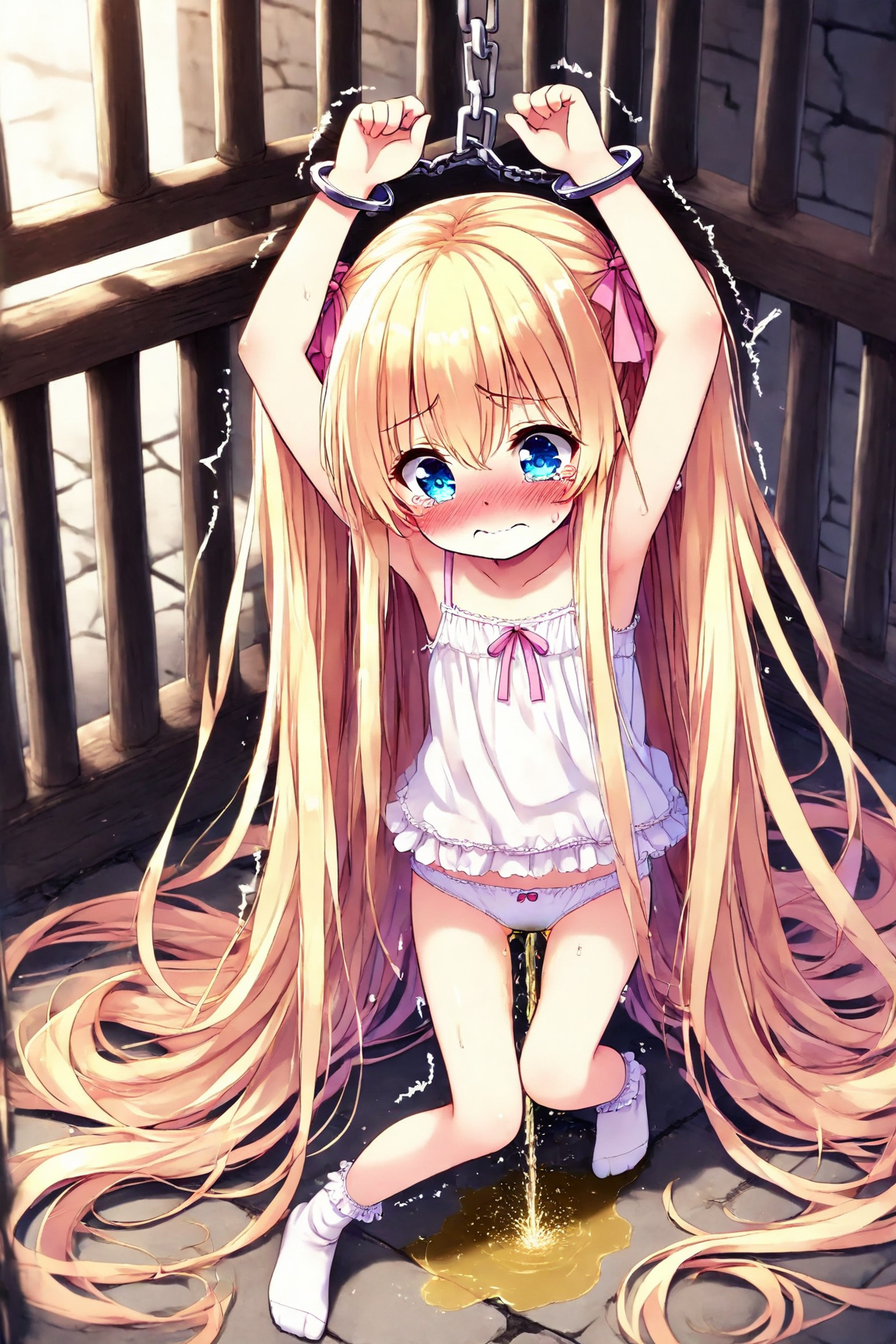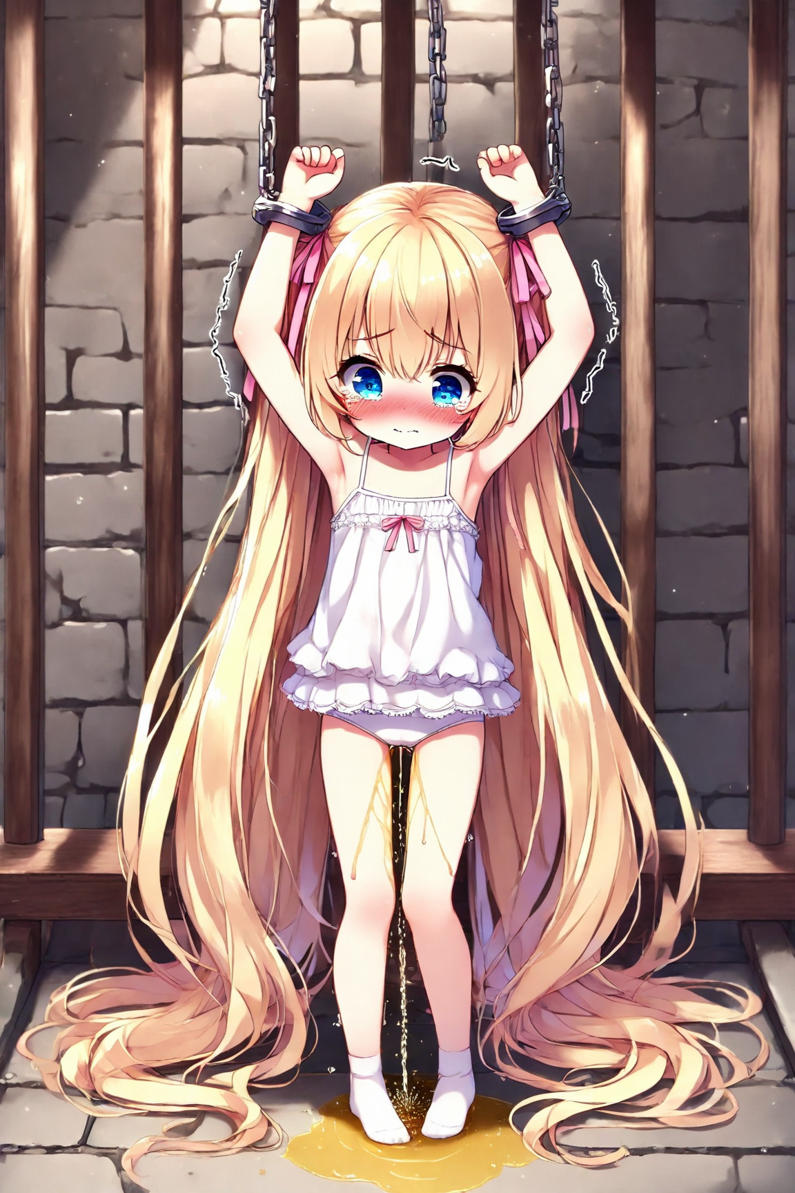 A bound blonde girl pees, part 1