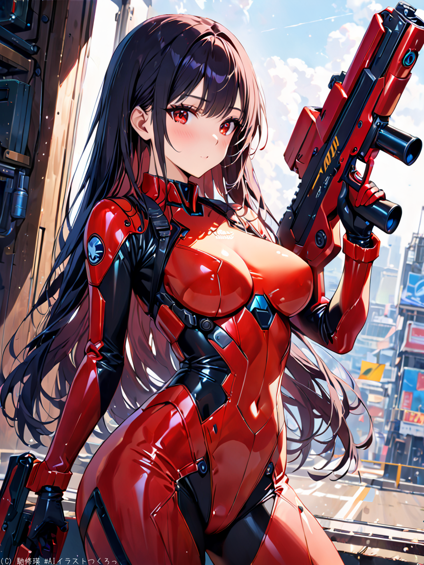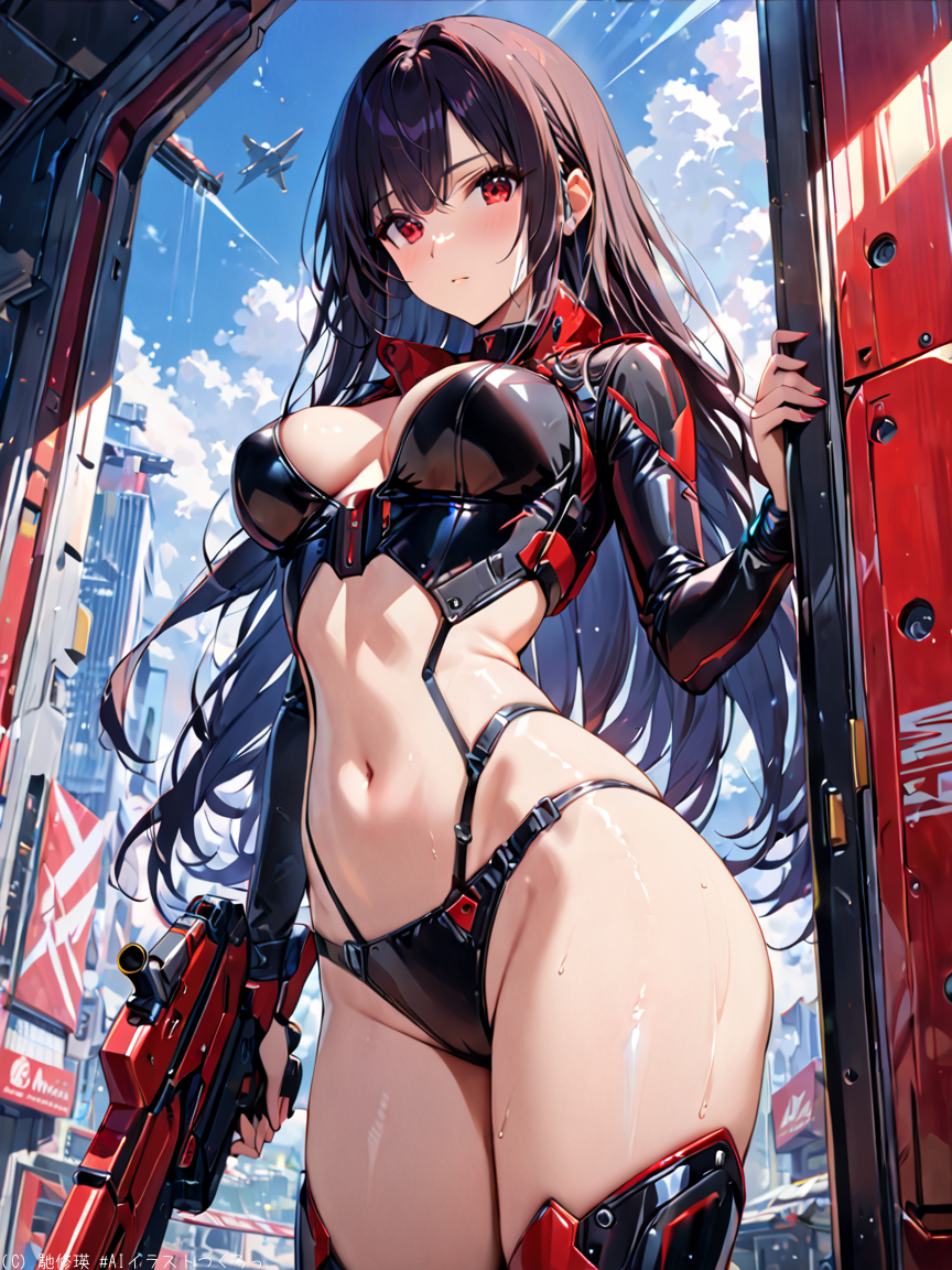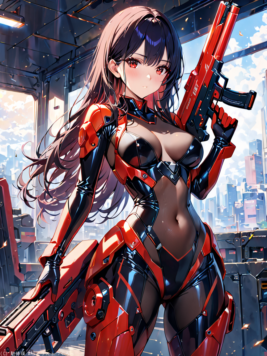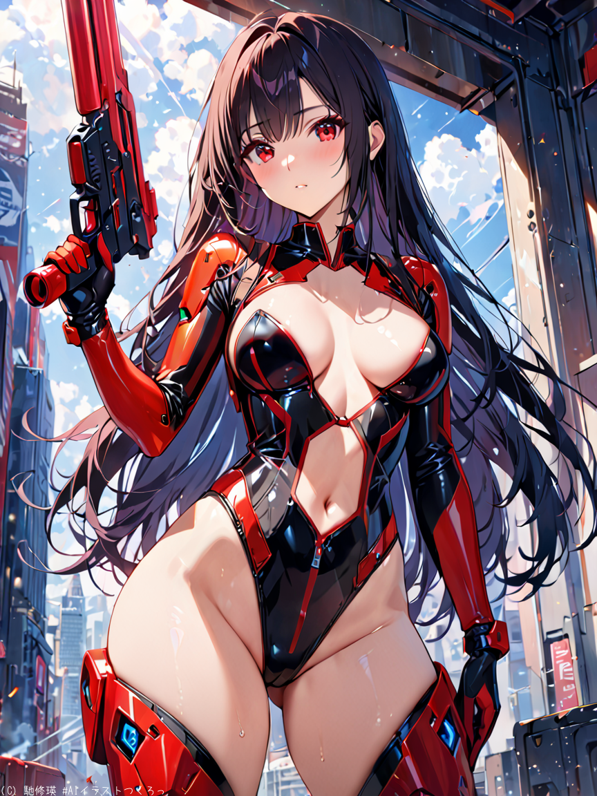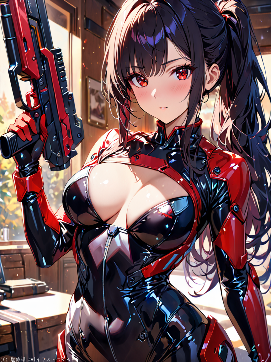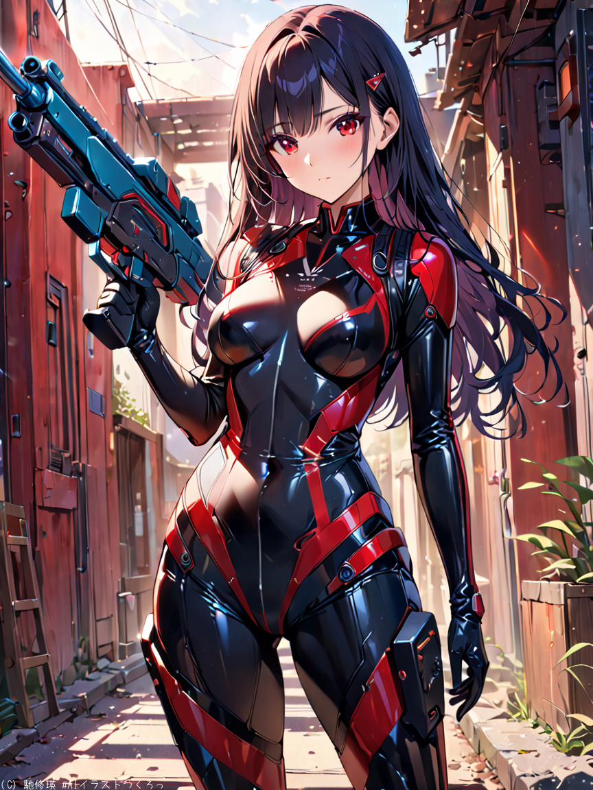 黒髪美少女と光線銃