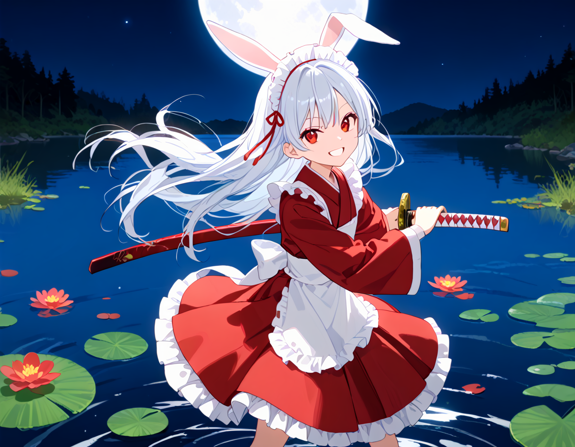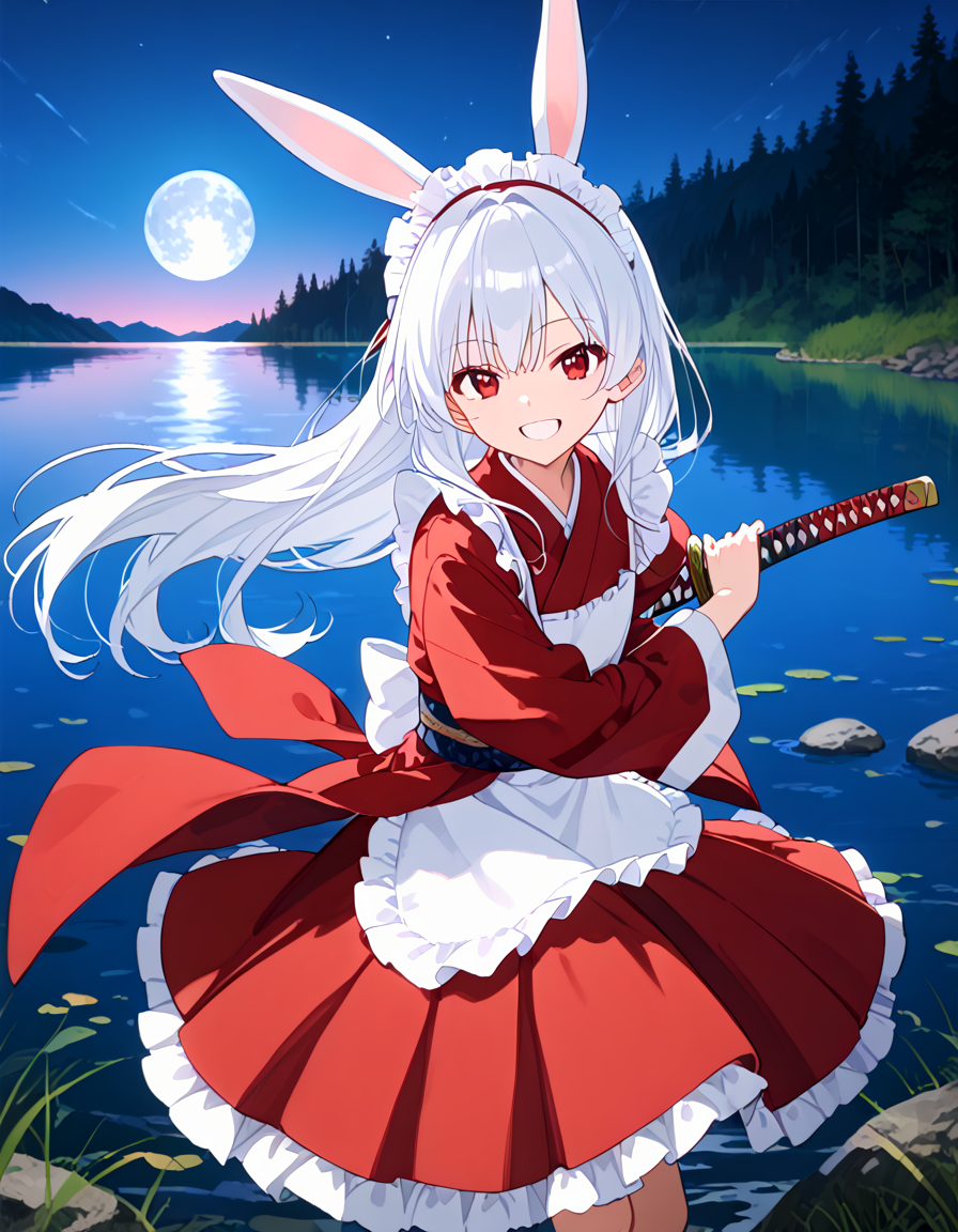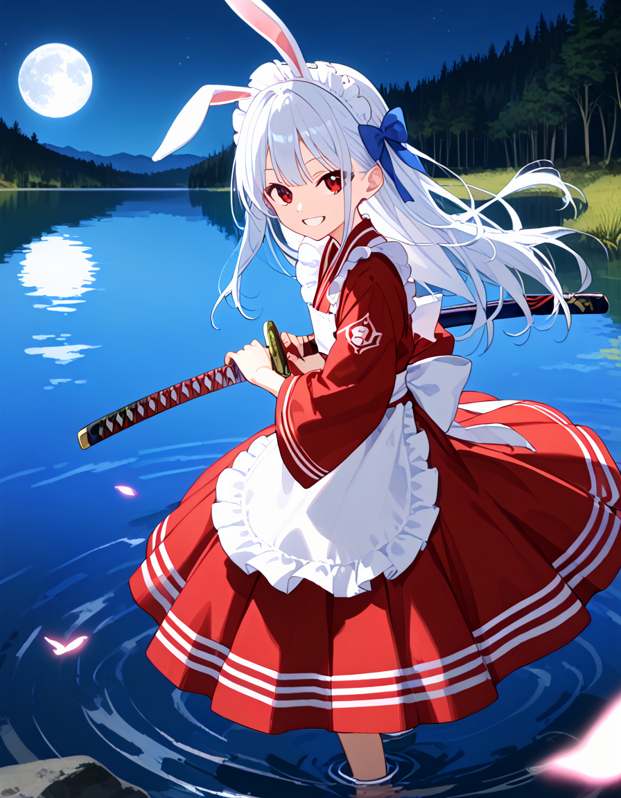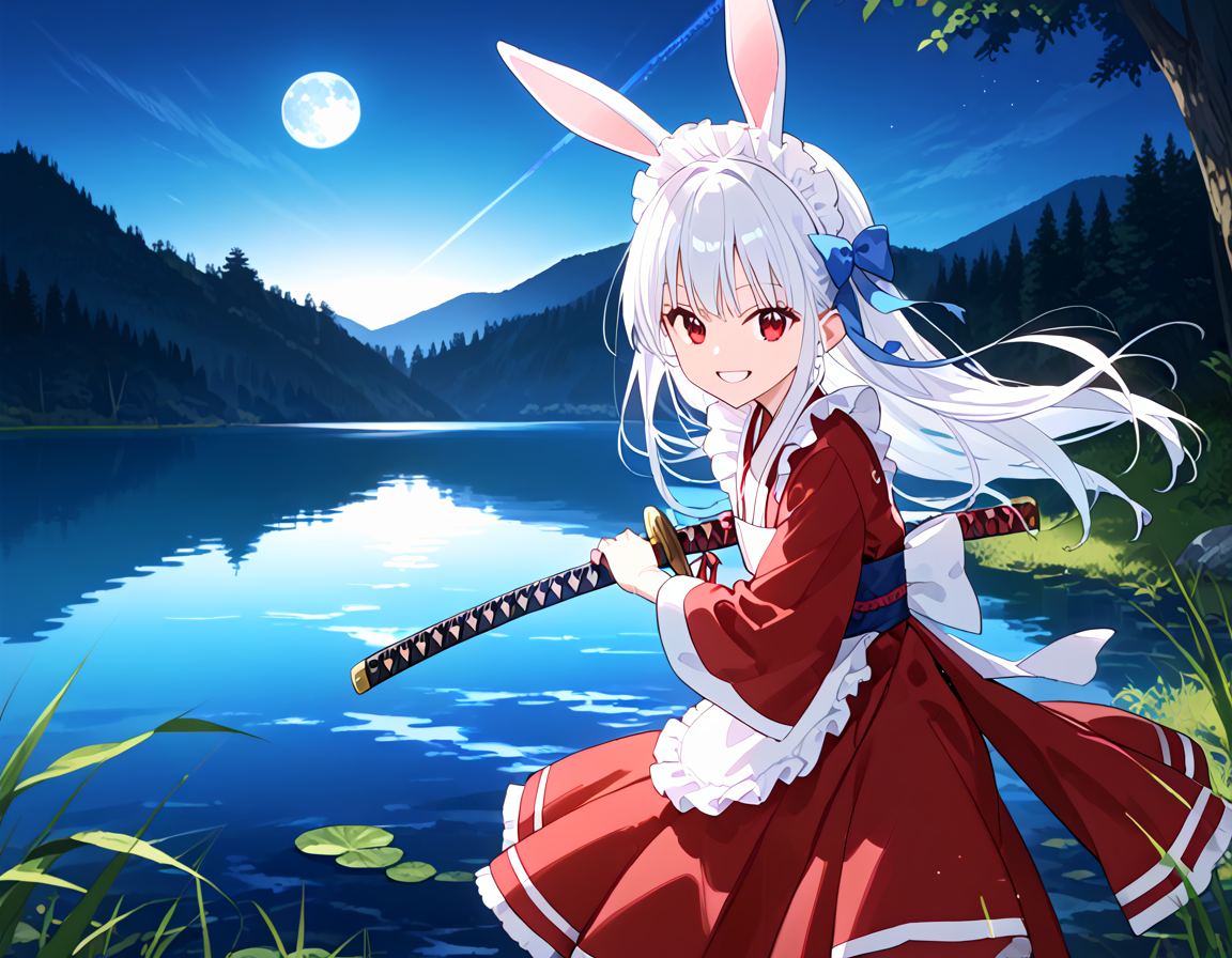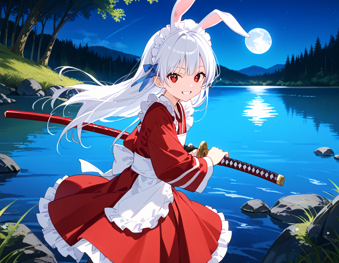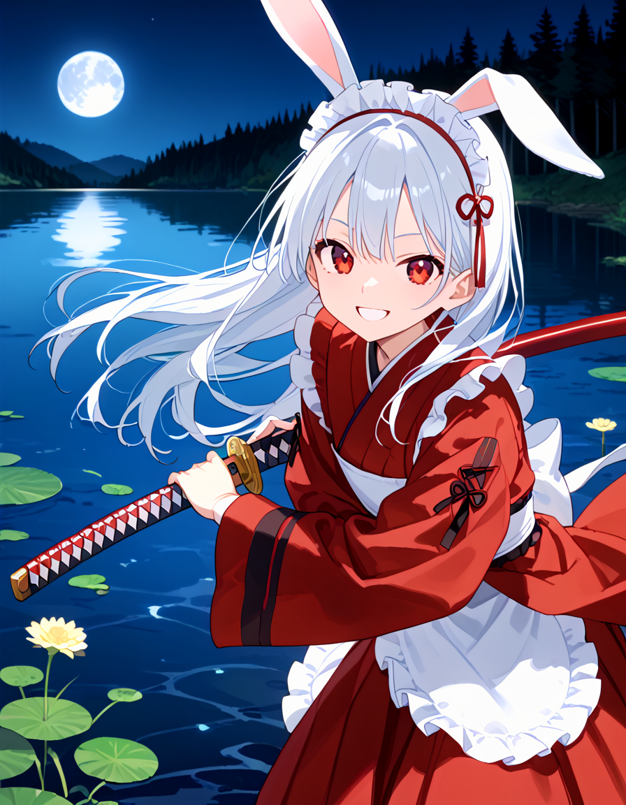 White rabbit with a sword who protects the silence of the lake!