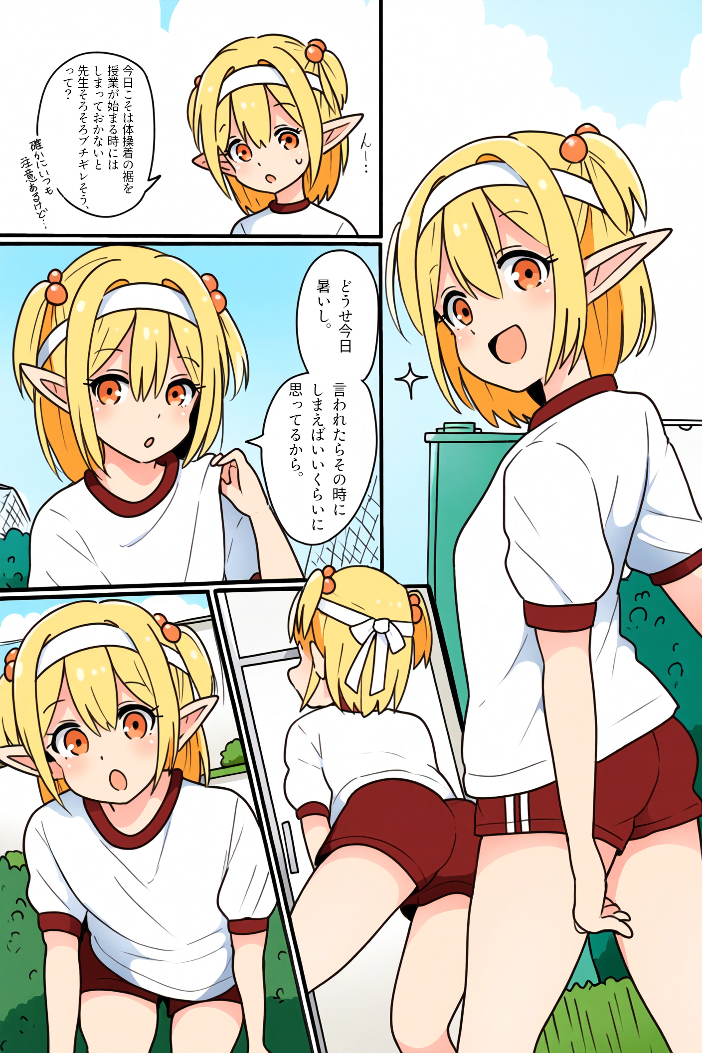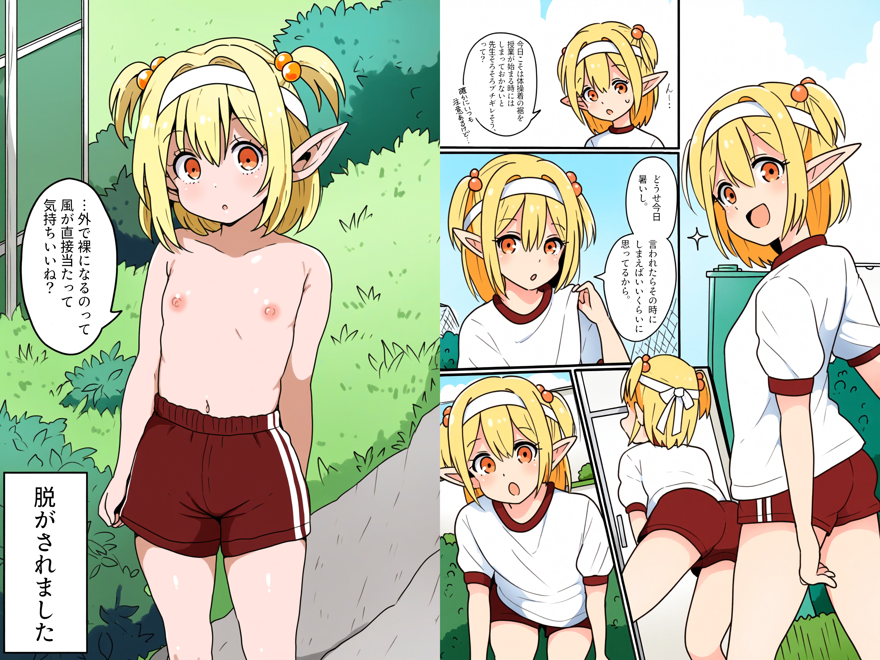 【漫画】体操着の裾をしまっていないので脱がされたエルフさん(和訳版)