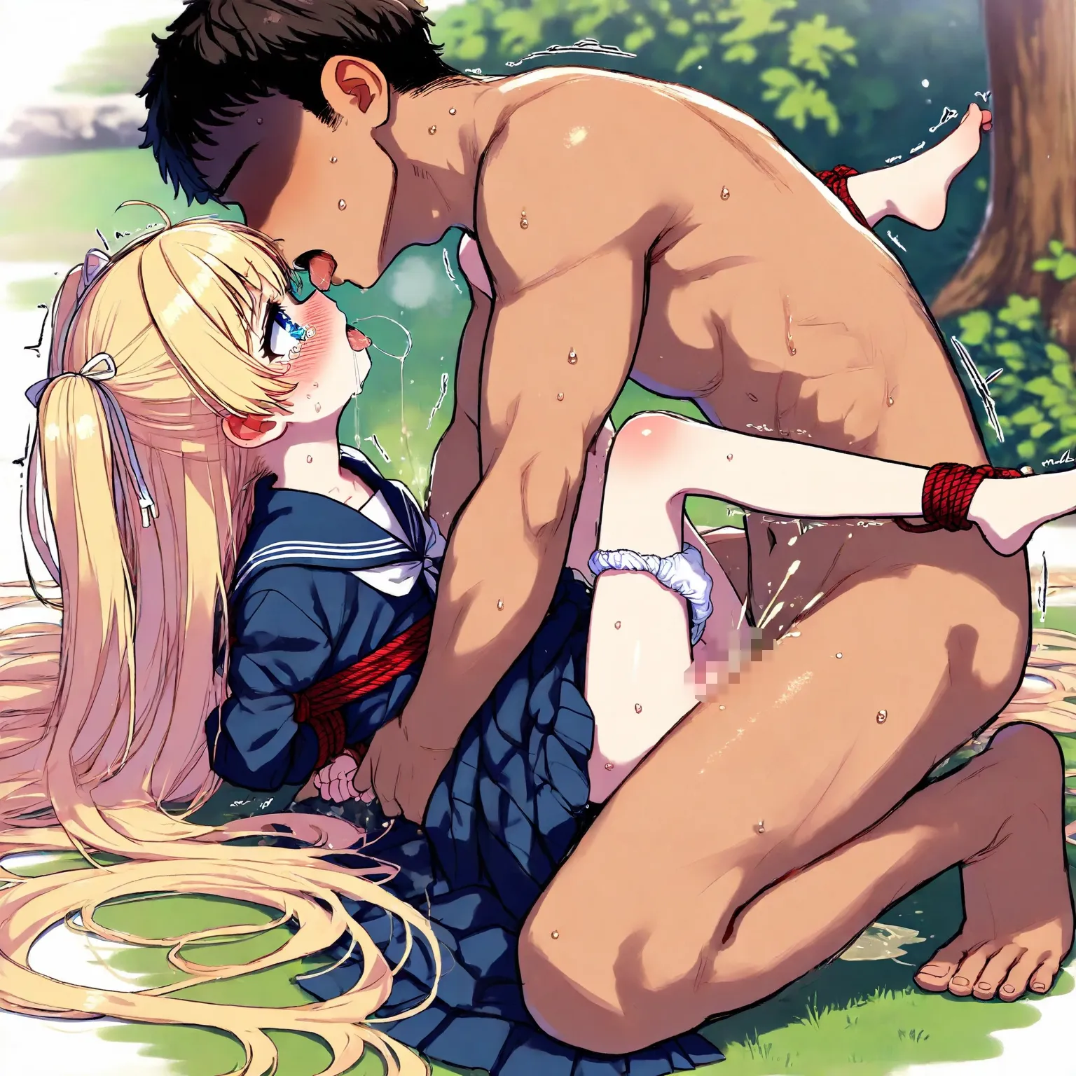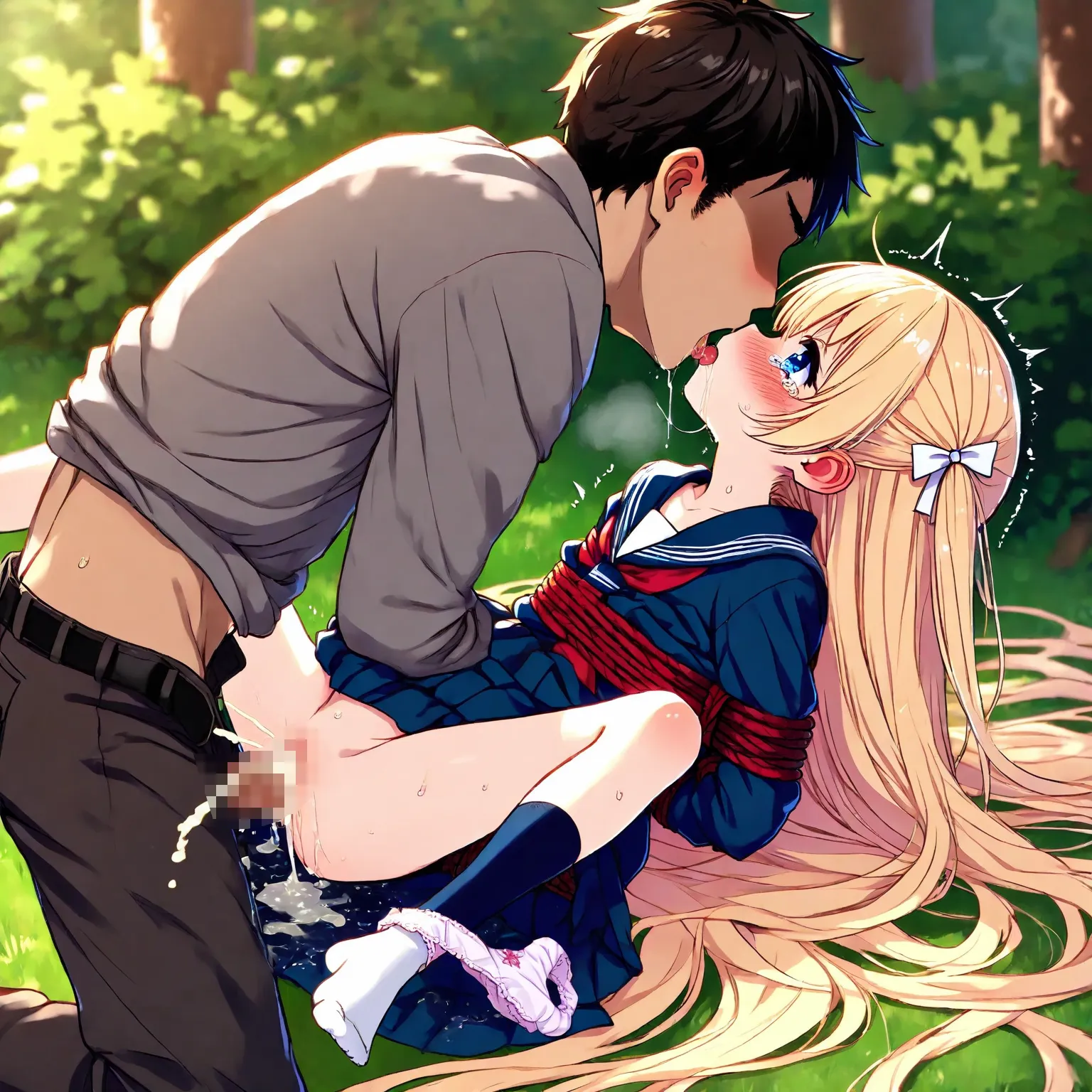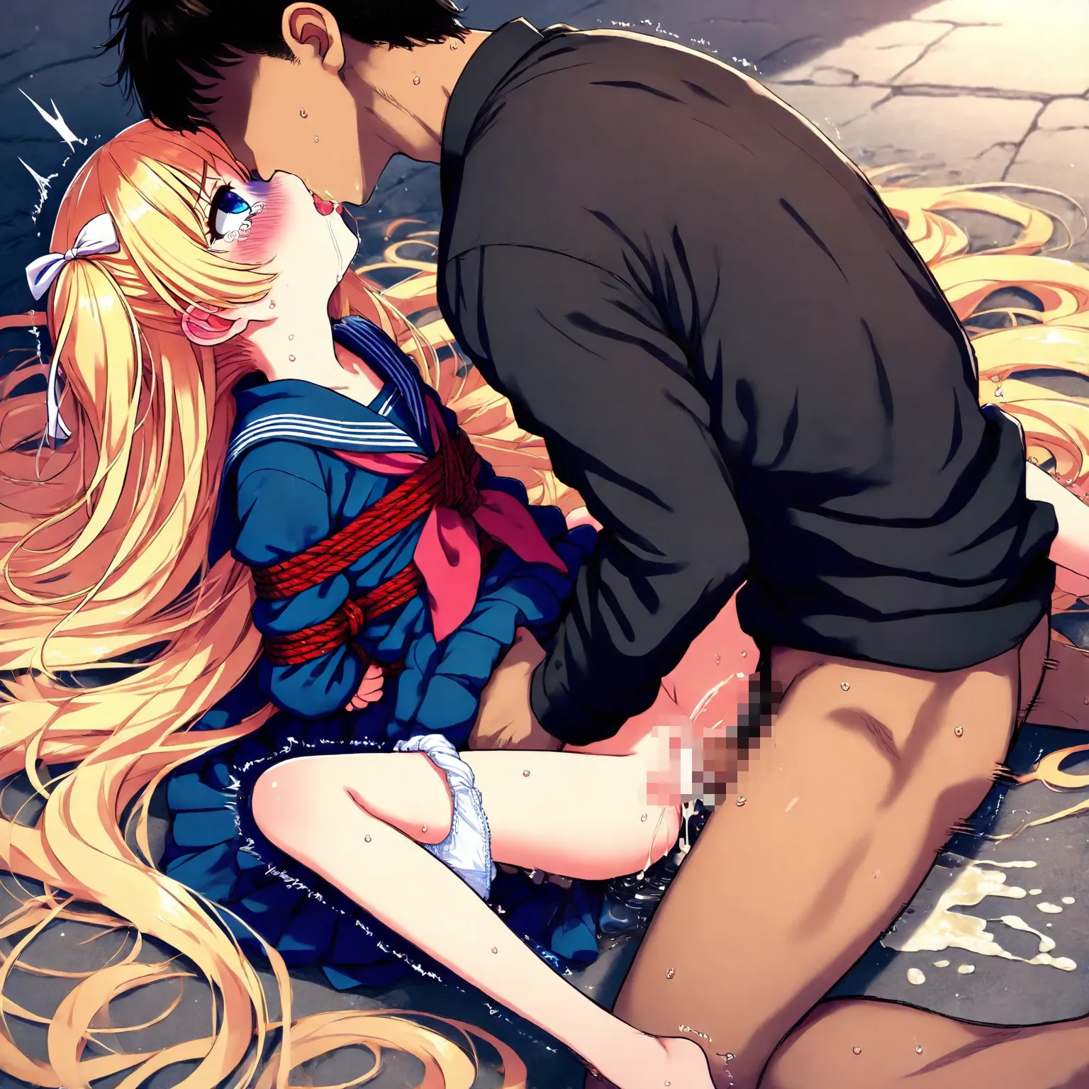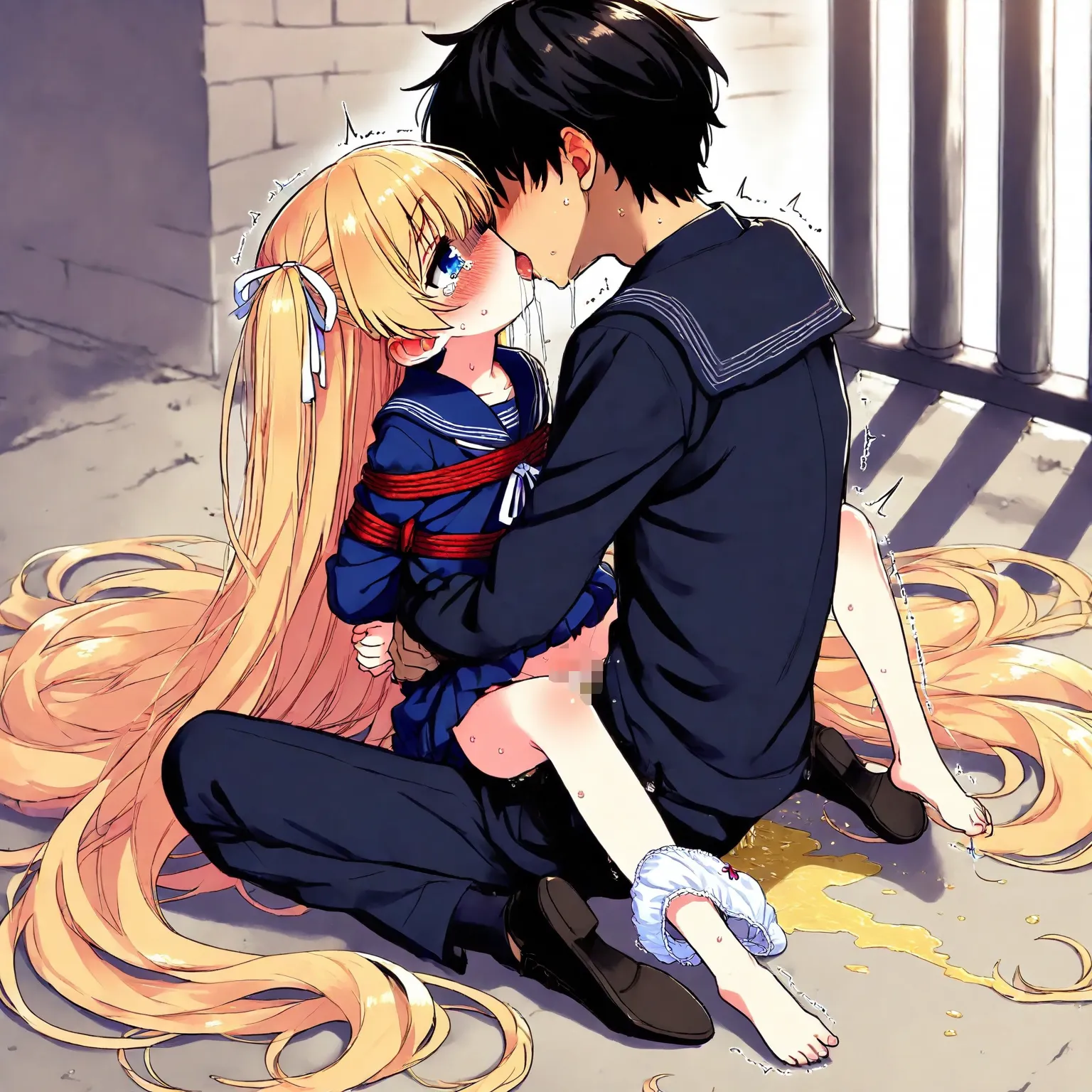 Blond girl in sailor uniform is tied up, raped, kissed and fucked, and wets herself