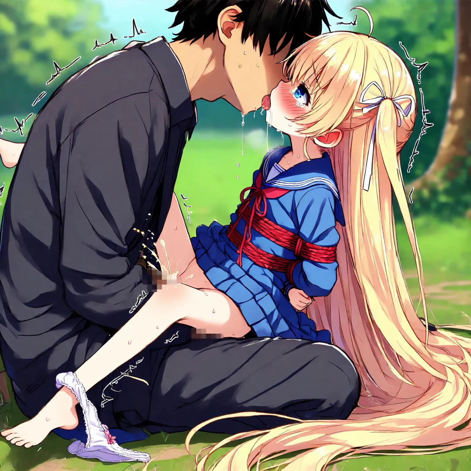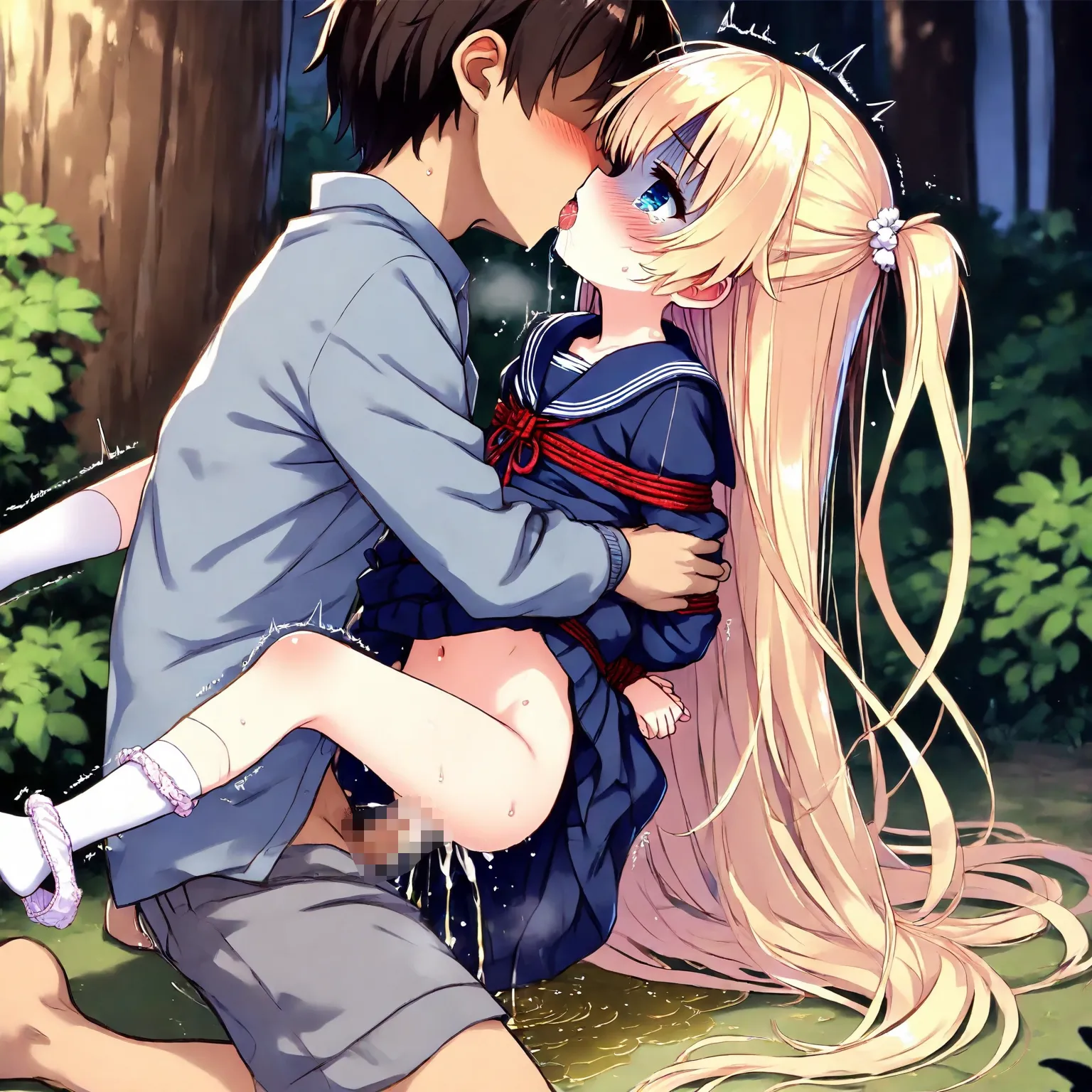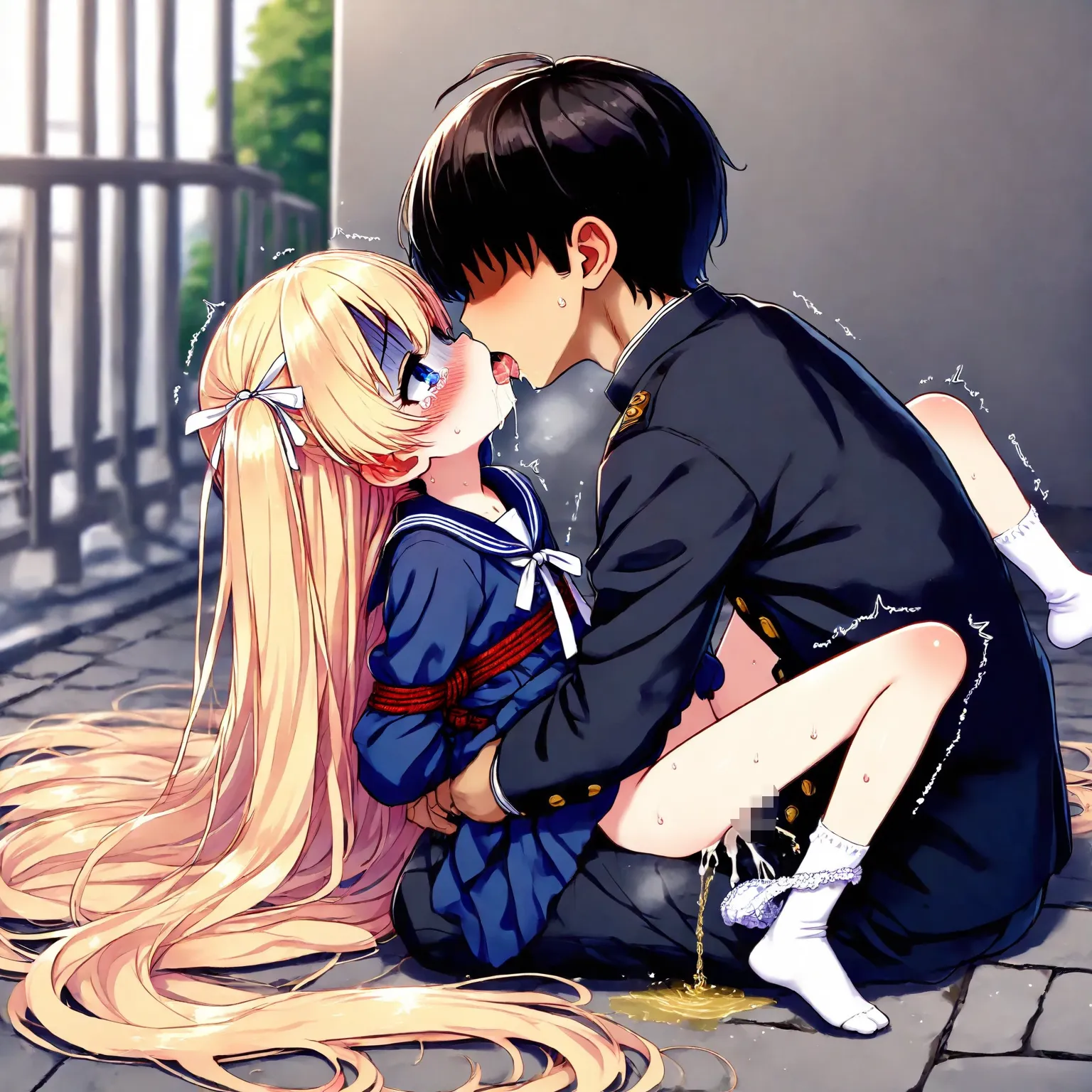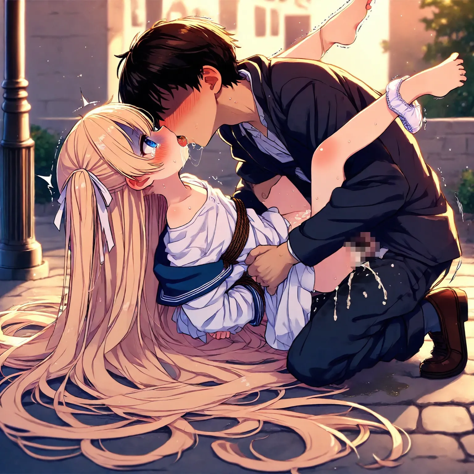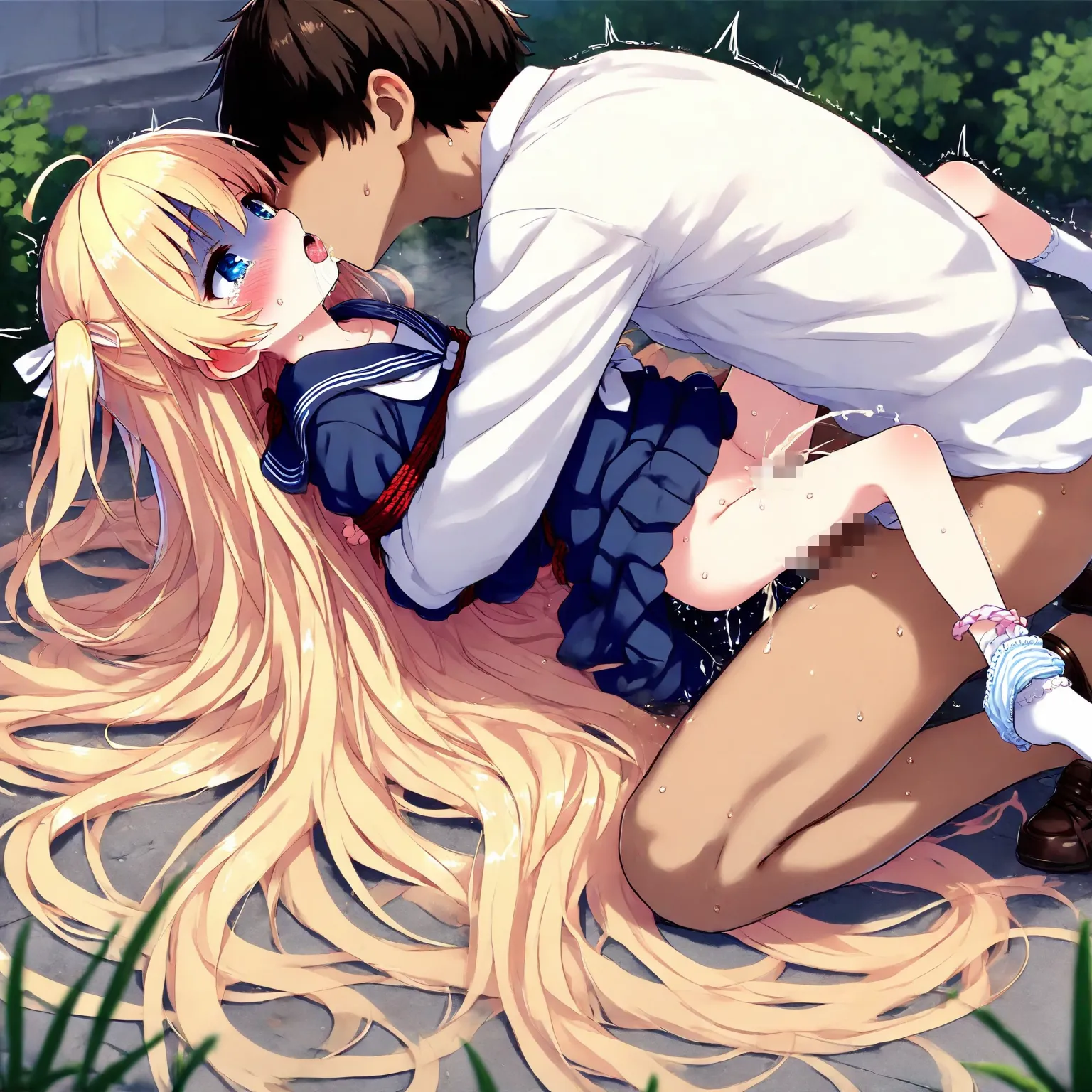 Blond girl in sailor uniform is tied up, raped, kissed and fucked, and wets herself