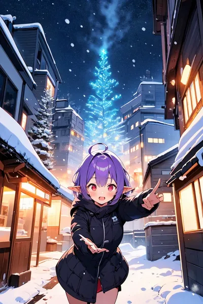 雪の花火とエルフの少女