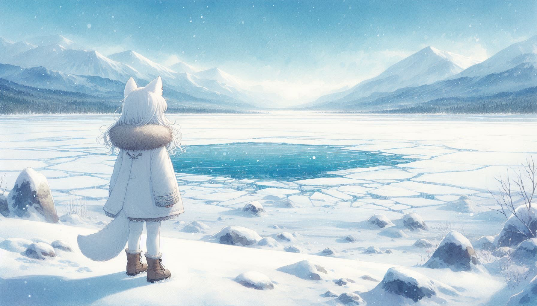 🦝(あっちで🦊が釣りしてるぞ!) 🐈(ワカサギでも釣ってるんじゃねw ちょっと分けてもらうかw) モグモグ🍩🐈
