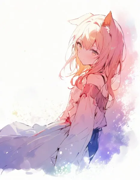 parameters: 1girl, [ sora \(arknights\)::3], [blue archive:arknights:1], cowboy shot ,preteen female,solo,fox ears,medium orange hair,pleated skirt, shirt,summer dress,[(action arms,wind hair:0.9)::1],[Well-proportioned figure:5], [head tilt::1],masterpiece, best quality,BREAK,photographic background, outdoors,dusk,gradient sky,BREAK,[(distinct outline,isolated subject:1.1):0.8],[(traditional media:0.6)::1],