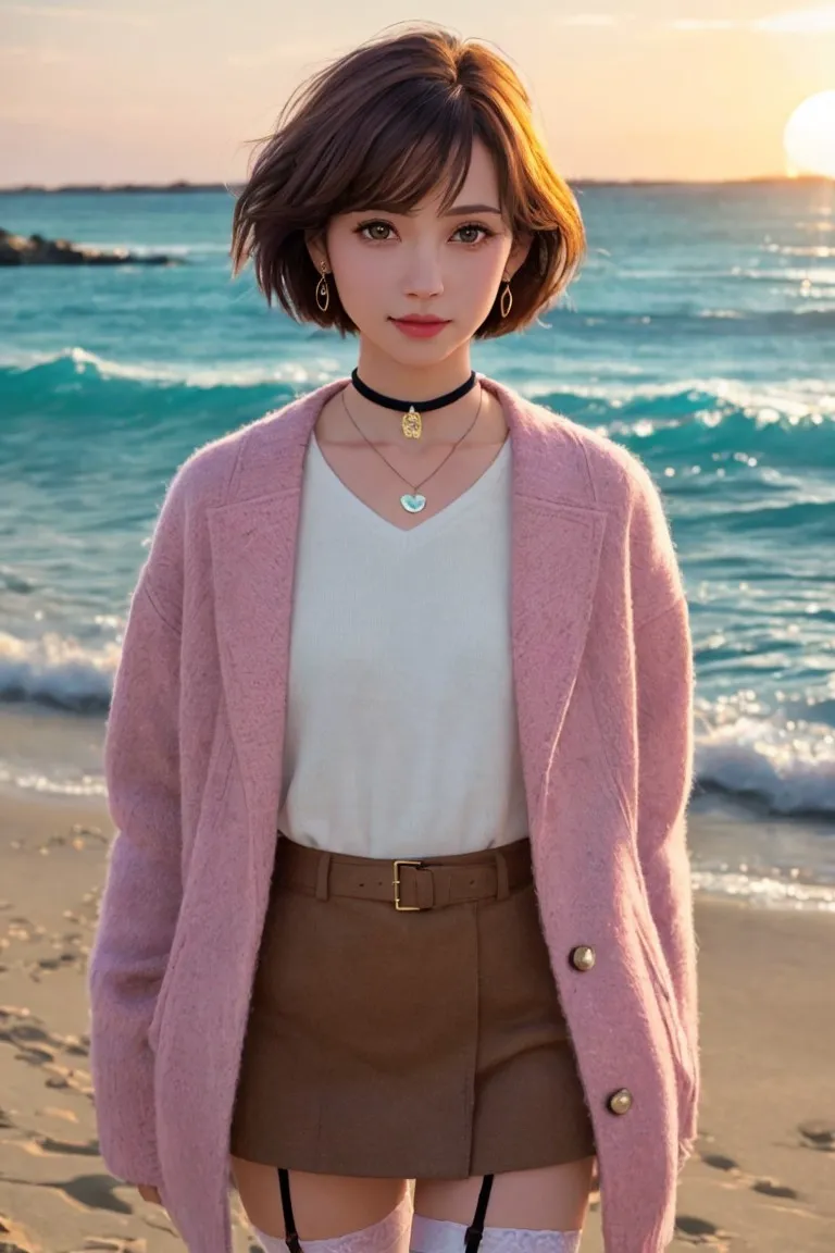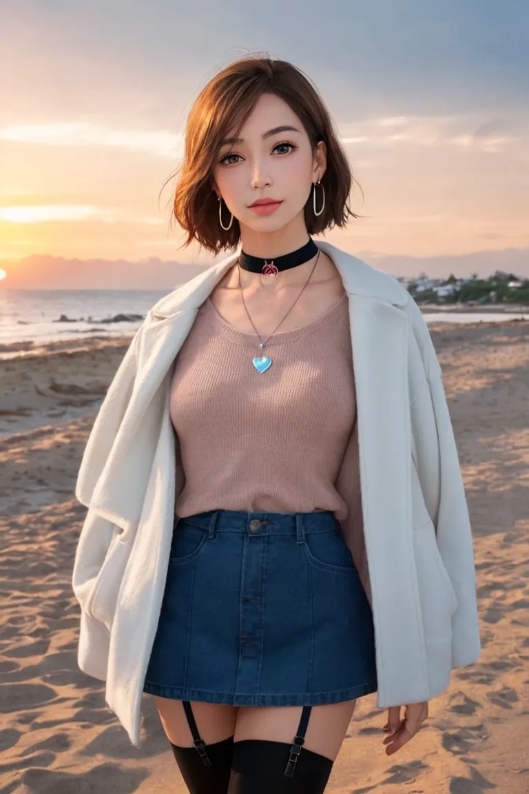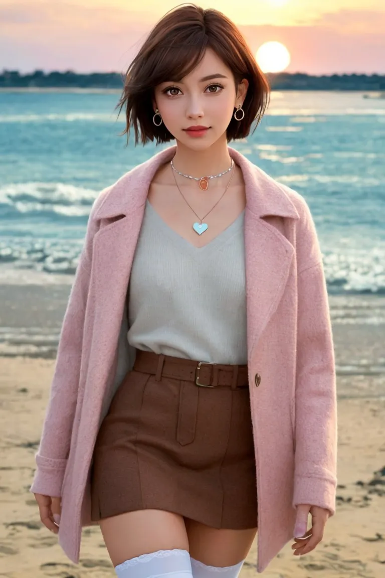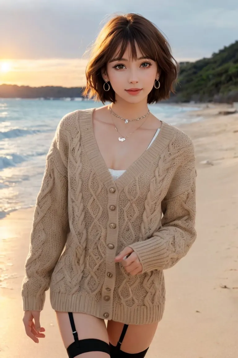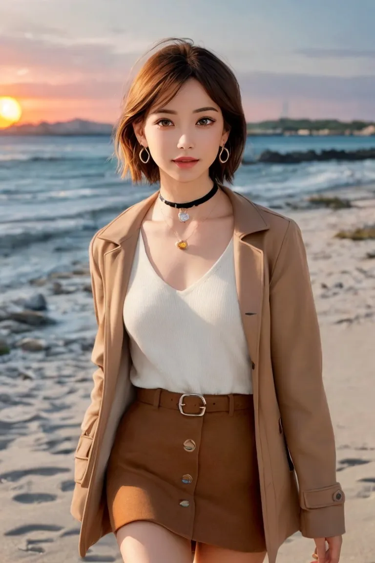 砂浜を散歩するお姉さん