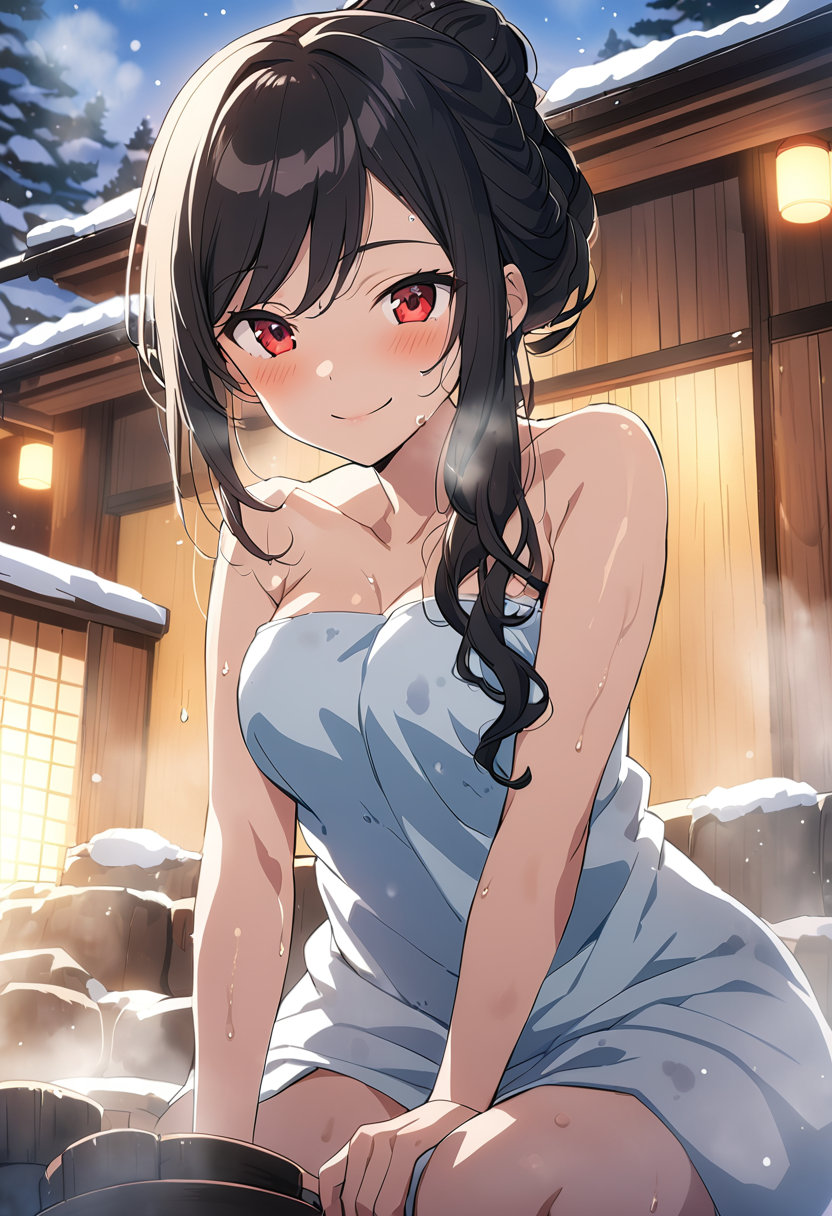 湯船に浸かるときはバスタオルは脱ぐのじゃぞ。