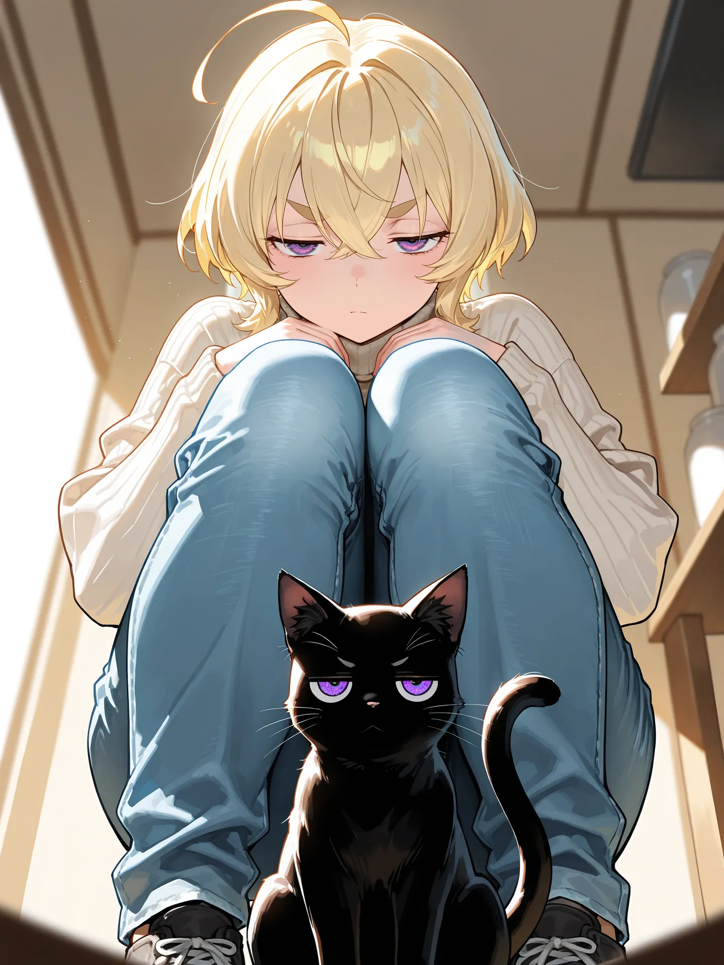 ジト目娘ちゃんとジト目ニャンコが可愛い! (๑♡∀♡๑)