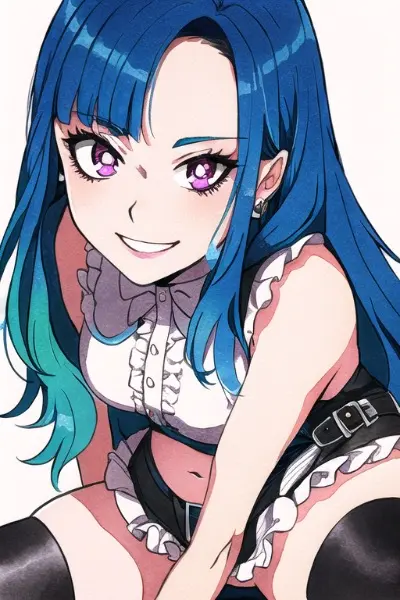 prompt: masterpiece, best quality, masterpiece, best quality, pov, perspective, {{{realistic, beautiful}}}, vector graphic, vector colored, {beautiful clearly color, detailed highlight}, detailed thin outline, fusion of flat lay photography & {{from side}},look back, 1 gyaru girl, sitting, squatting , cowboy shot, tired, relax, photo shop, watercolor, inking, realistic skin texture, lens50mm f1.2, solo focus, [chibi cute face], cool, mischievous grin cute cheek, irresistible charm, eyes sparkle with a playful glint, {mini skirt}, slim tight, large breasts, navel, [[muscular]], {groin}, vibrant energy, glossy, luscious lips curl up, evil smile, hinting at the mischief, {{{colorful blonde hair cascades}}}, {{{{school uniform}}}}, fashionable, unique fashion sense, long flowing locks, sharp green eyes, {squinting eyes}, refined facial features, beauty, flawless complexion, subtle makeup, {slender figure}, charismatic presence, captivating figure, {anime heroine with a mischievous twist},