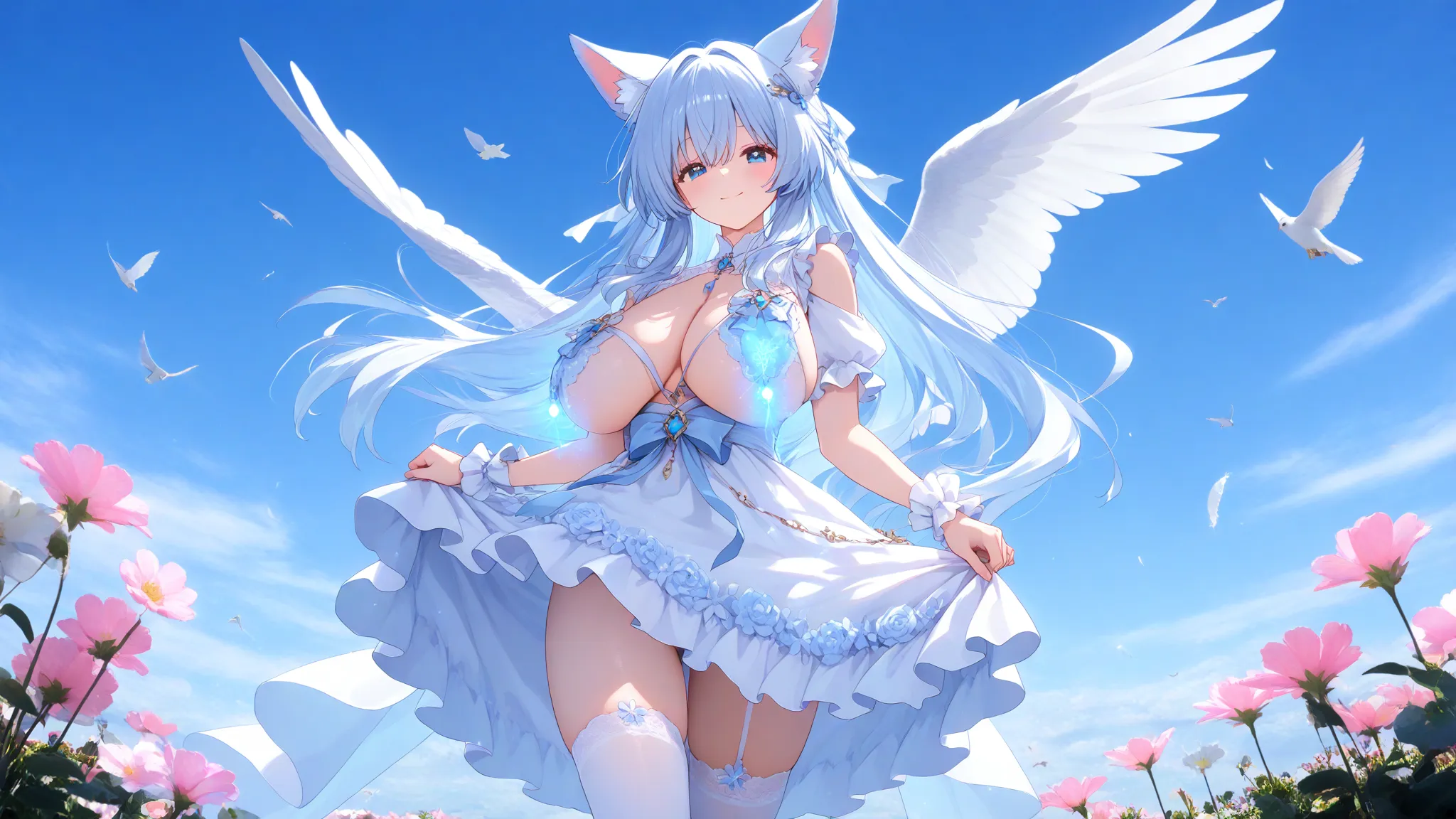 (masterpiece, best quality:1.3), illustration, (extream detailed), one girl, angel Descending