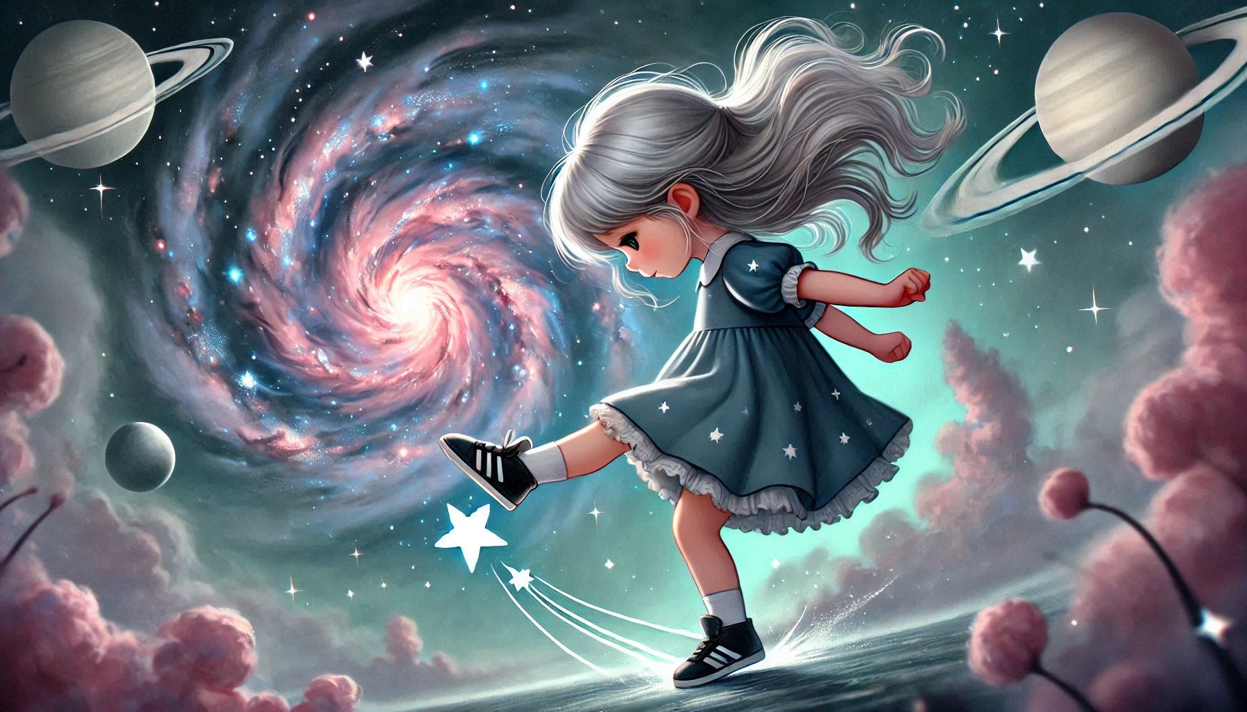蹴った星が、二、三回はねて、コロコロ転がるイメージだったのですが…