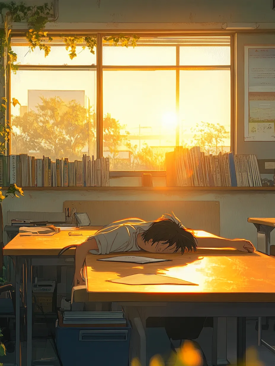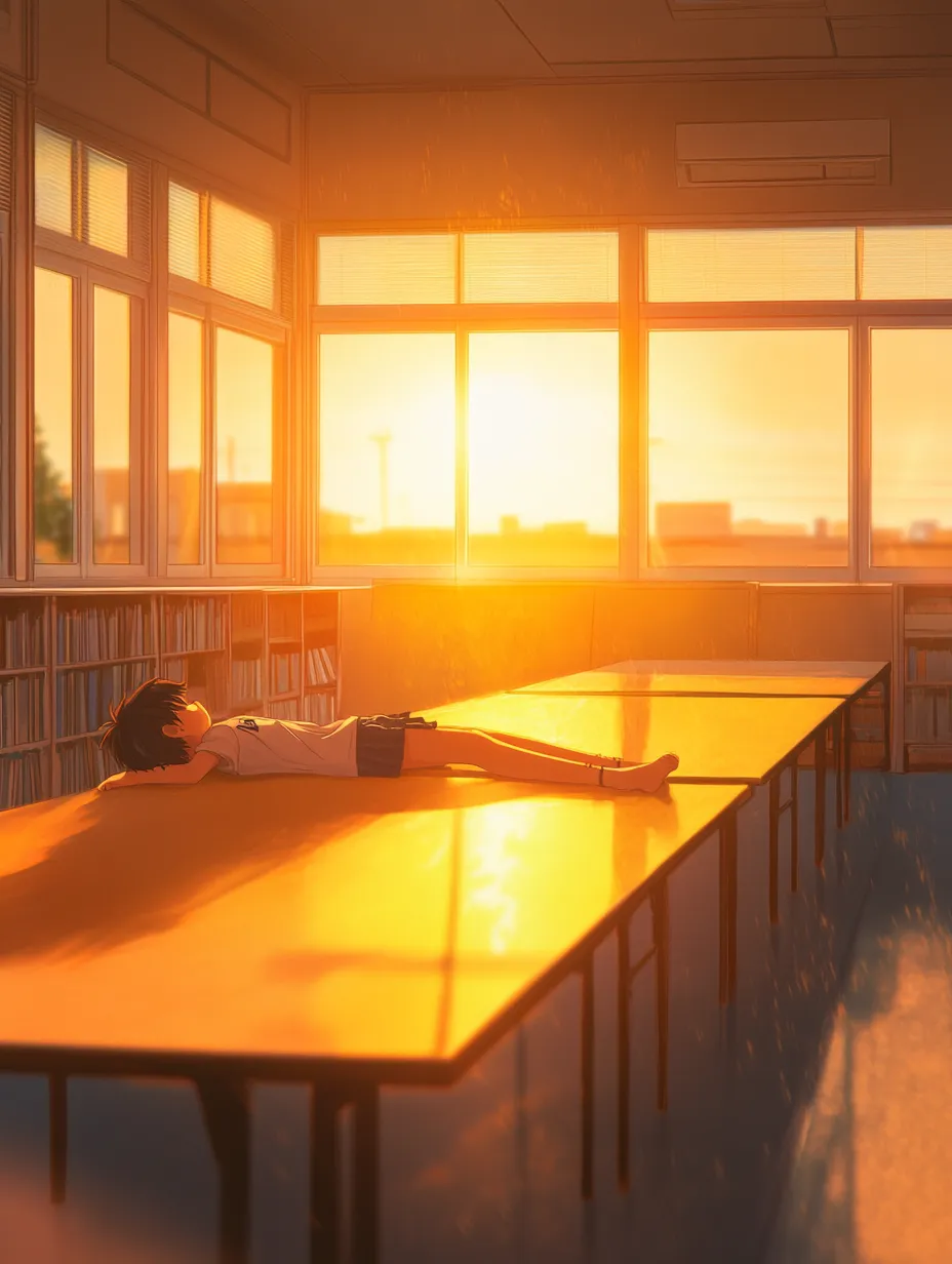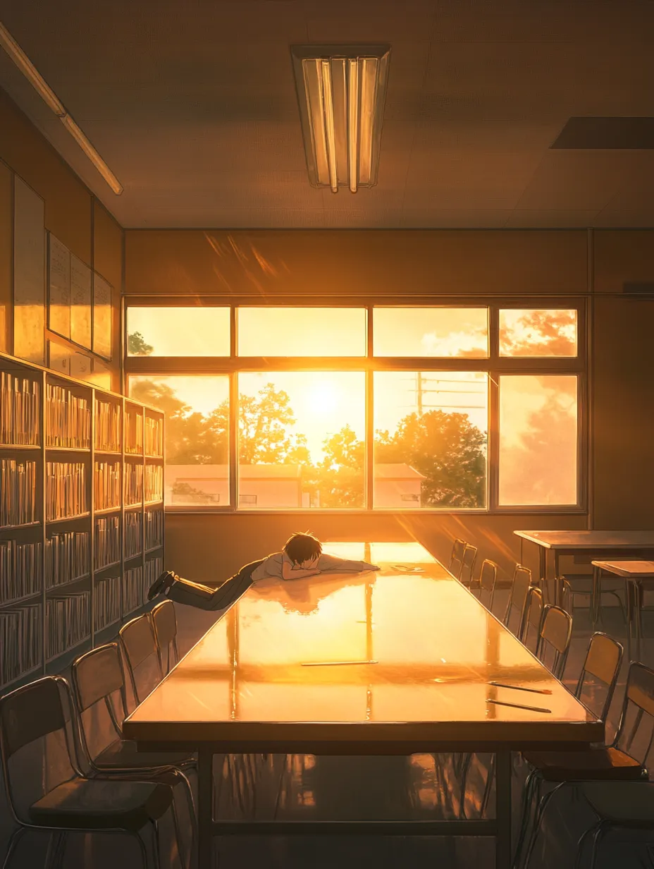 夕日の図書室