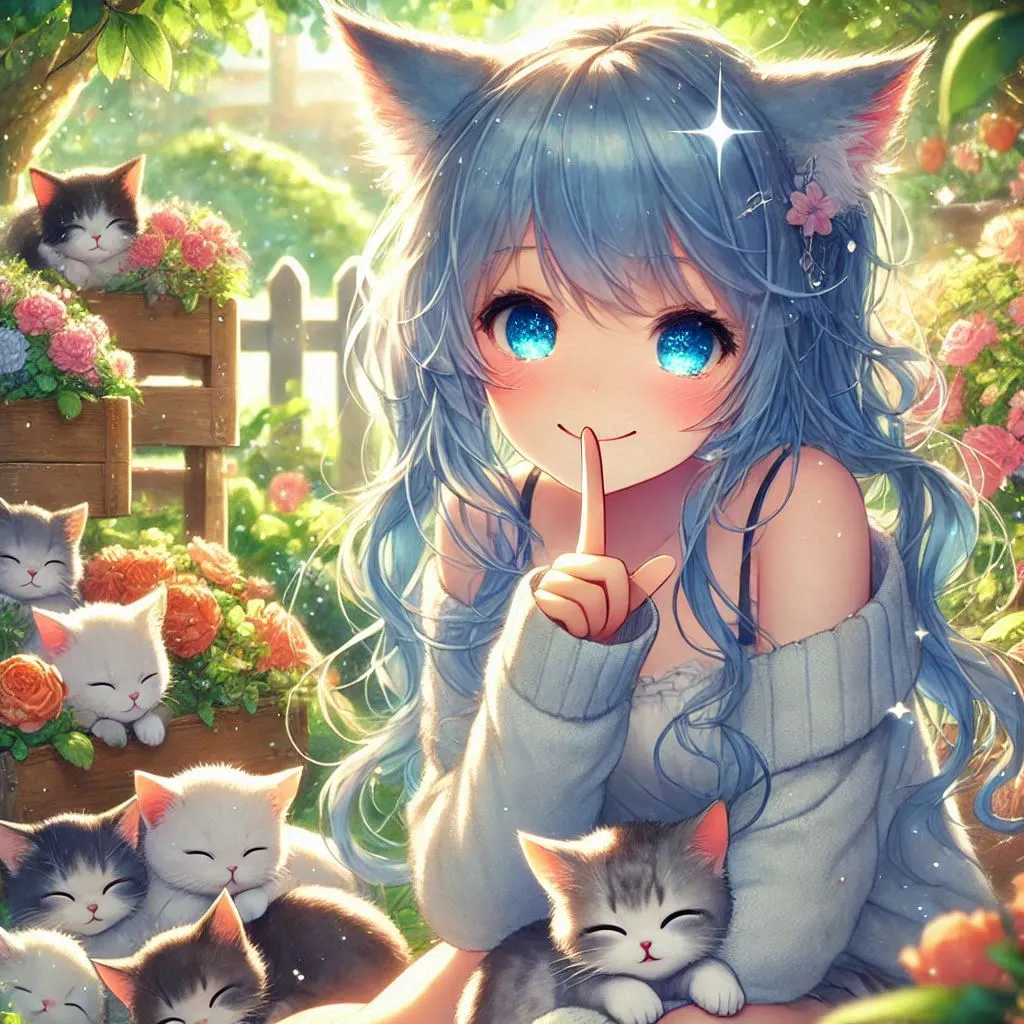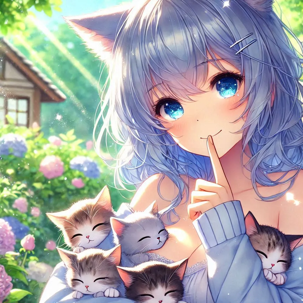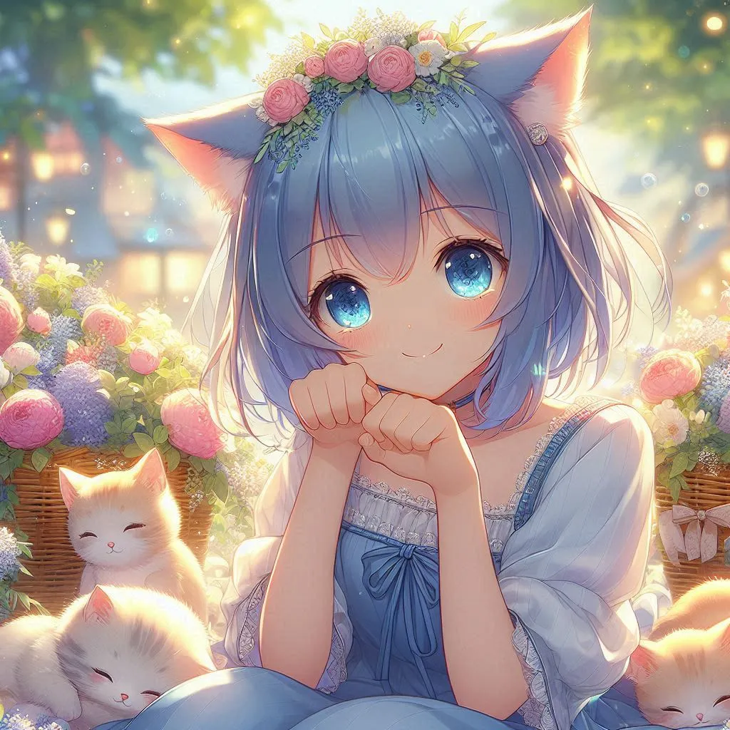Sleeping kitten and blue-haired cat ears