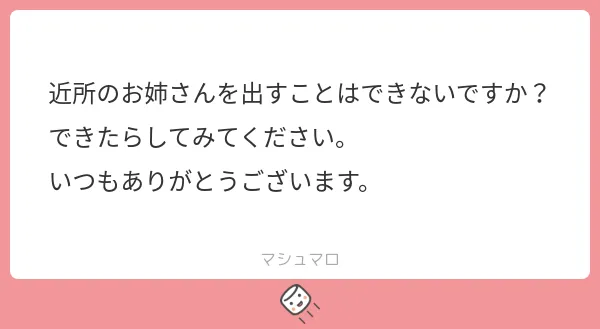 マシュマロお返事_お姉ちゃんも俺くんと中々会えなくてさみしいよ…