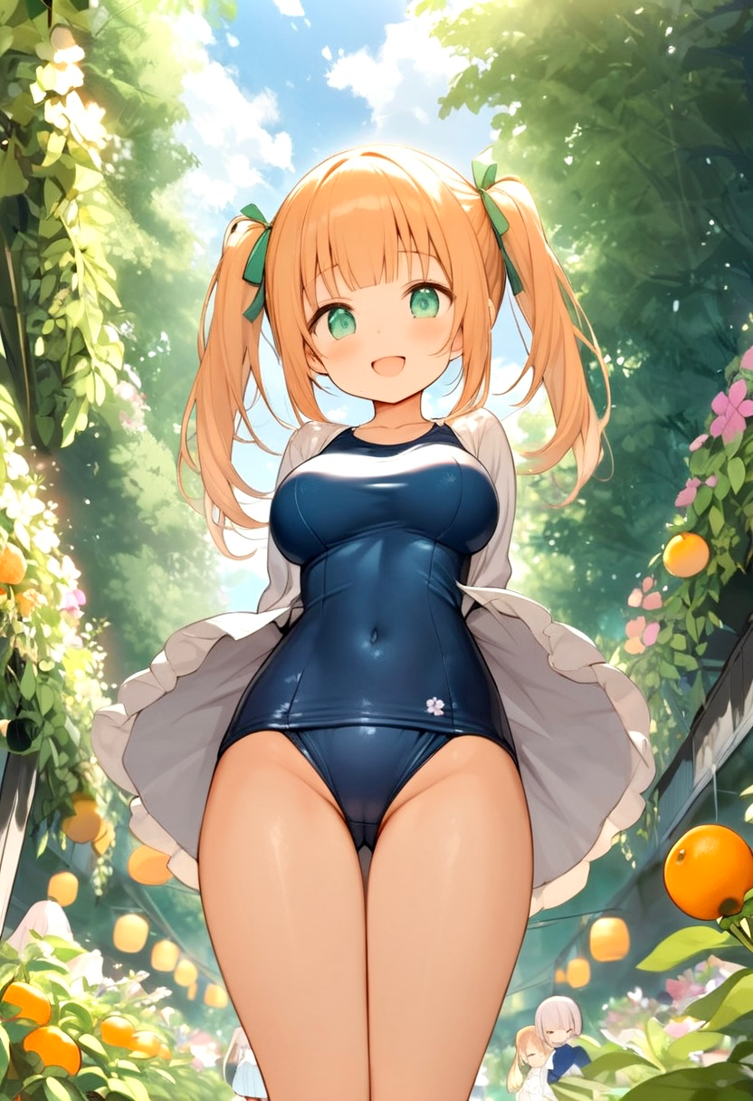 みかん色を取り入れた柑橘娘風スク水コーデ