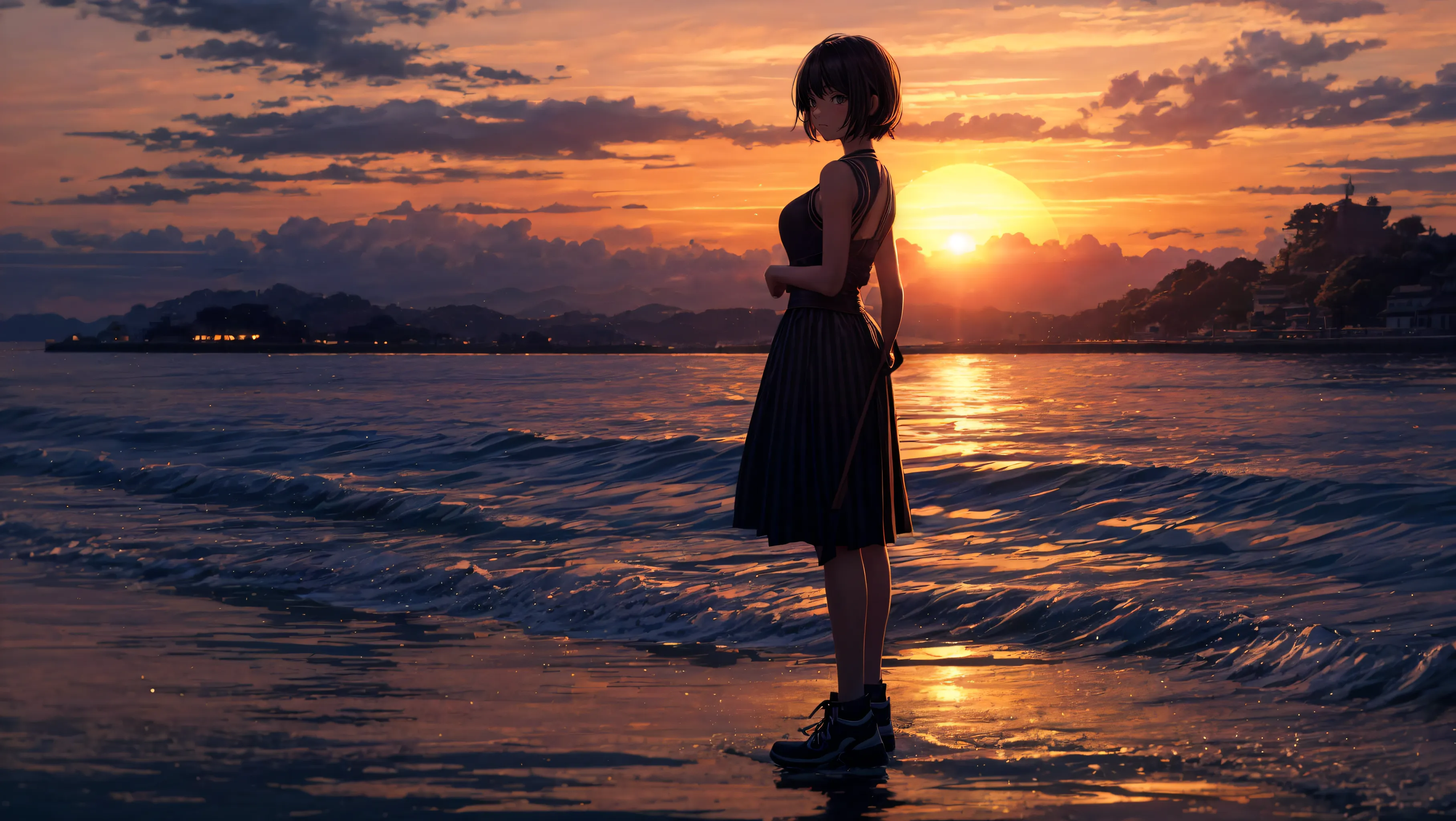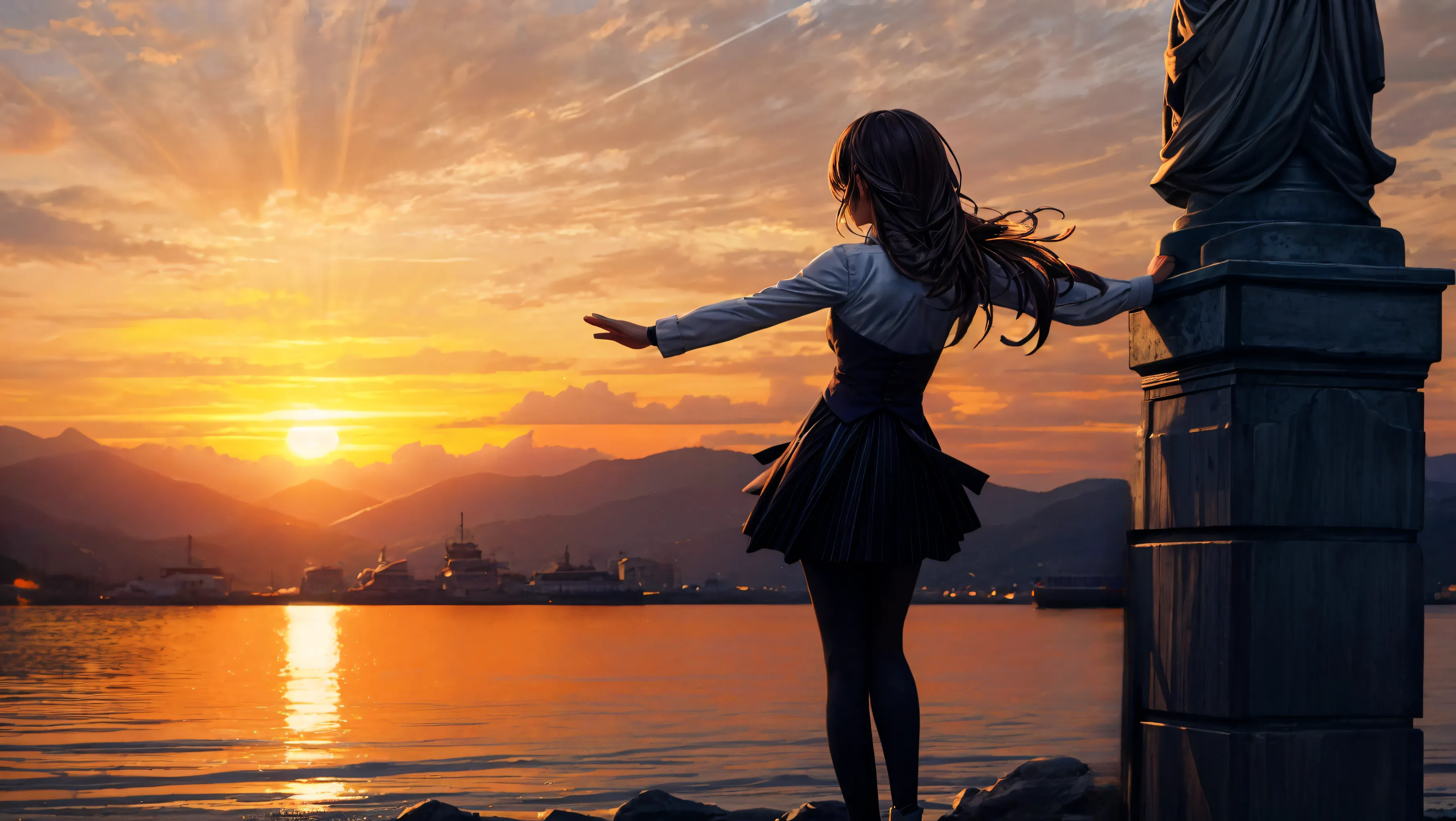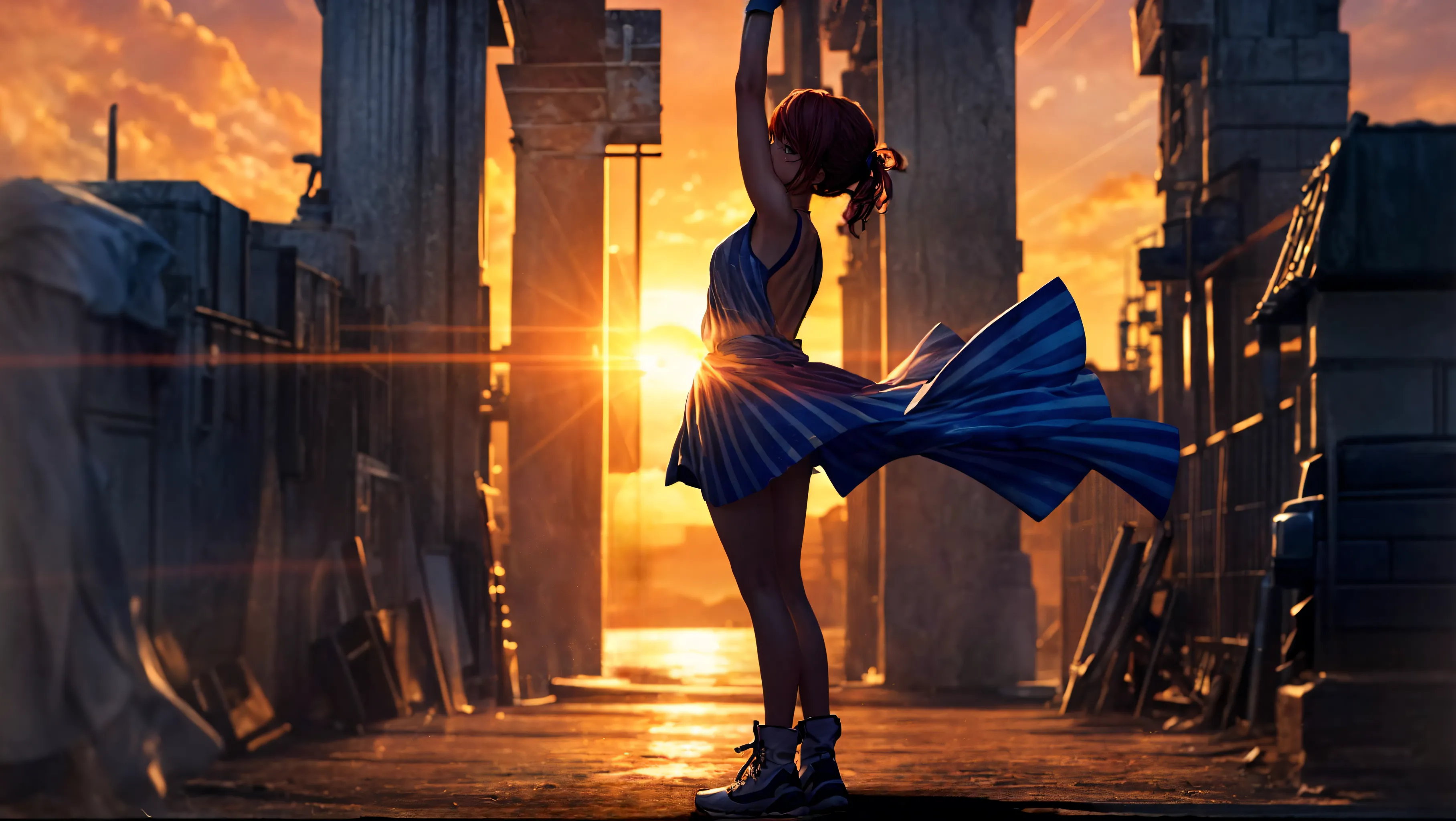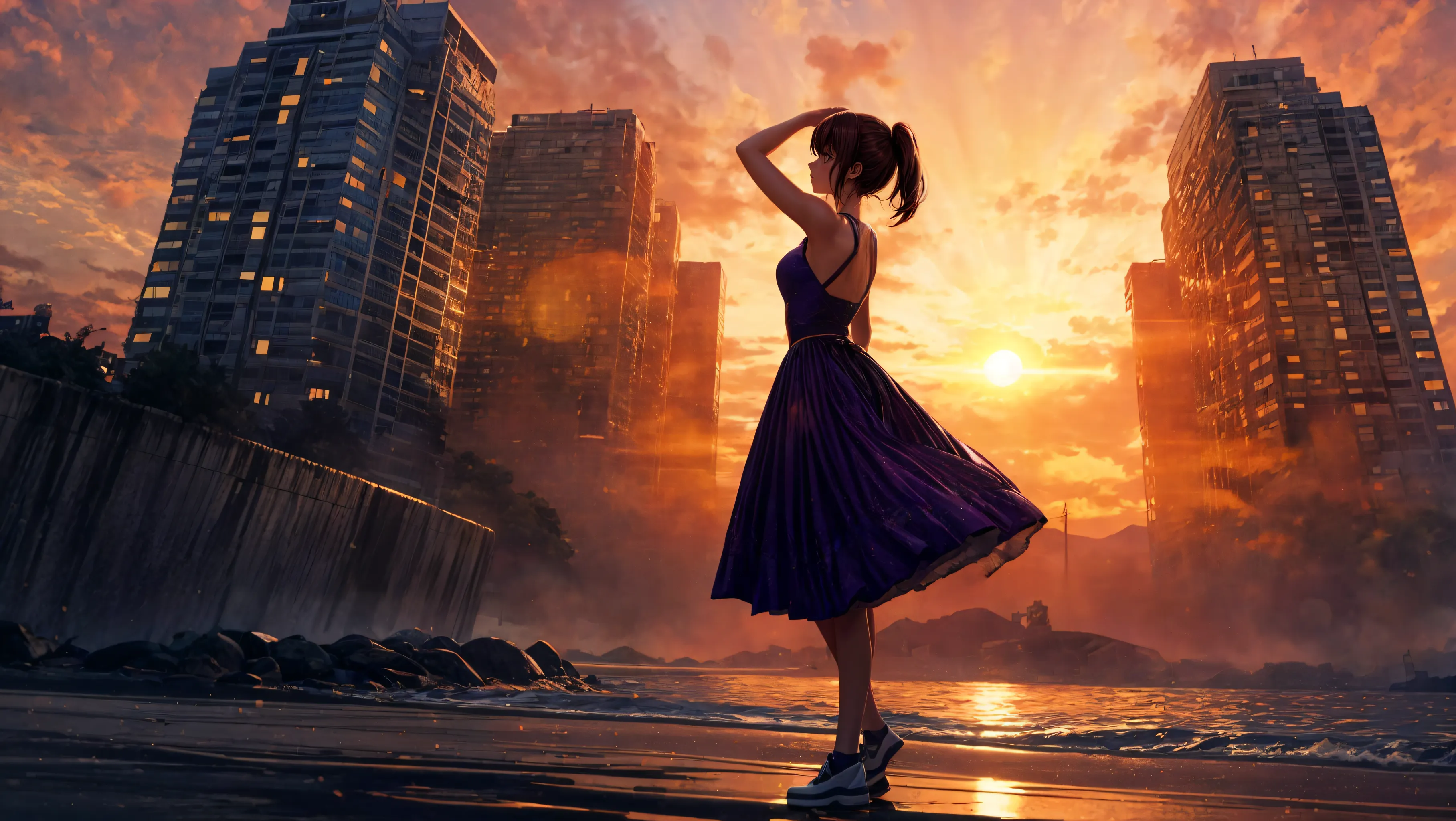 朝日の中で