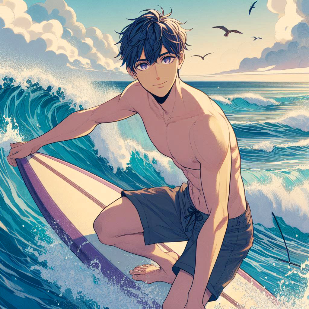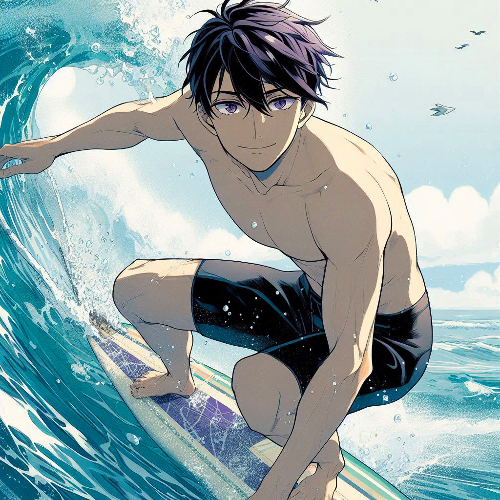 波乗りしてる、黒髪短髪男性…!!その4(7枚)