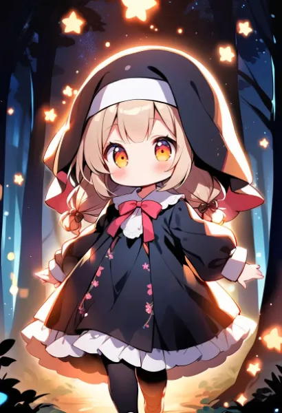 森で焚火なおおかみ娘