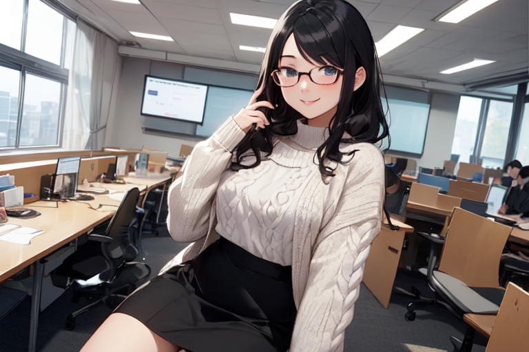 1:オフィスについて、いつもと違うカッコに何か言われないか不安な美波ちゃん。