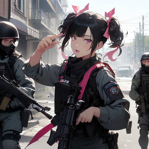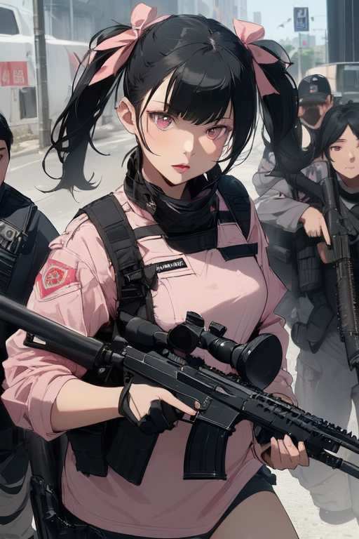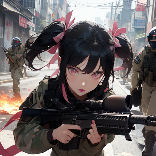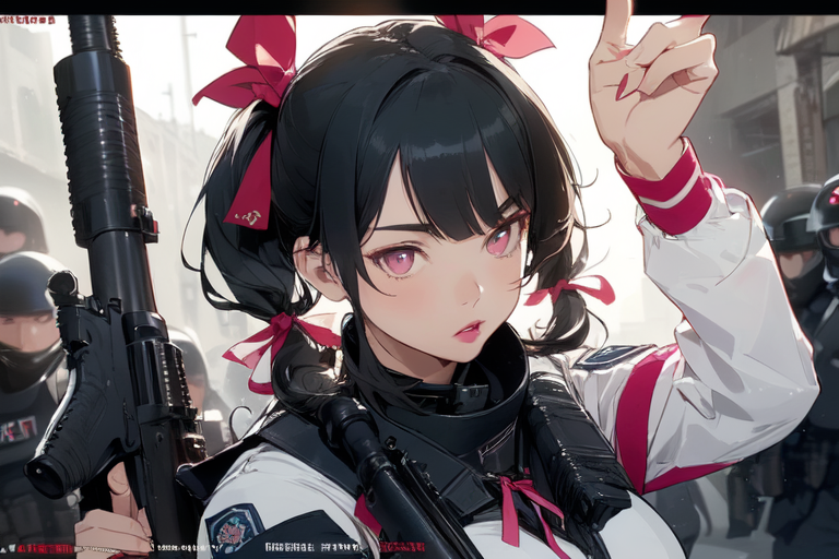 Risa: \"Don\'t move! I\'ll kill you! Quickly throw away your gun and kneel down, oi!\"