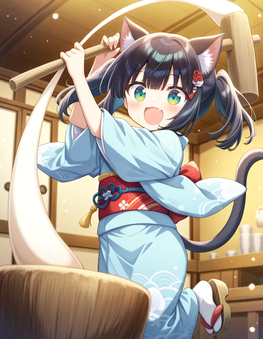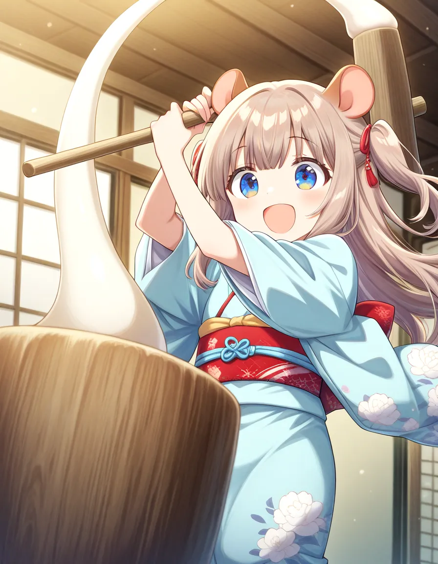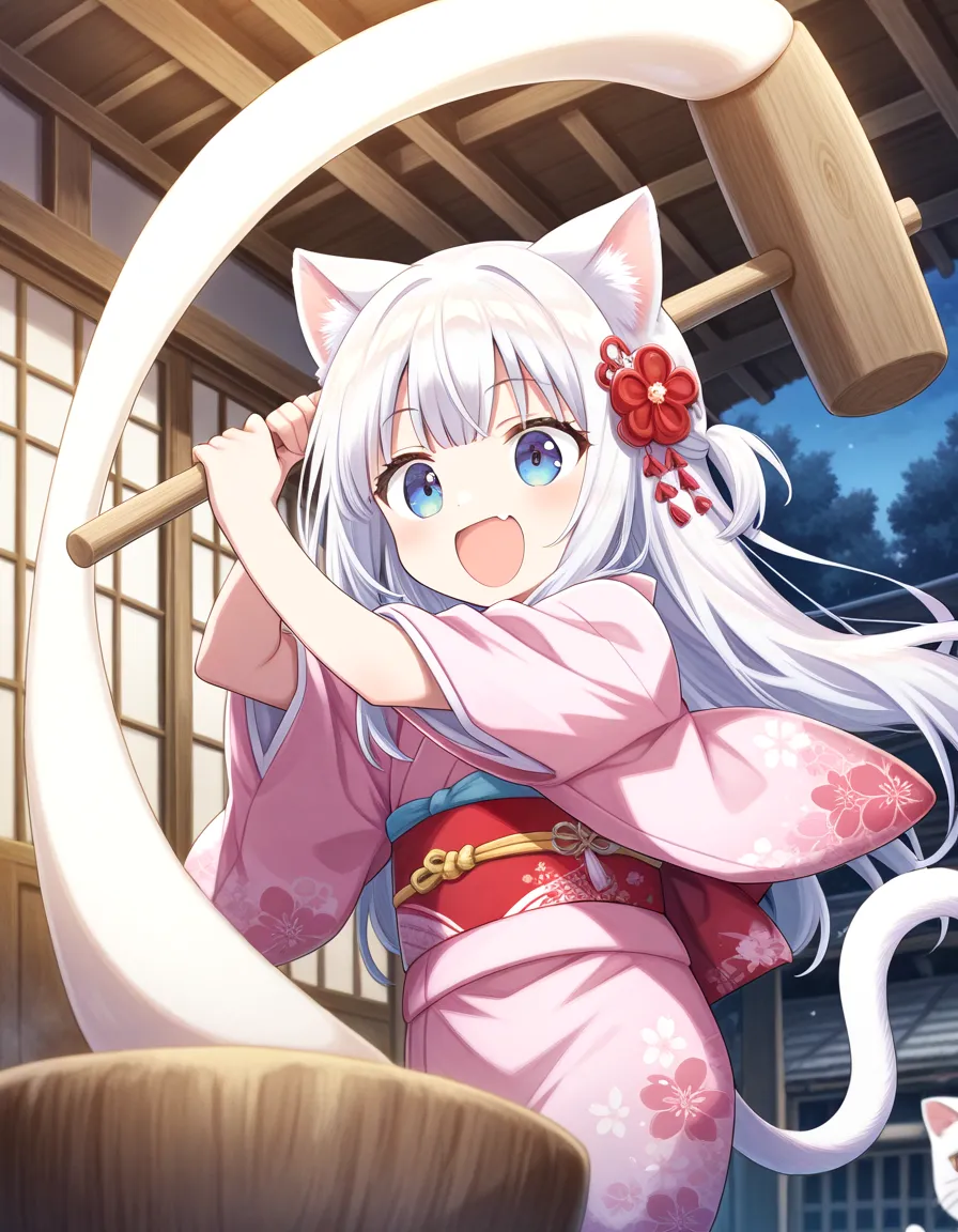 餅つきたのしーニャ♪