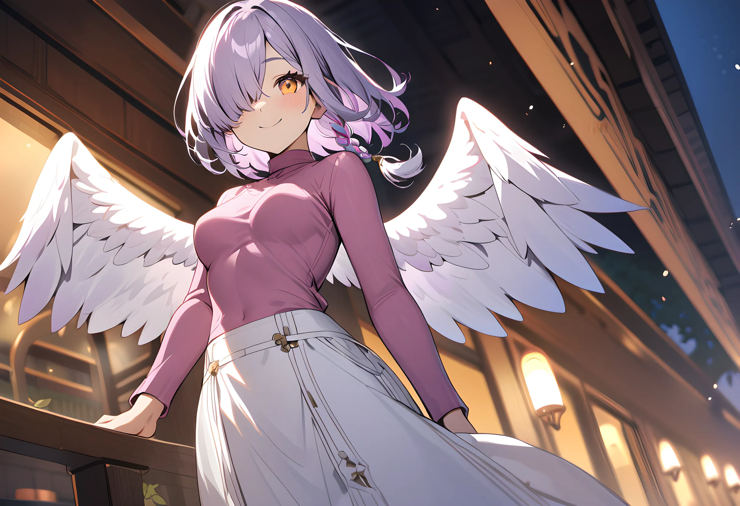 (masterpiece, best quality:1.3), illustration, (extream detailed), one girl, angel Descending