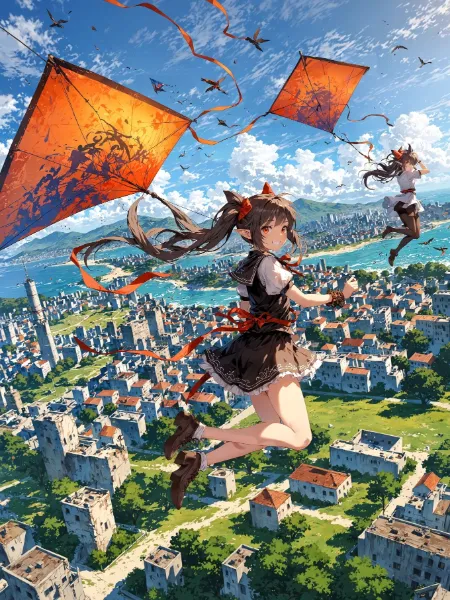 Flying というプロンプトが人間にも影響しちゃうんですかね? 私もたまに人が飛ぶのができました